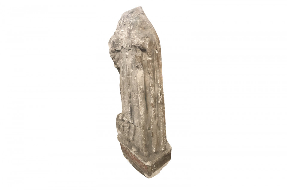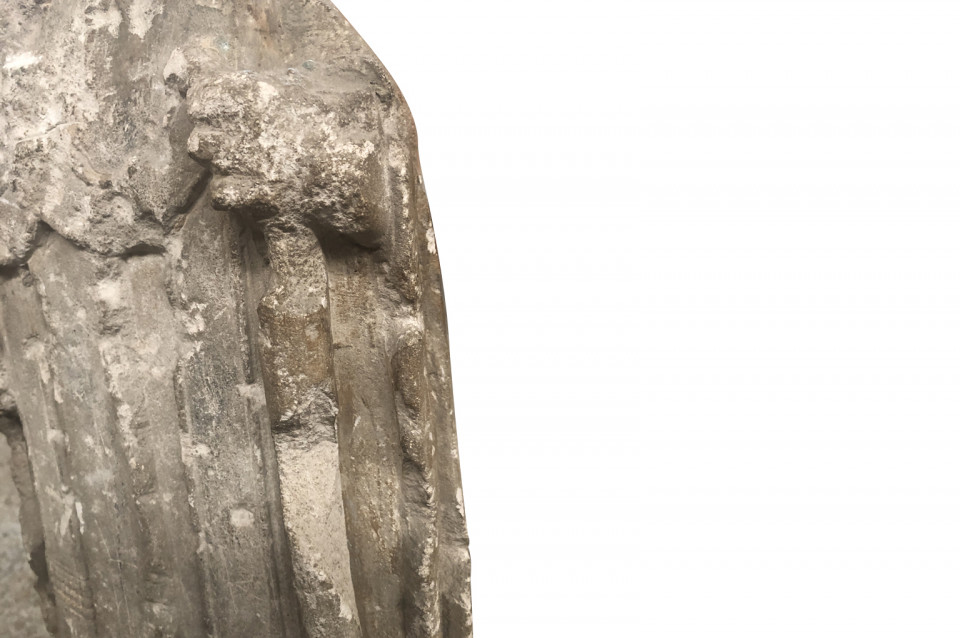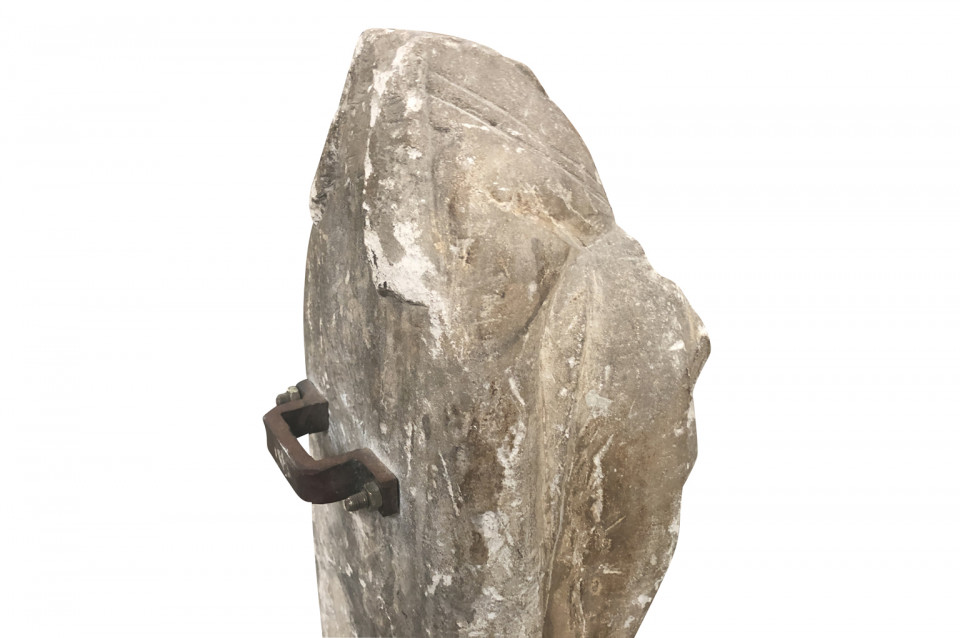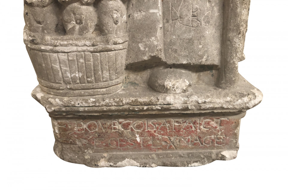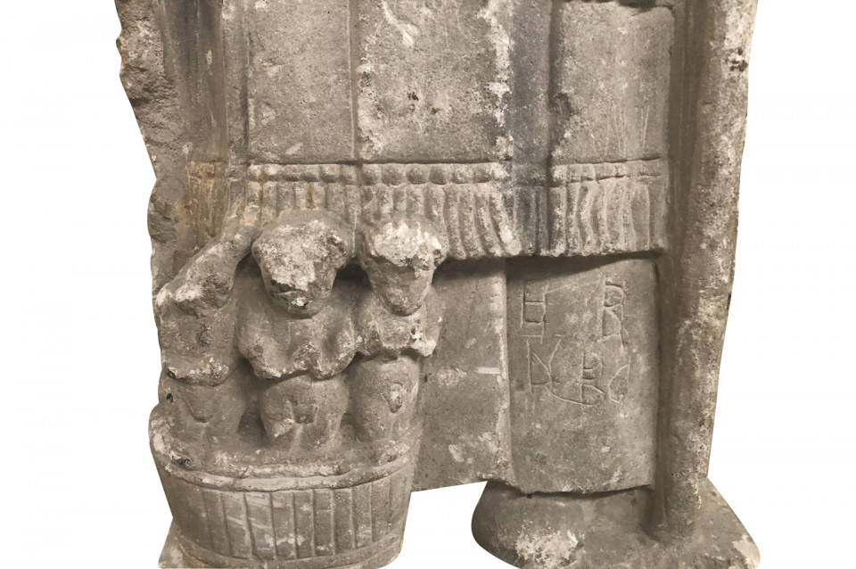 A wonderful Gothic period hand carved stone statue of Saint Nicholas from the Avignon area of France. The now headless Saint Nicholas holds his staff and there are three children in a tub at his feet.