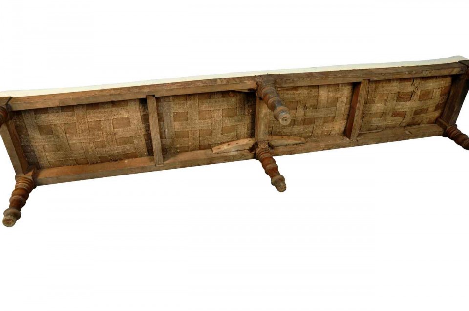 Long Louis XIIIth style XIXth century Italian bench in walnut, circa 1880.
