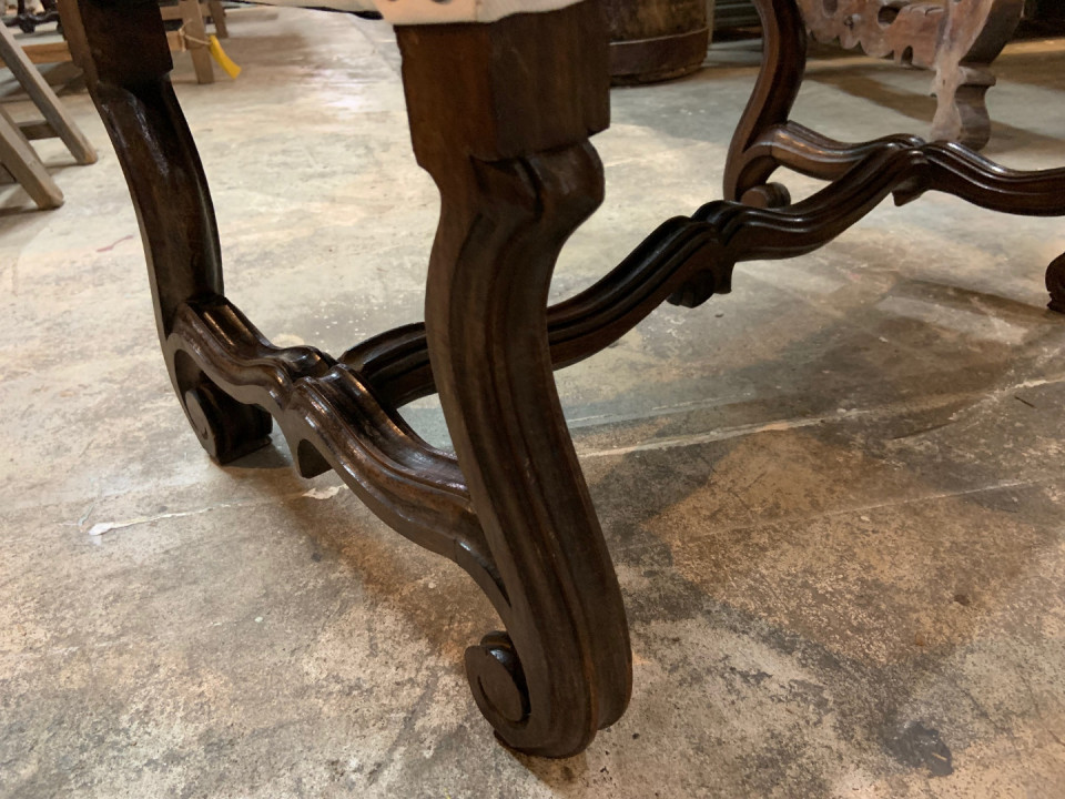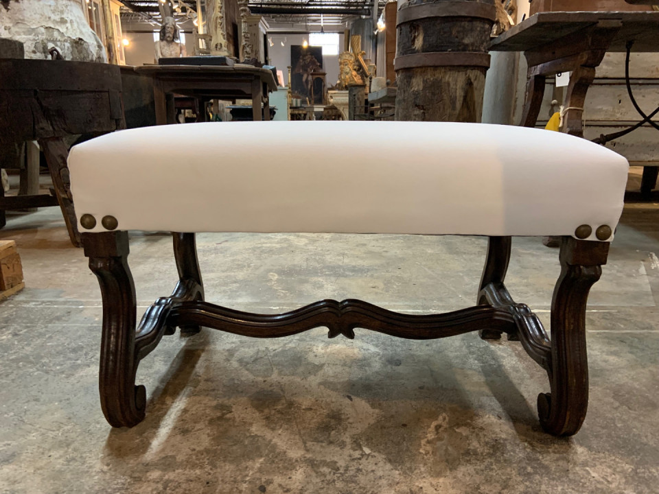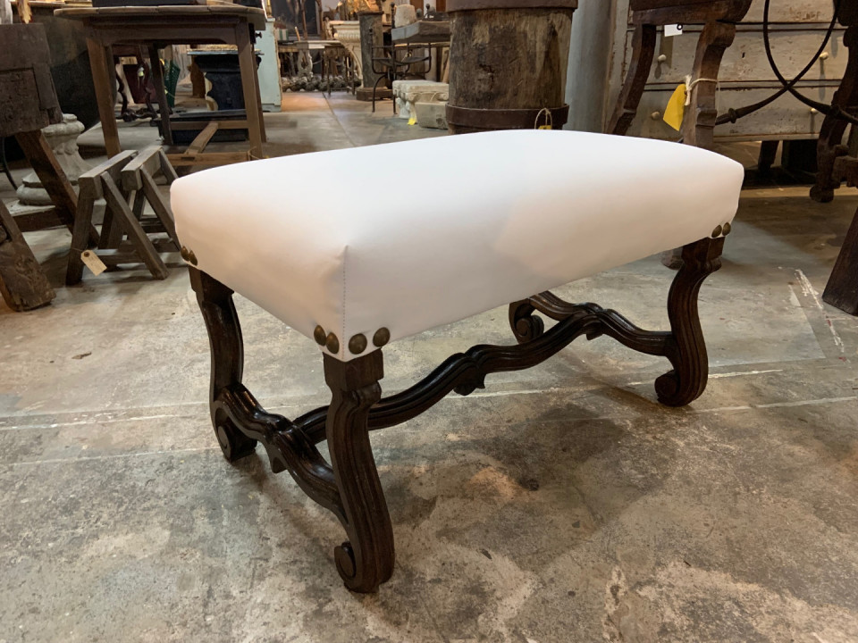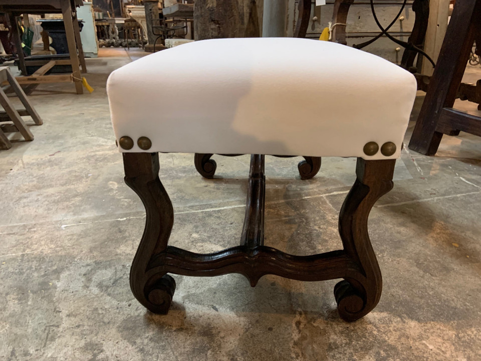 French Louis XIII style Stool in walnut - recently reupholstered. Lovely patina.