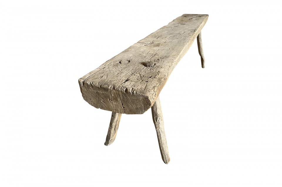 A very charming and primitive 18th century Bench from the Catalan region of Spain. Soundly constructed from naturally washed chestnut with a nice thick top. Perfect for any modern or rustic interior or garden.