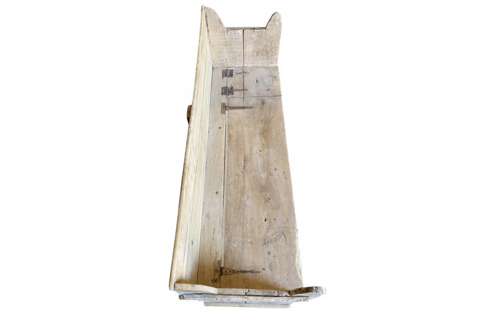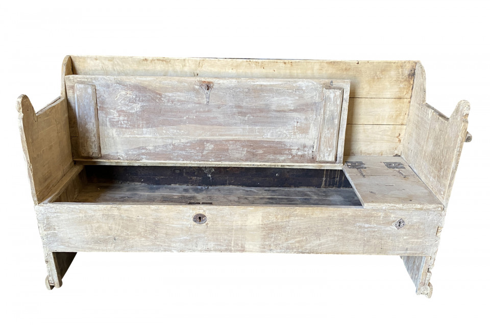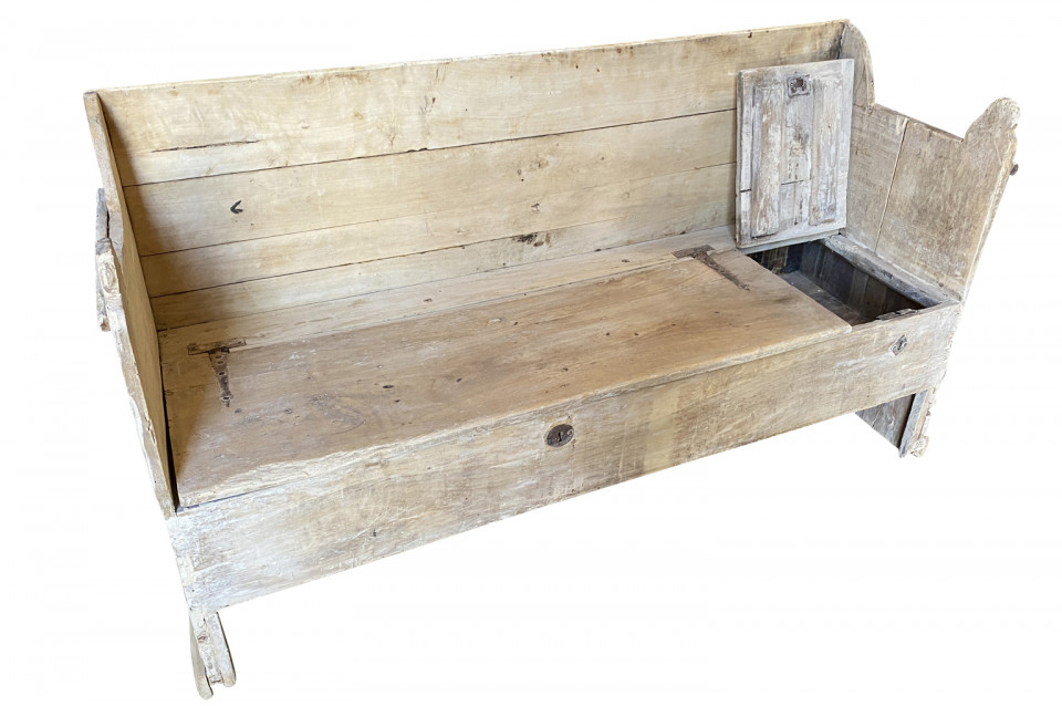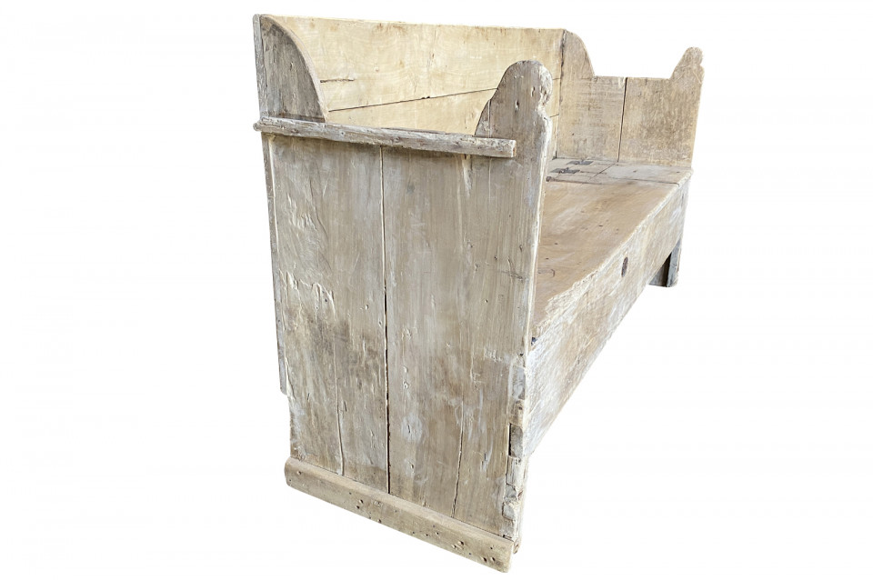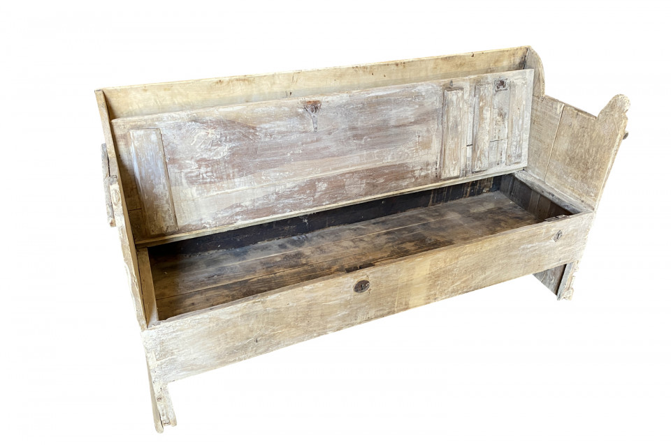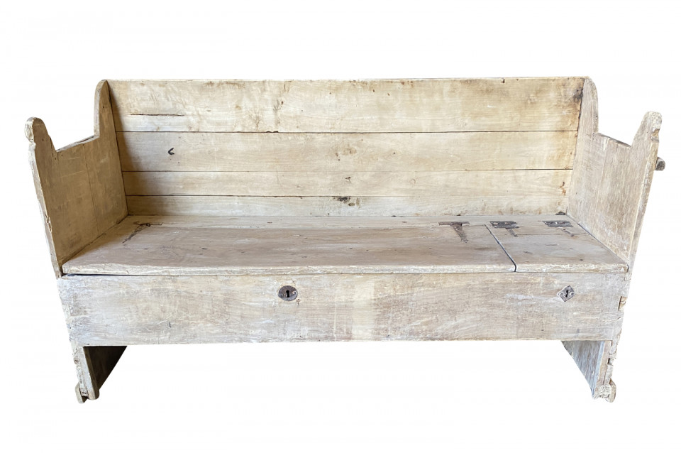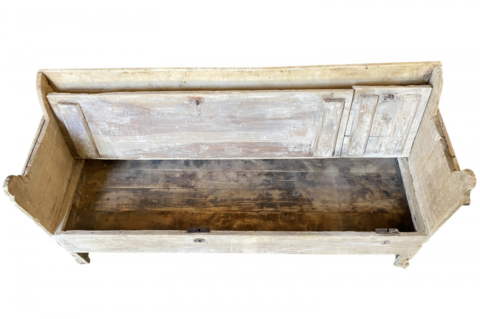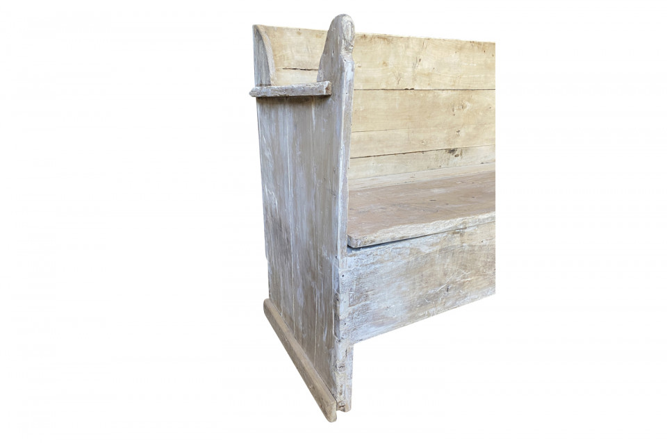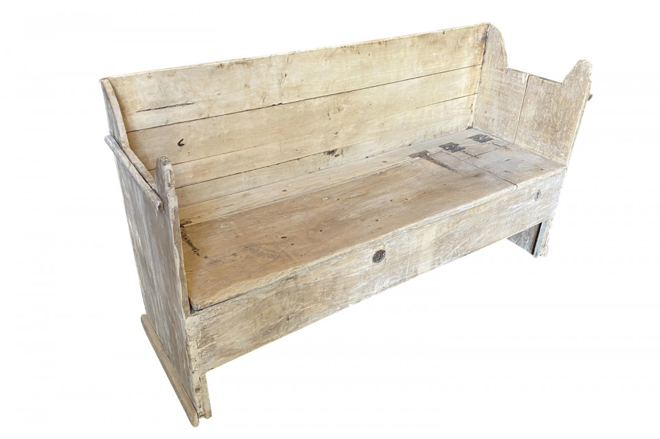 A very charming 18th century primitive Bench - Trunk from the Catalan region of Spain. Soundly constructed from naturally washed poplar with a back, sides and a seat that lifts to expose trunk storage. The seat height is 15 3/4".