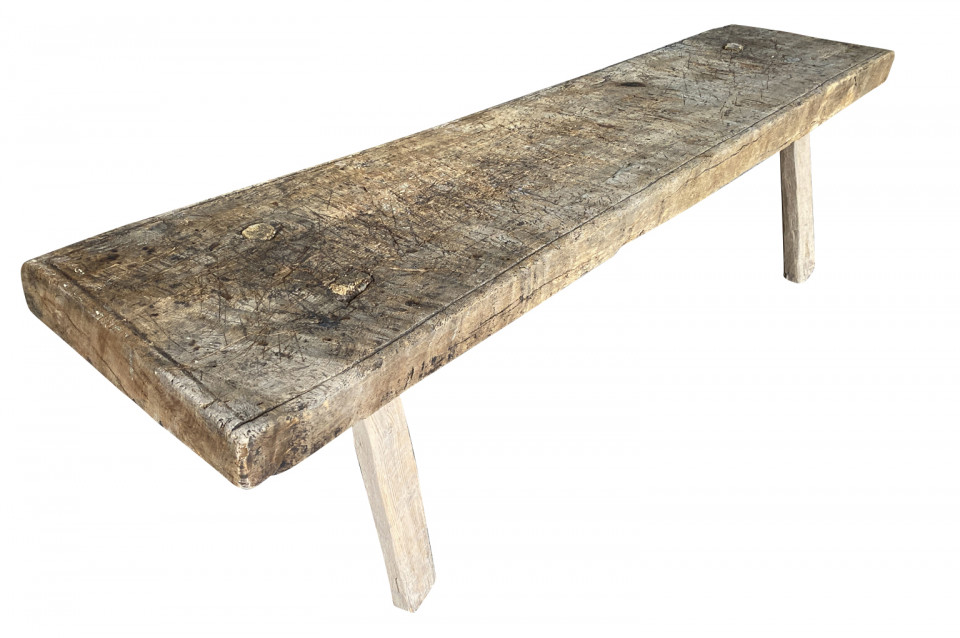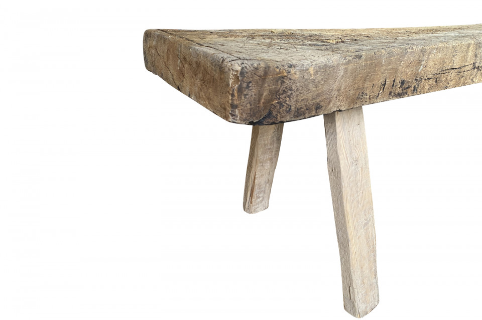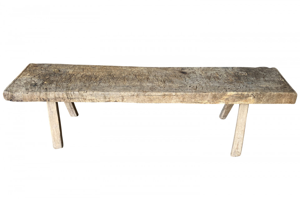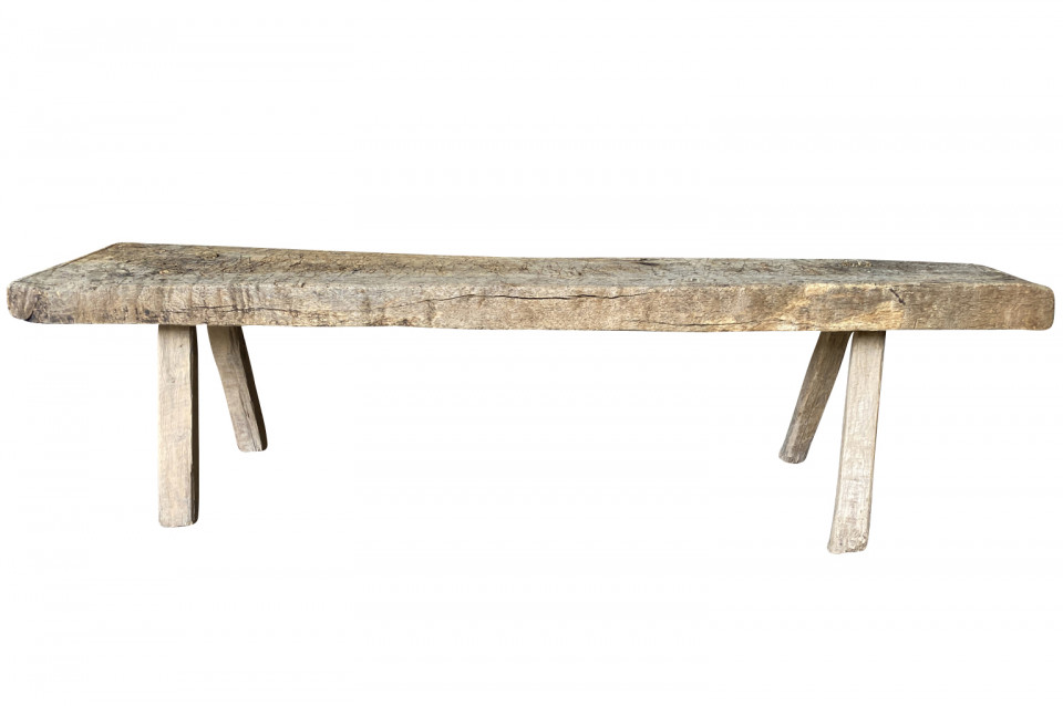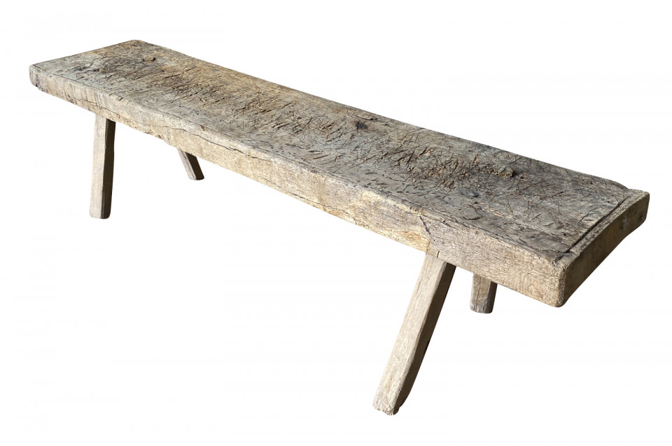 A primitive 19th century Bench - Coffee Table from the Catalan region of Spain. Soundly constructed from naturally washed oak with a solid board top and slightly splayed legs. Super patina and graining.