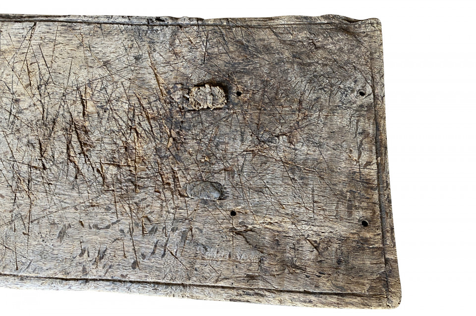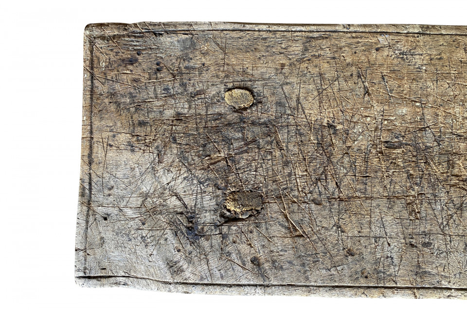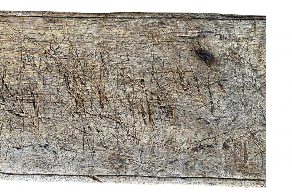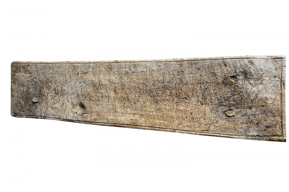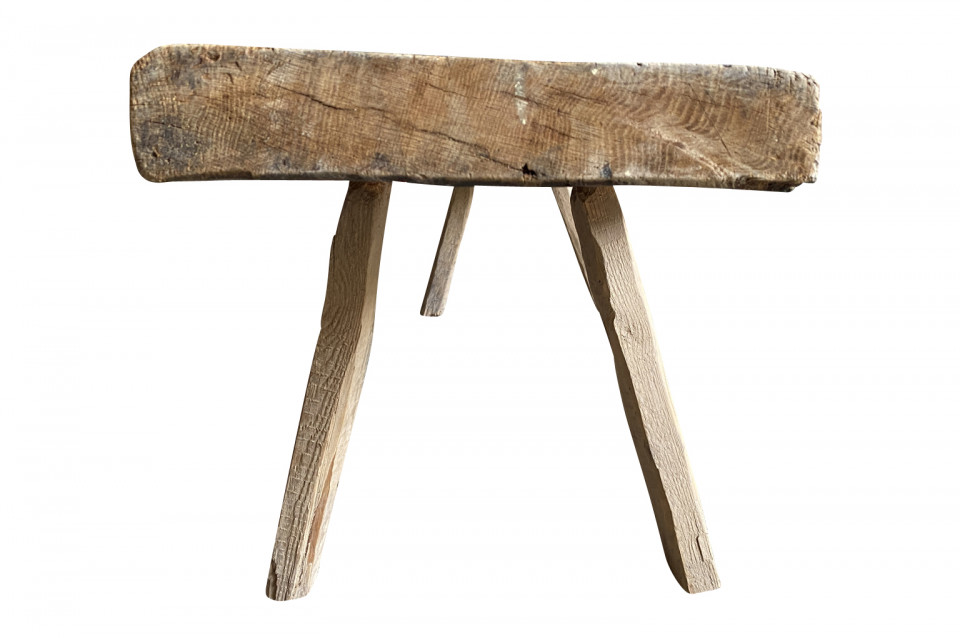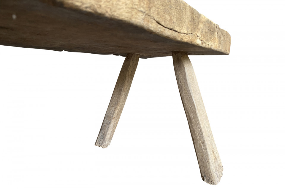 A primitive 19th century Bench - Coffee Table from the Catalan region of Spain. Soundly constructed from naturally washed oak with a solid board top and slightly splayed legs. Super patina and graining.