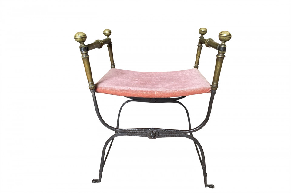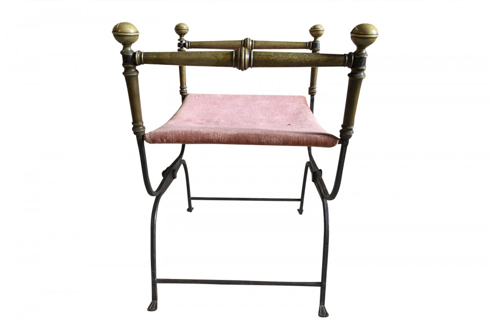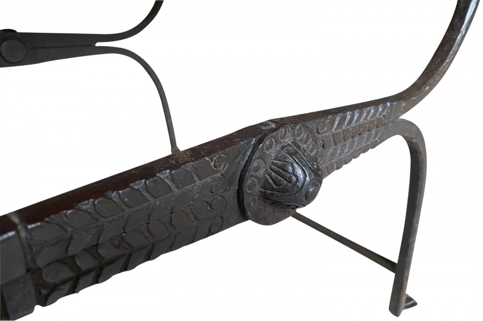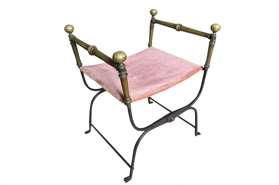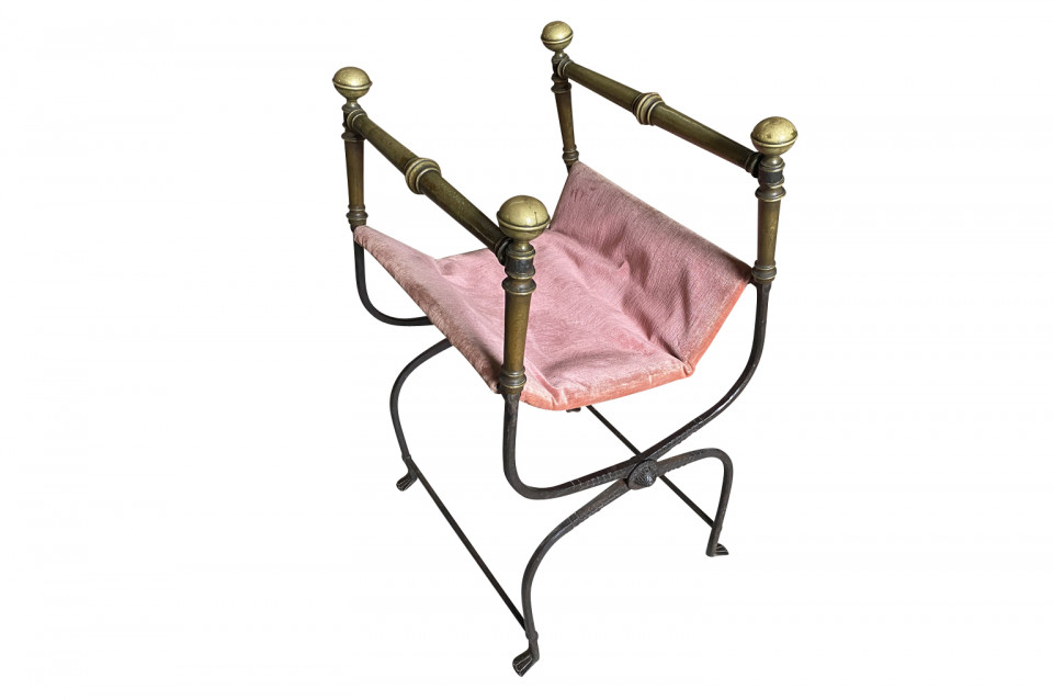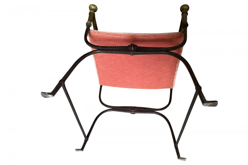 An outstanding 17th century Curule Stool from Venice, Italy. Expertly crafted from hand forged iron with exquisite incised detailing and bronze accents. True craftsmanship. The seat height is 20 3/4".