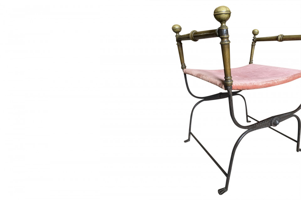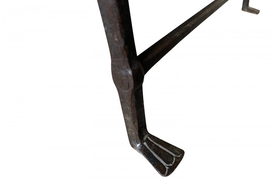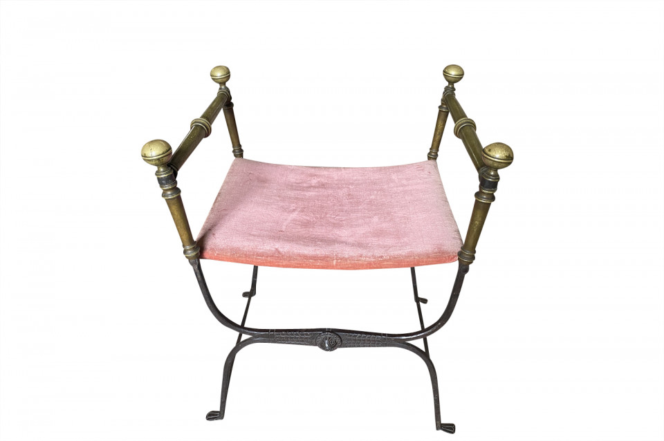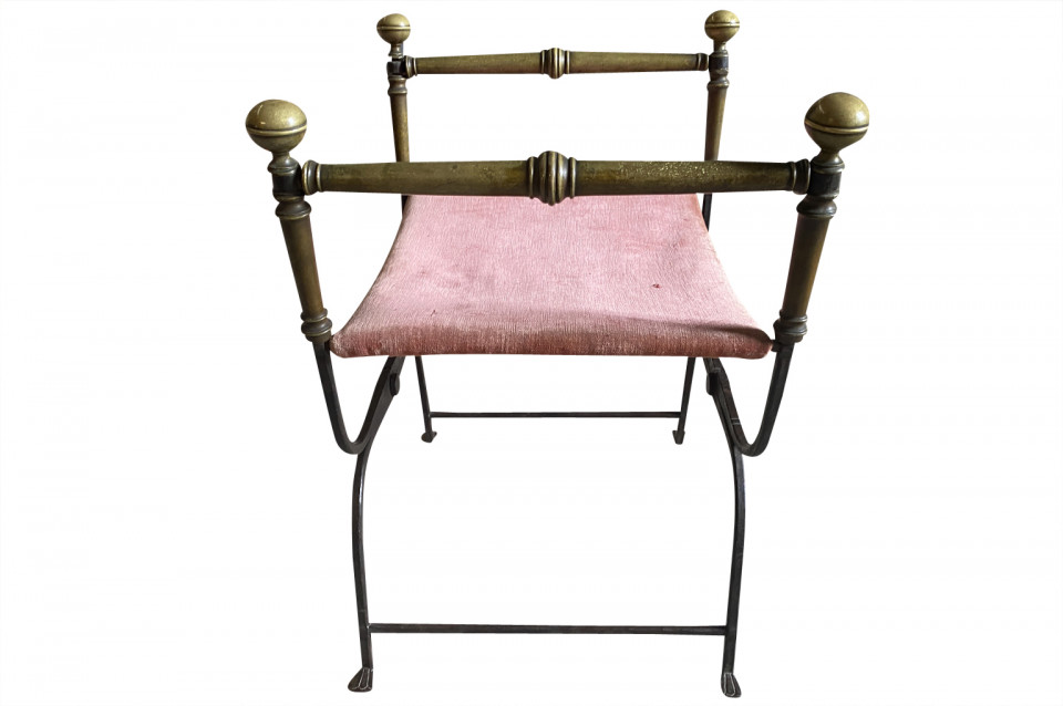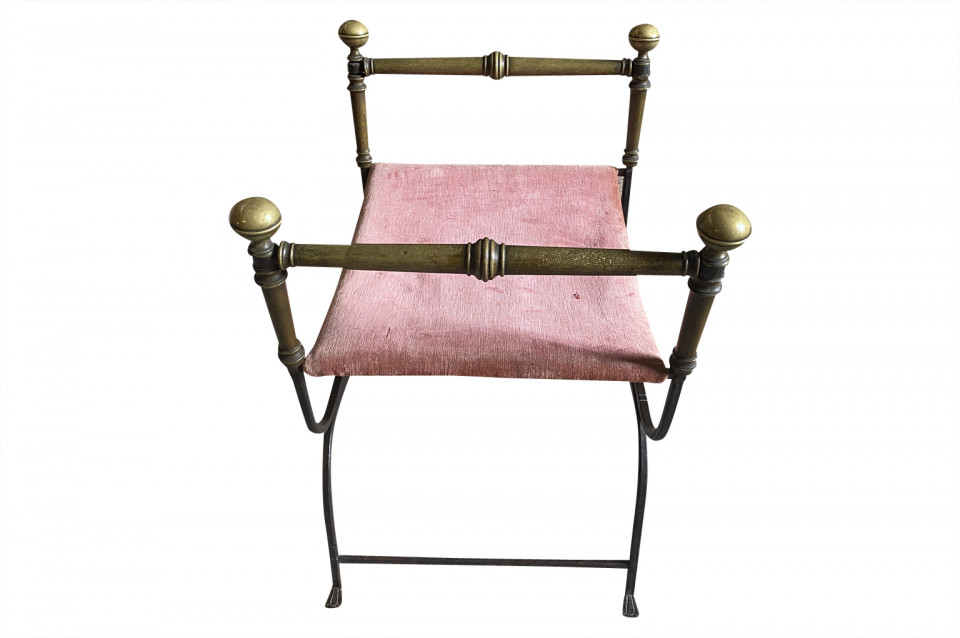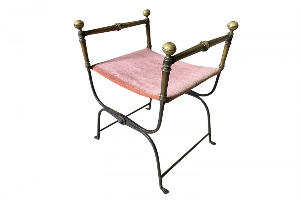 An outstanding 17th century Curule Stool from Venice, Italy. Expertly crafted from hand forged iron with exquisite incised detailing and bronze accents. True craftsmanship. The seat height is 20 3/4".