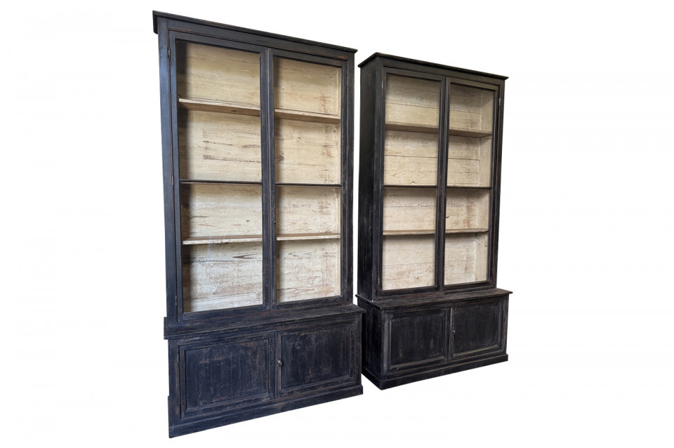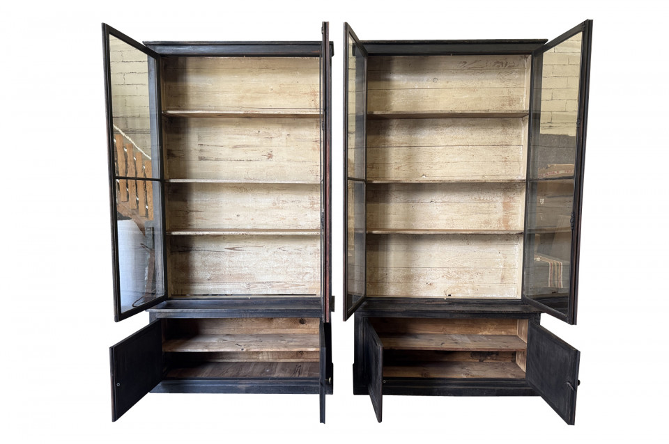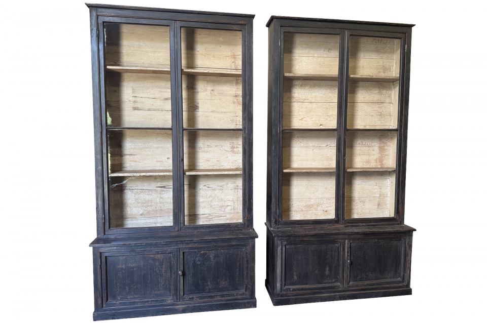A very handsome pair of 19th century Deux Corps Bibliotheques from the Provence region of France in painted wood. Wonderful storage and display cabinets.