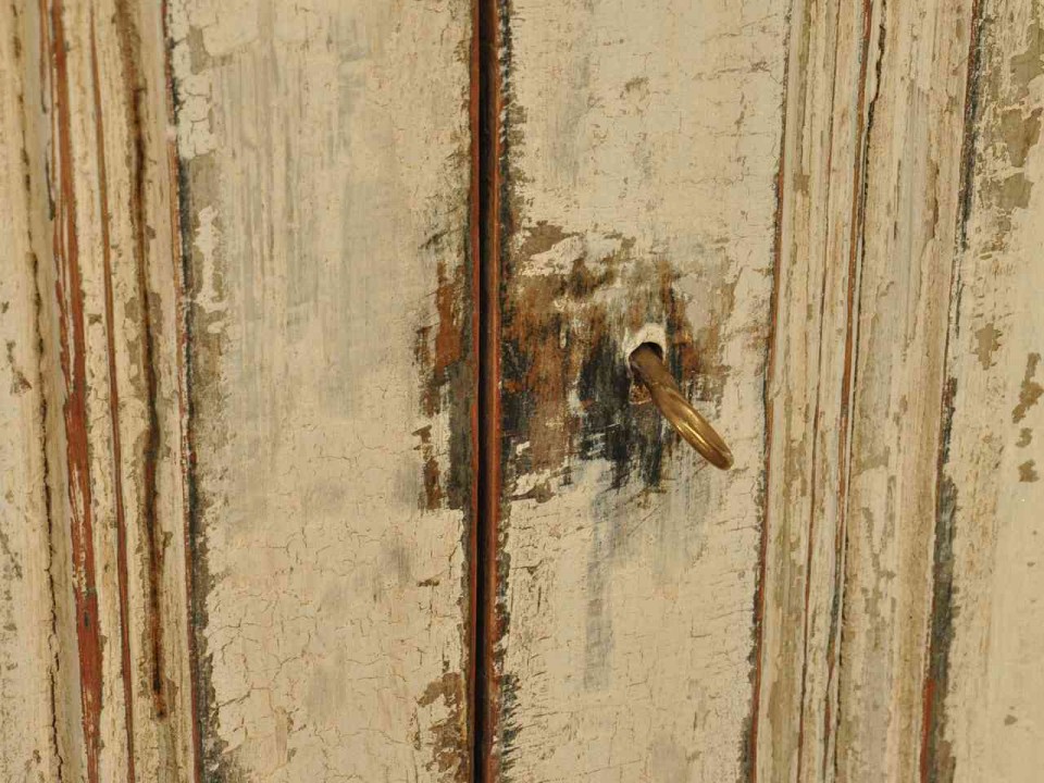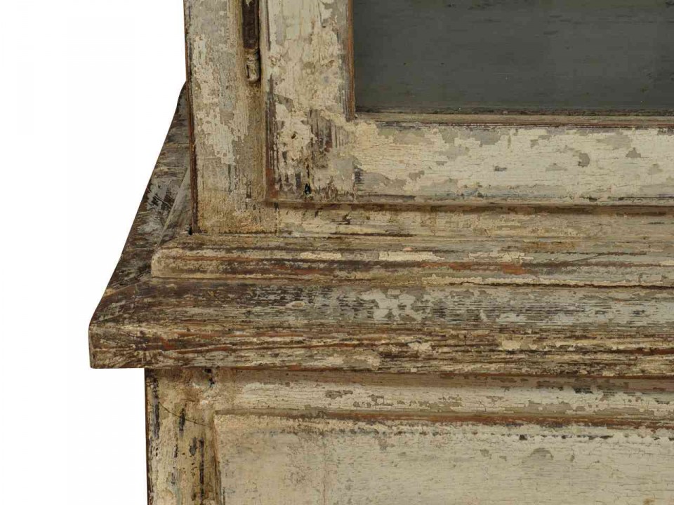 A charming early 19th century painted bookcase in painted wood from Portugal. The cabinet is beautifully constructed in two sections. Not only wonderful as a bookcase in a library or living area, but also wonderful as kitchen cabinet as well.
