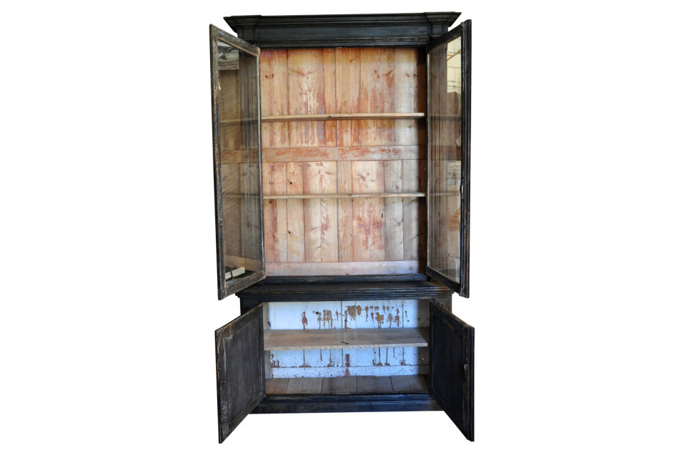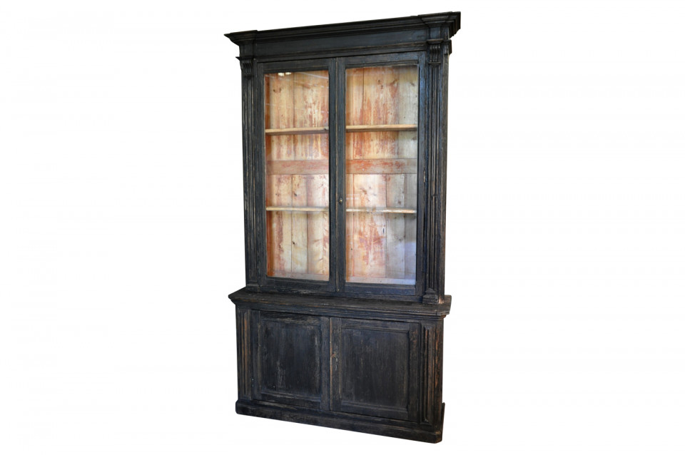 A very handsome mid-19th century Deux Corps Bibliotheque - Bookcase from the South of France. Wonderfully constructed from painted wood with beautiful wavy glass panels. The depth of the upper section is 10 3/4".