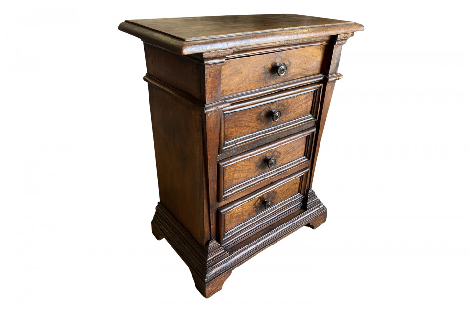 A very handsome 18th century Mobiletto - Side Chest from the Tuscan region of Italy. Wonderfully constructed with 4 drawers on bracket feet in beautiful walnut. Rich patina - very luminous.