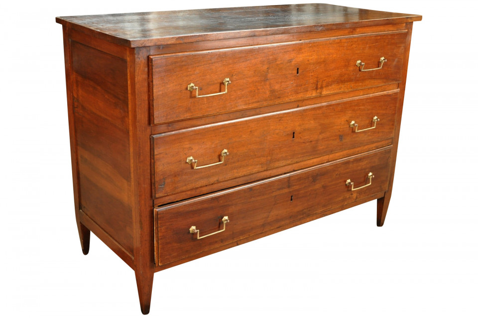 An exceptional and rare Directoire period commode from France. Beautifully constructed from walnut. Sumptuous patina - rich and luminous. Understated elegance.