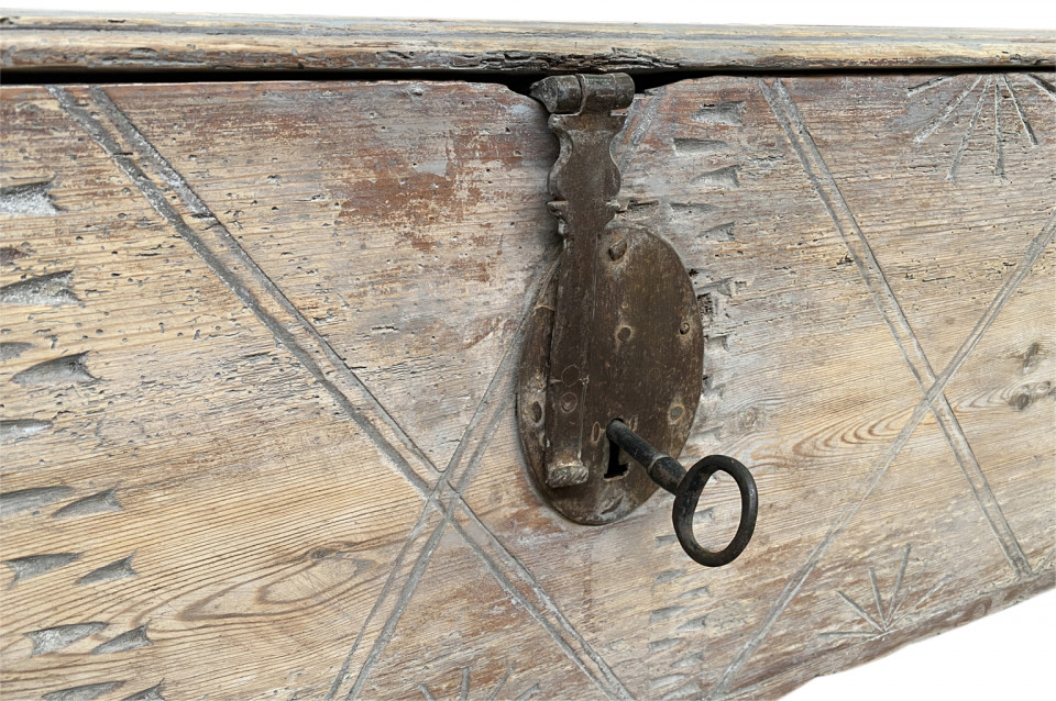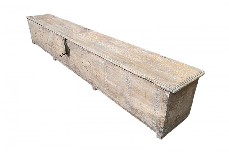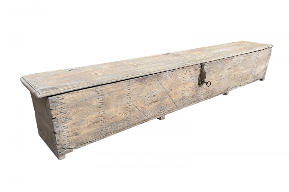 A very handsome 18th century Coffre - Trunk from the Catalan region of Spain. Wonderfully constructed from naturally washed Meleze - a very hard pine. Unusual proportion and excellent patina.