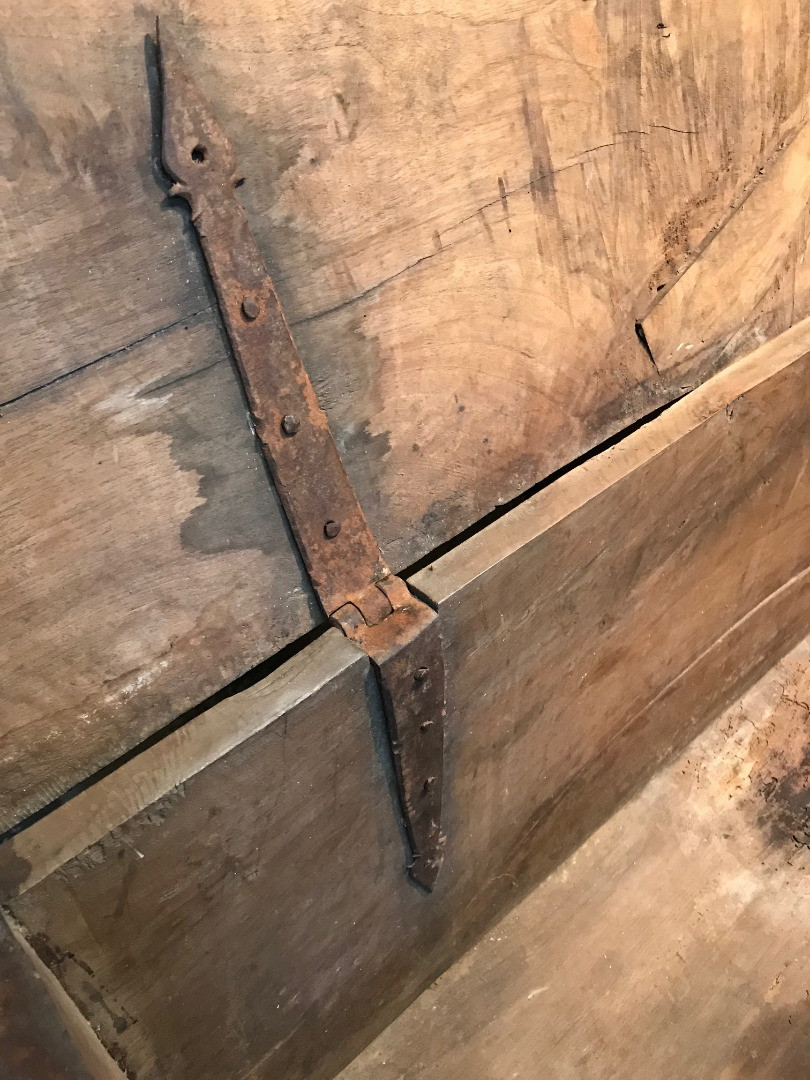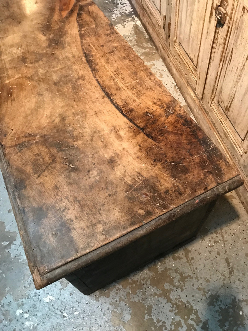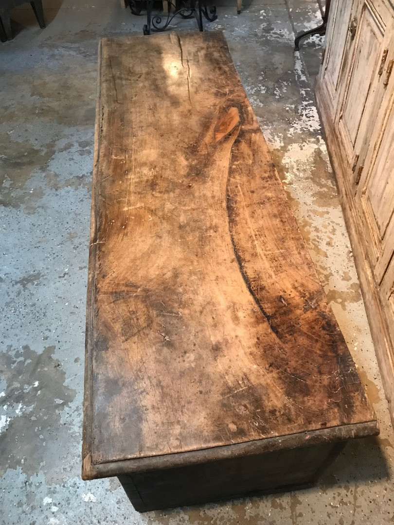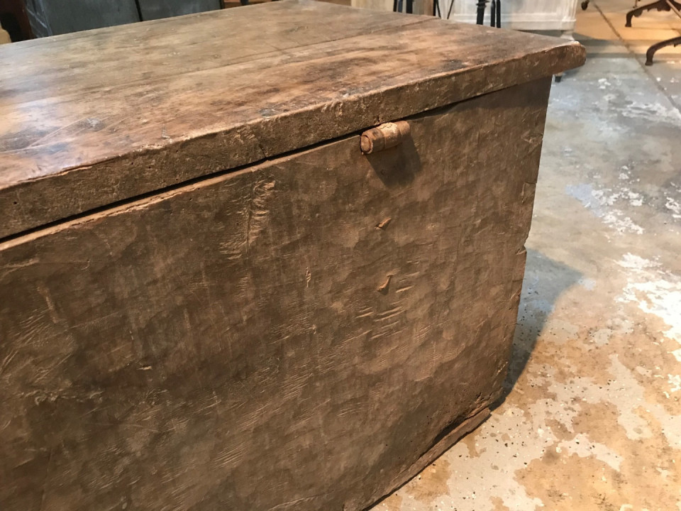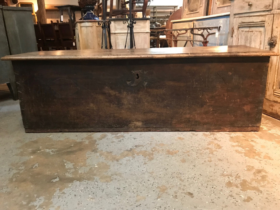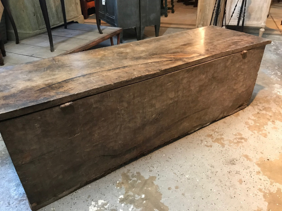 An outstanding primitive trunk or coffre from the Catalan region of Spain. Wonderfully constructed from thick and solid boards of walnut with dovetail joinery. Terrific patina. Perfect at the foot of a bed or under a picture window.