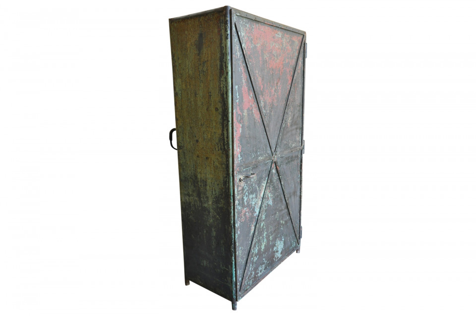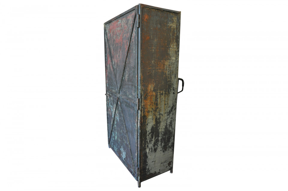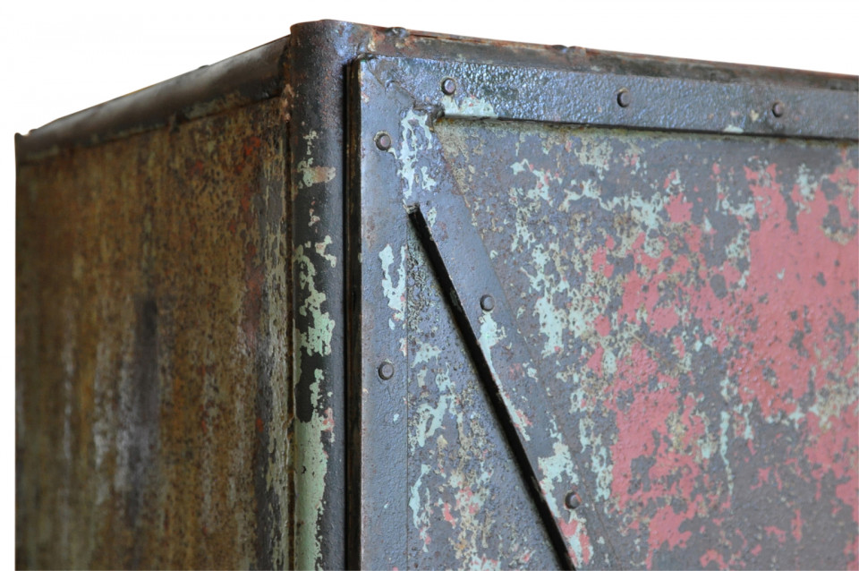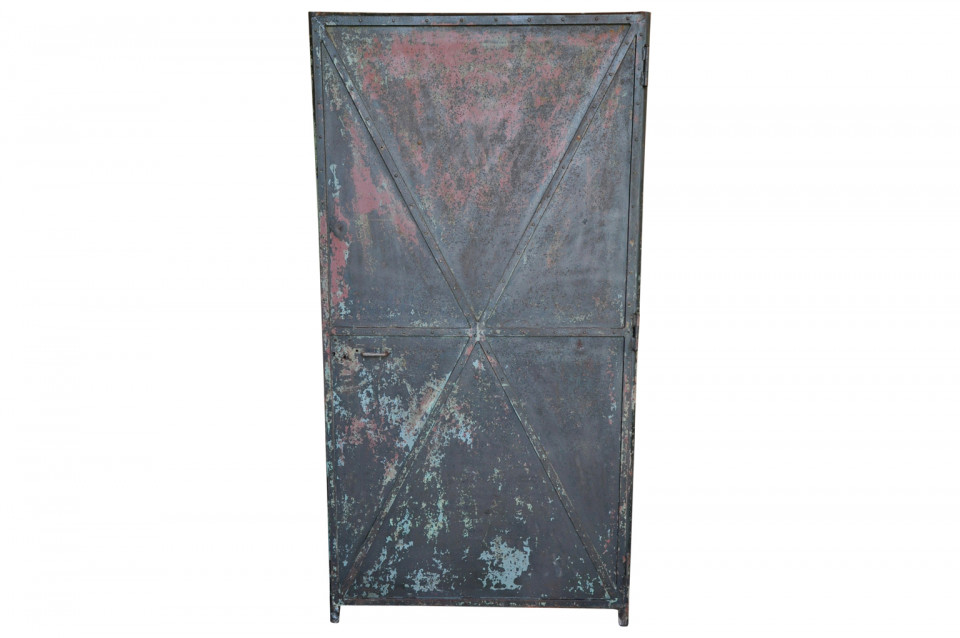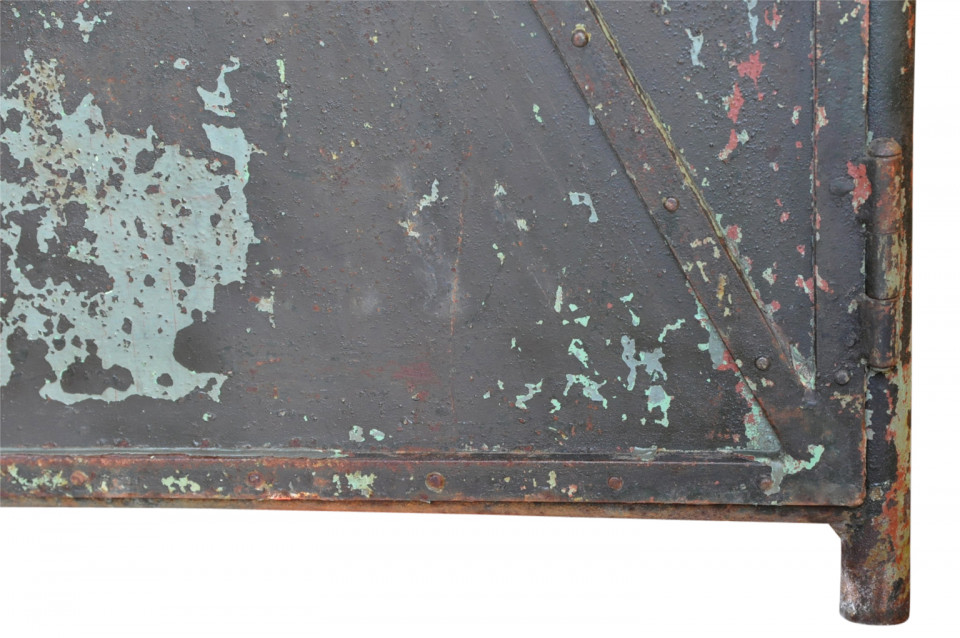 A very handsome early 20th century French industrial locker - cabinet in painted iron. Fabulous Patina.