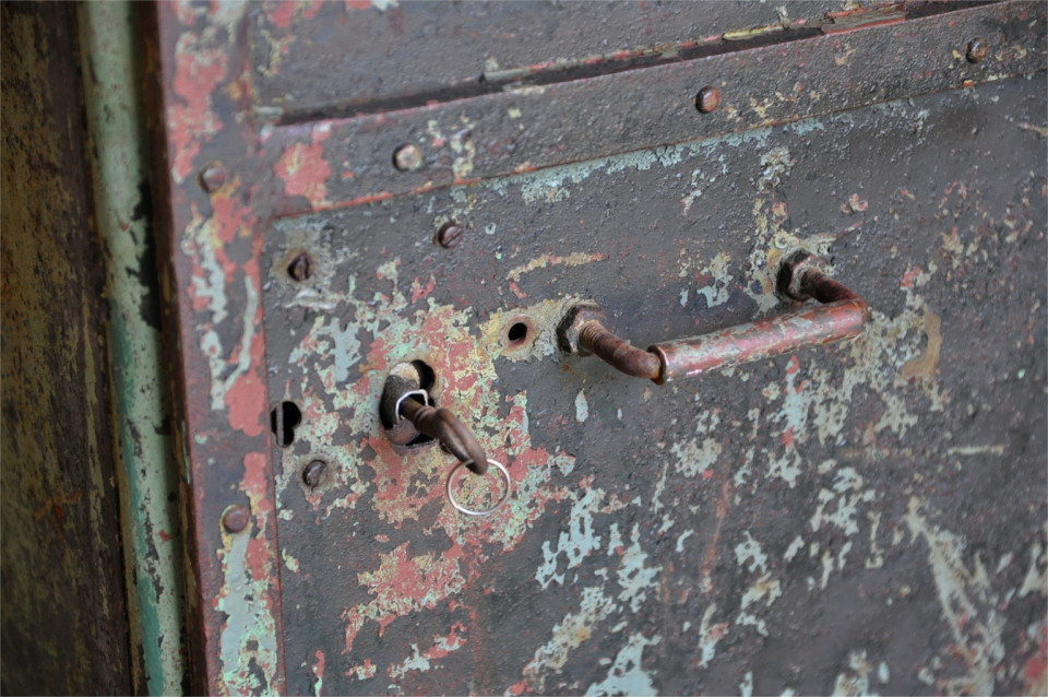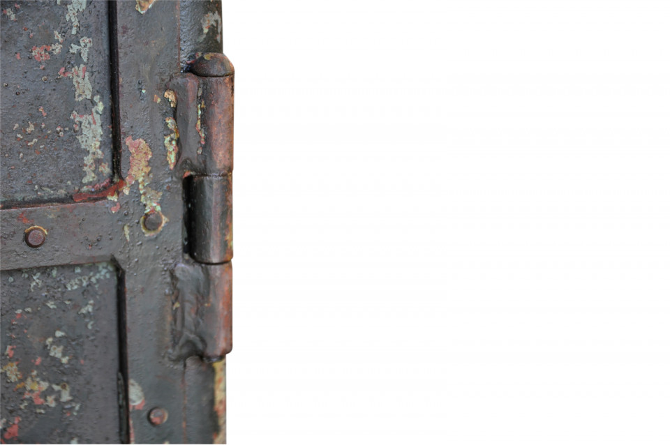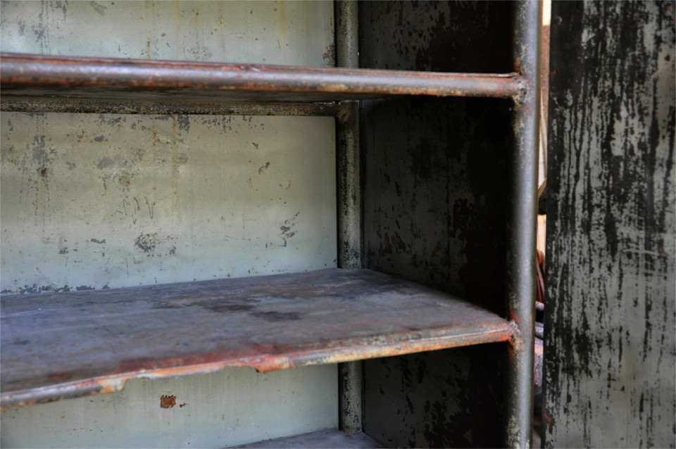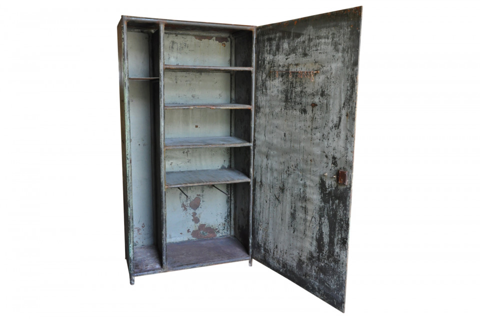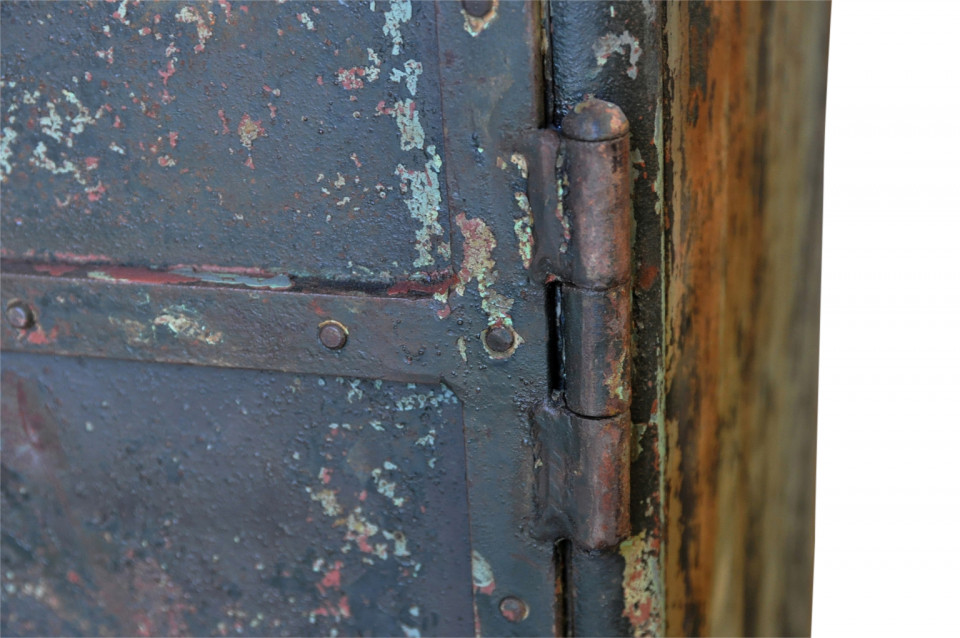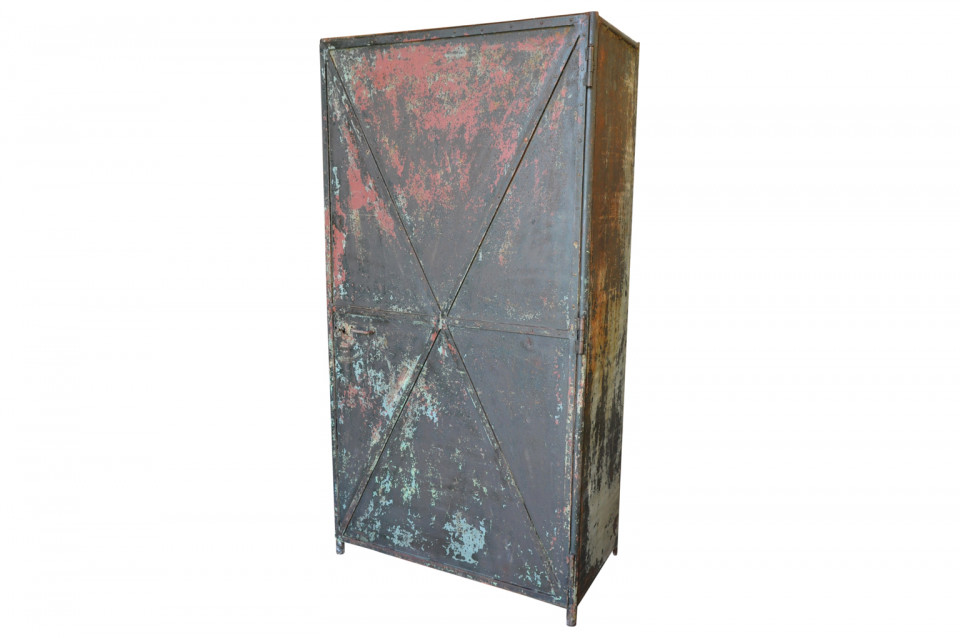 A very handsome early 20th century French industrial locker - cabinet in painted iron. Fabulous Patina.