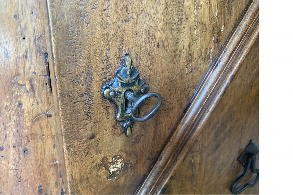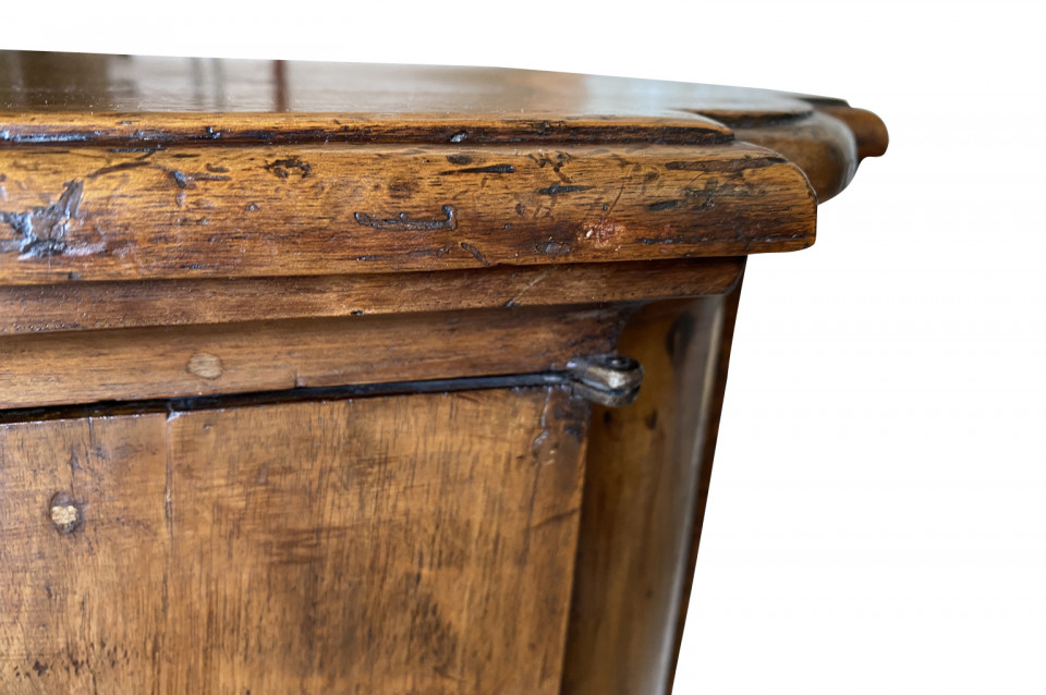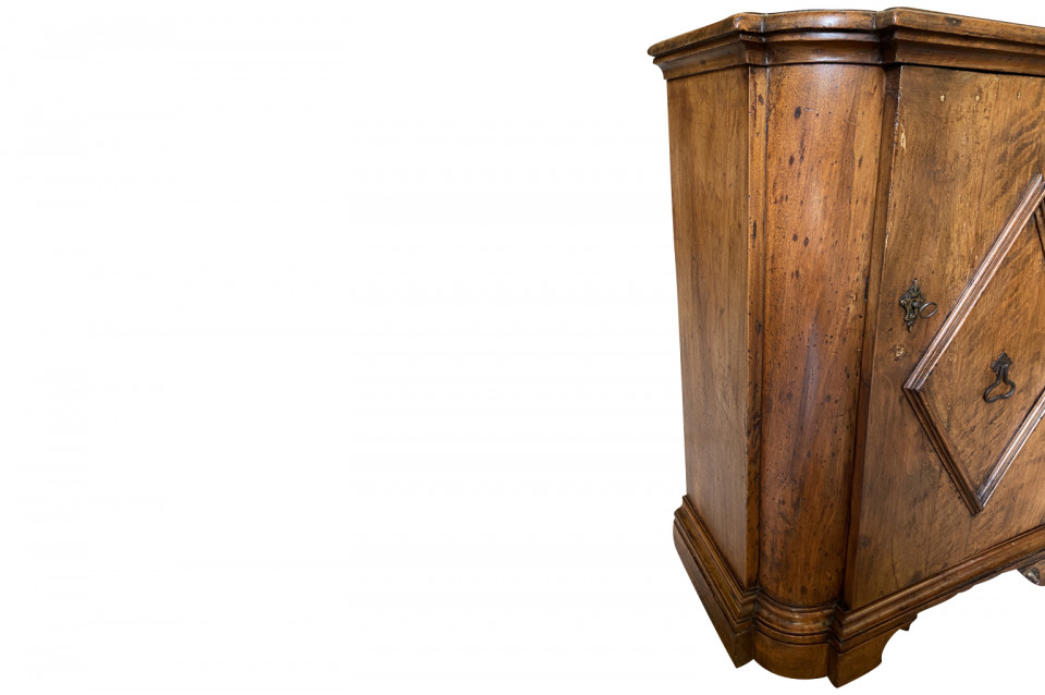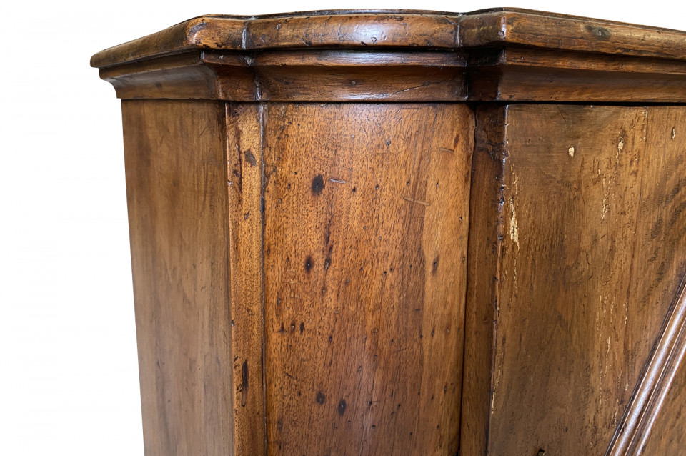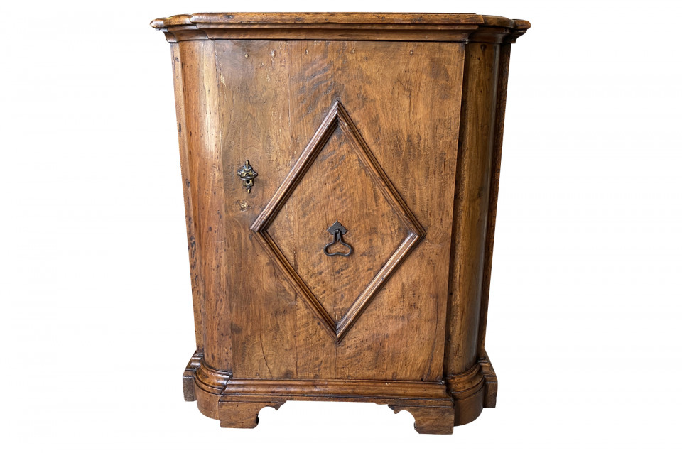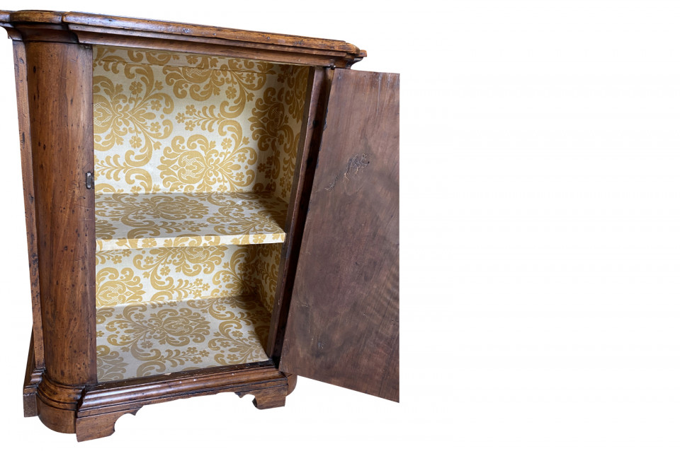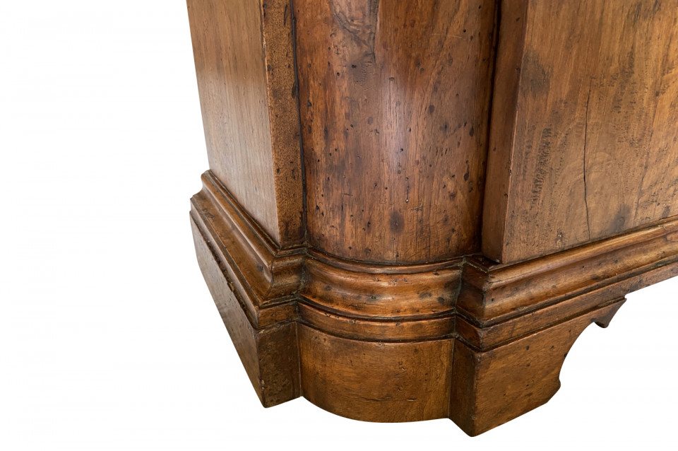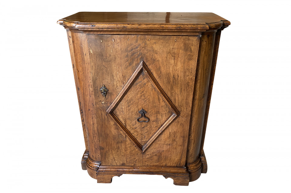 A very handsome early 19th century Pair Of Credenzino from the Tuscany region of Italy. Soundly constructed from stunning walnut - with scantonata form, molded door panels resting on bracket feet. Beautiful patina and graining.