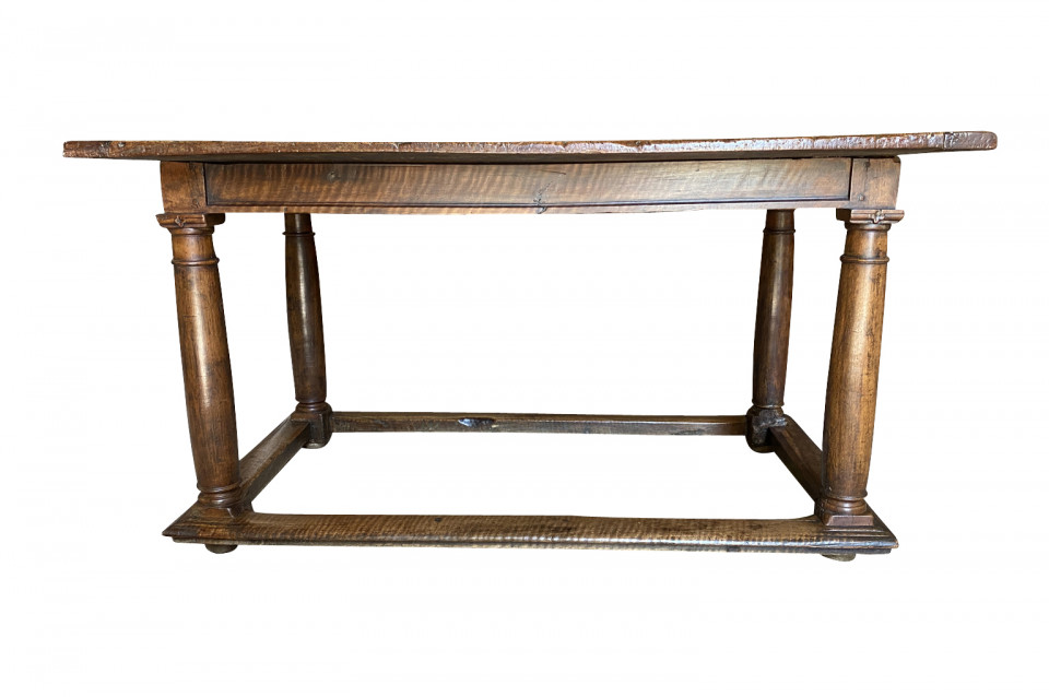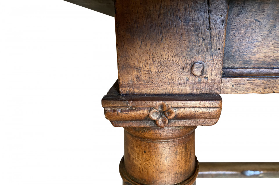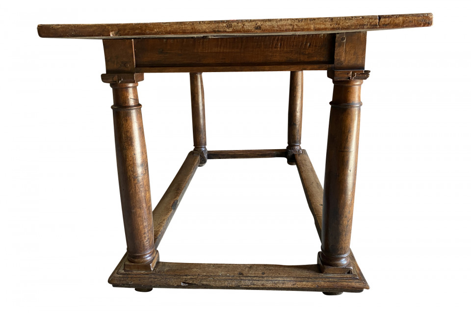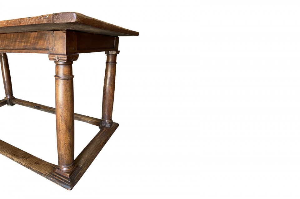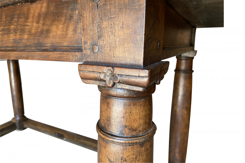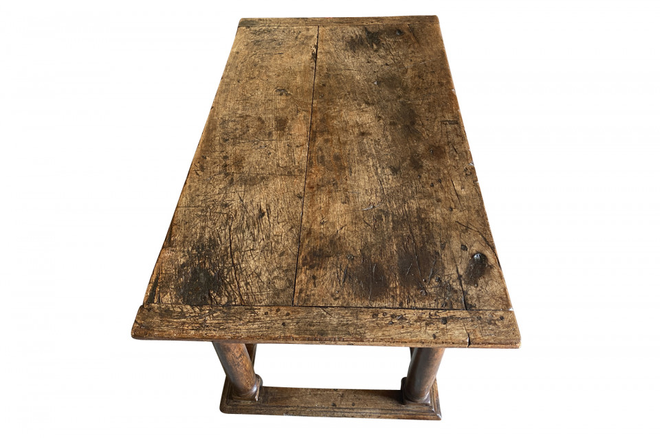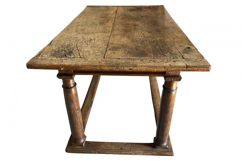 A stunning 17th century Center Table - Console from the Catalan region of Spain. Beautifully constructed from handsome walnut. Excellent patina and graining - warm and luminous. Petite flowers adorn the capitals of the legs. Gorgeous.