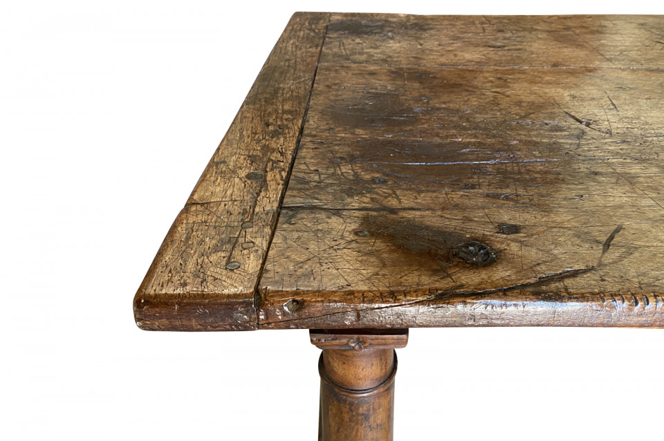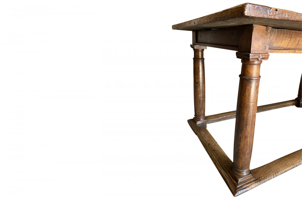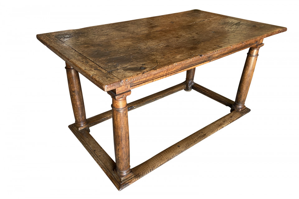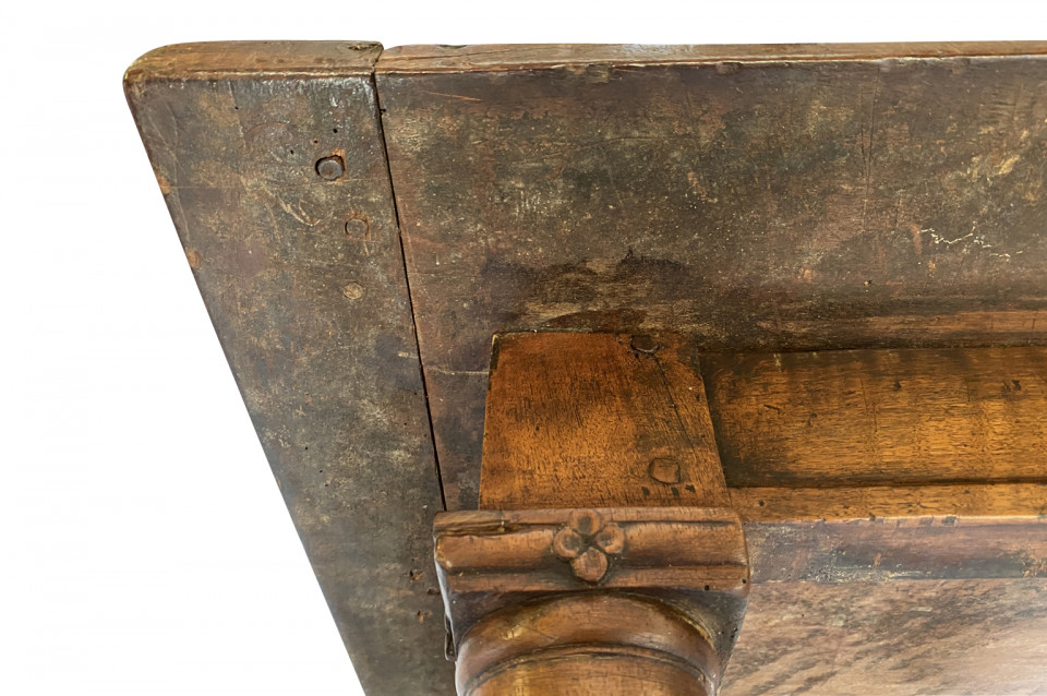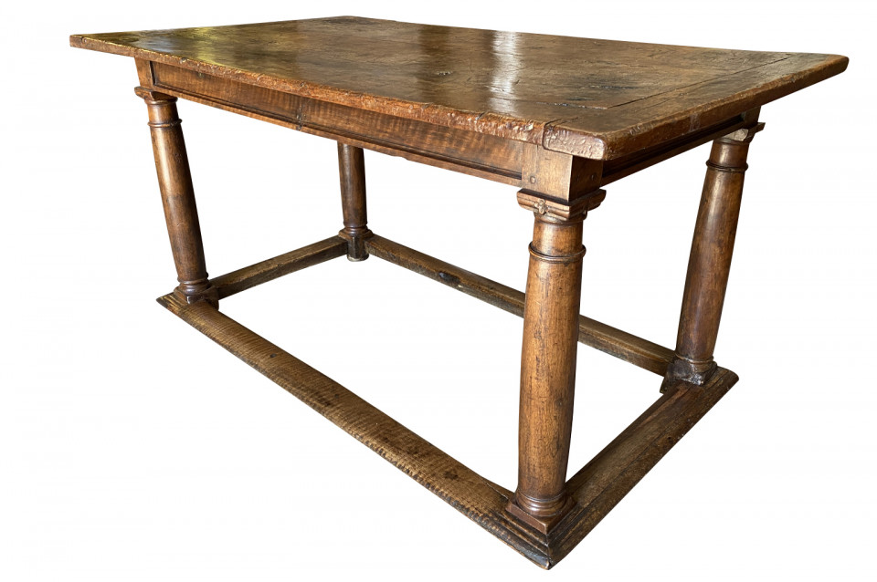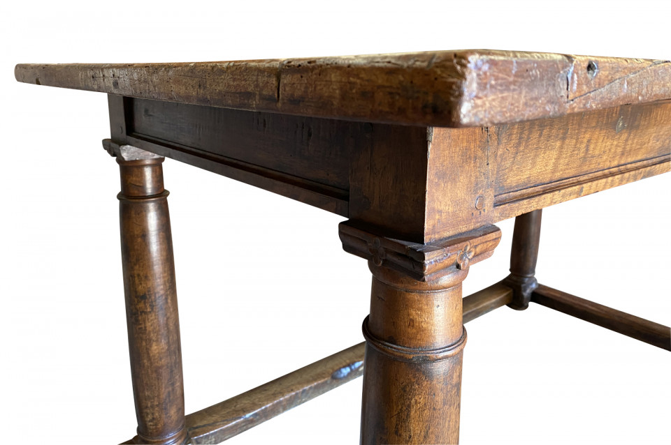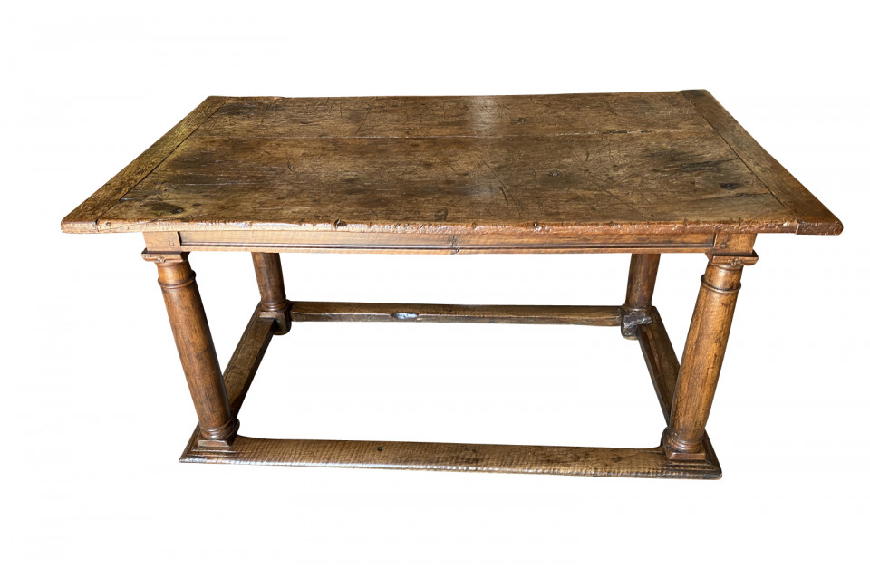A stunning 17th century Center Table - Console from the Catalan region of Spain. Beautifully constructed from handsome walnut. Excellent patina and graining - warm and luminous. Petite flowers adorn the capitals of the legs. Gorgeous.