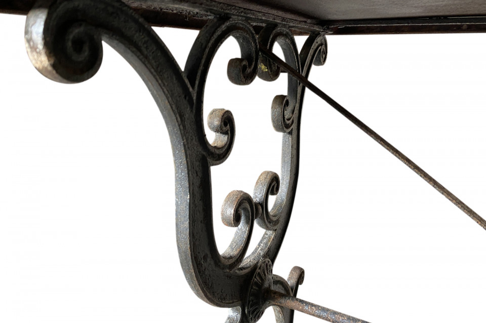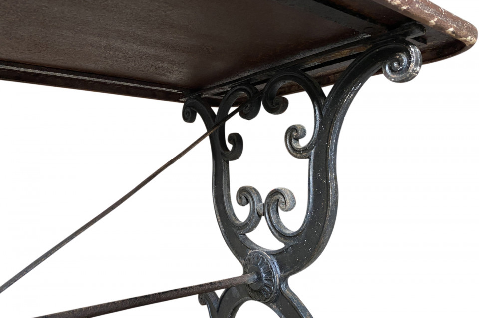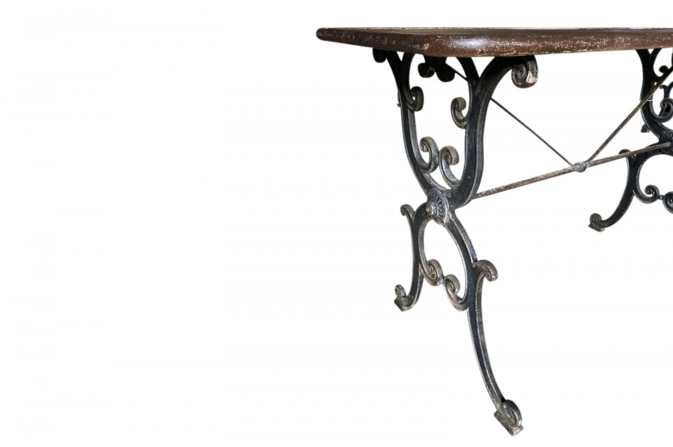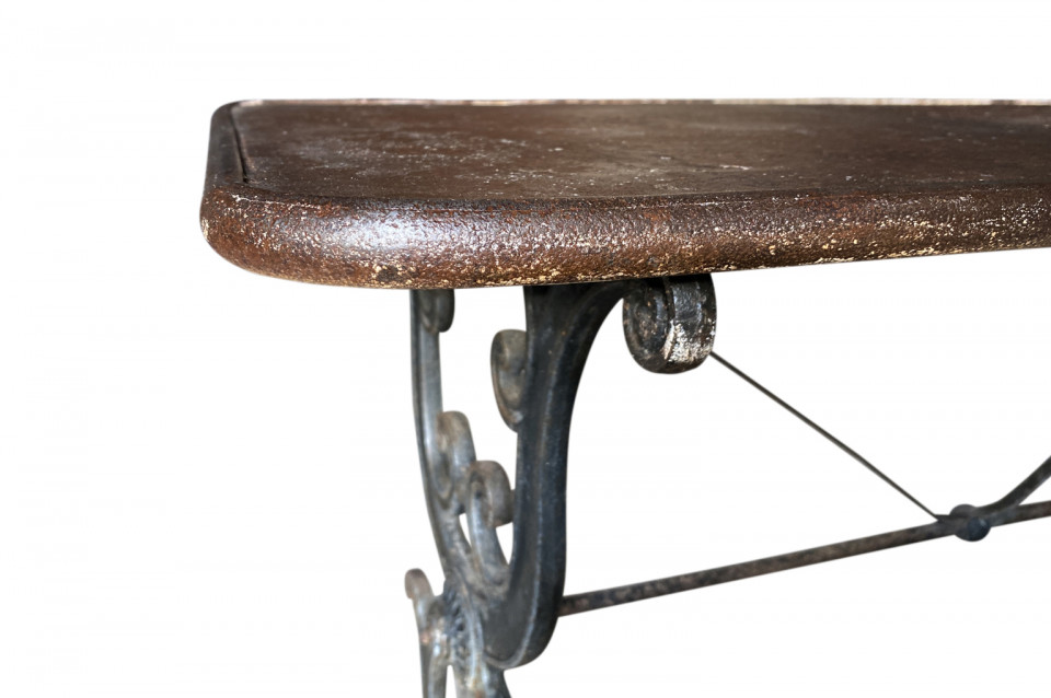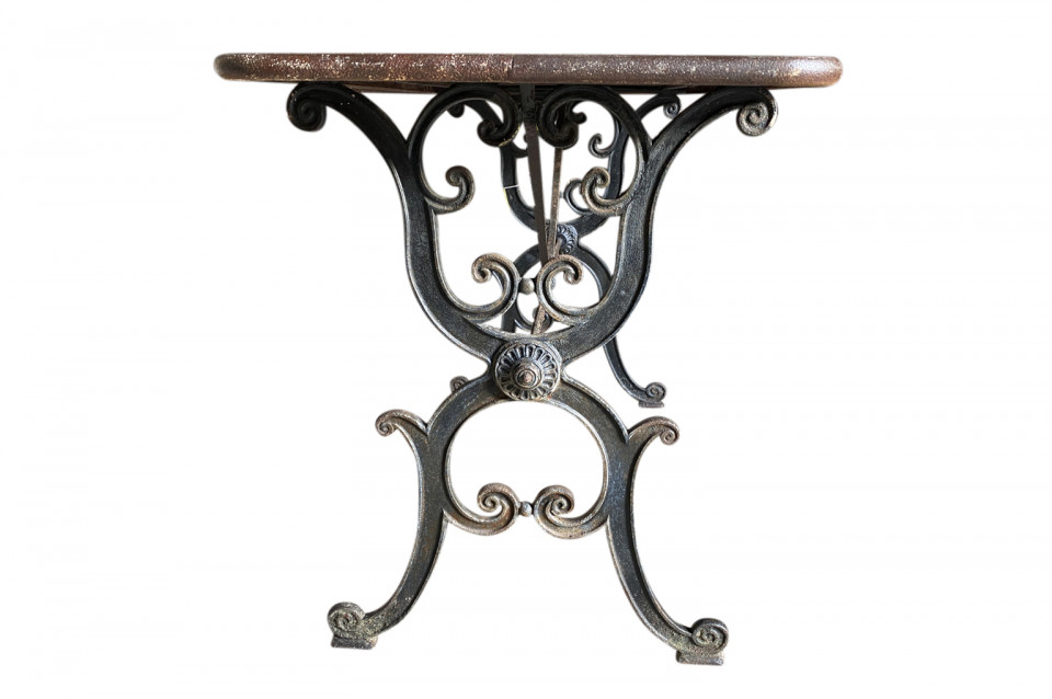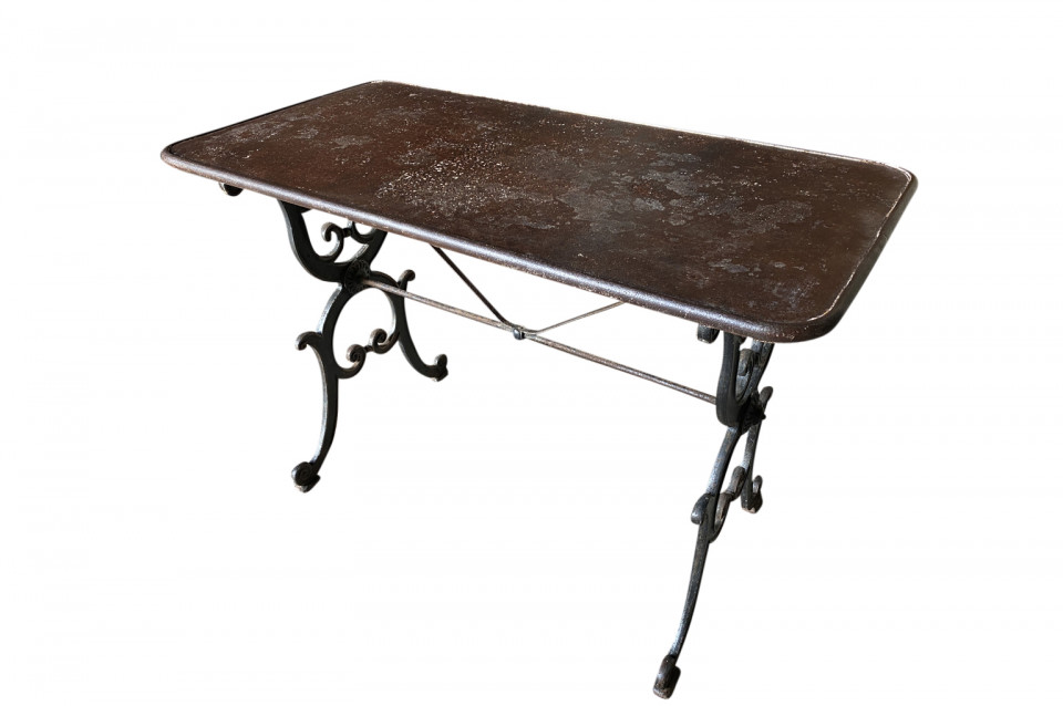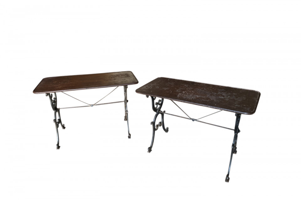 A super pair of 19th century Bistro Tables from the Provence region of France. Wonderfully constructed with cast iron bases and metal tops. Perfect for any interior or garden.