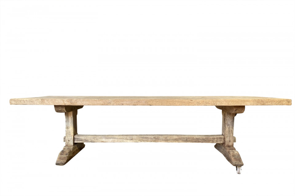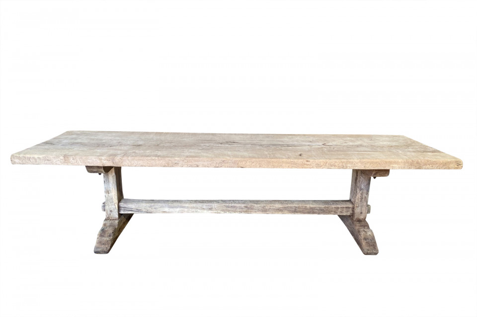 A tremendous grand scale Farm Table - Trestle Table from the South Of France. Soundly constructed from washed chestnut with an outstanding solid board top. Perfect for large family gatherings.