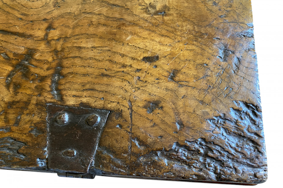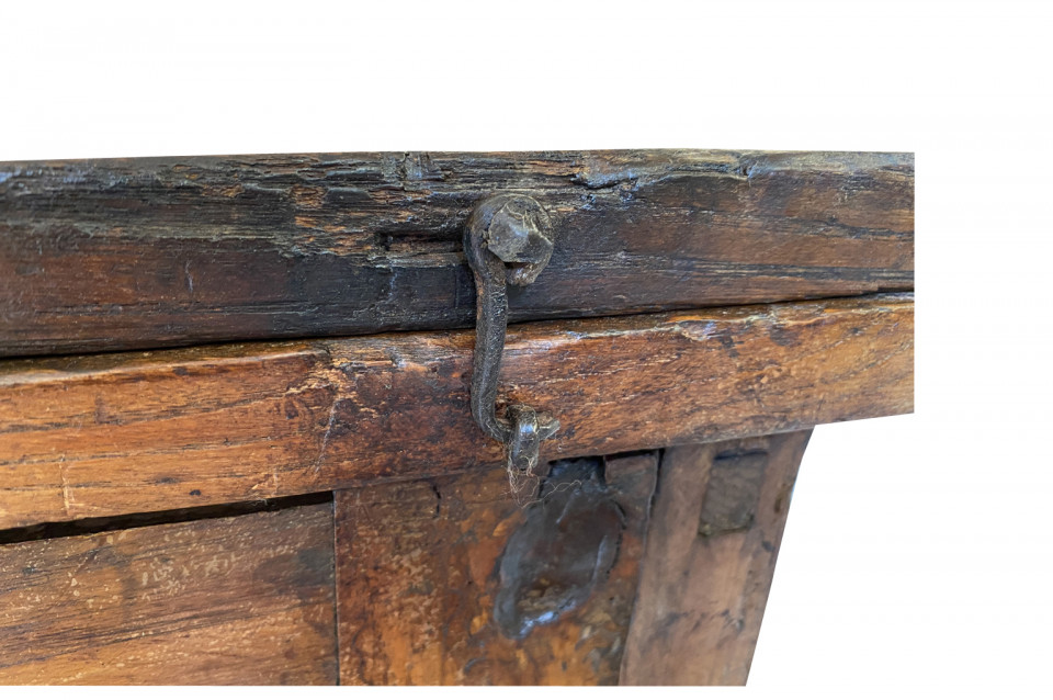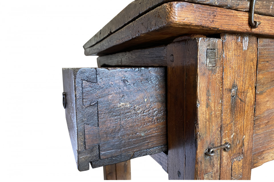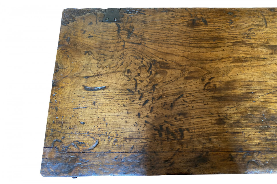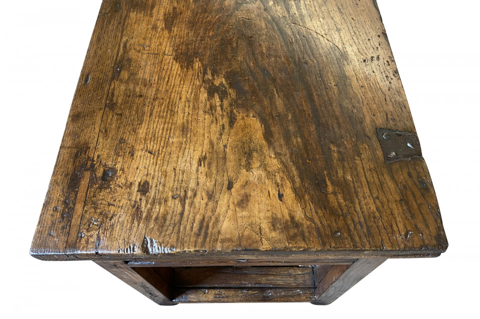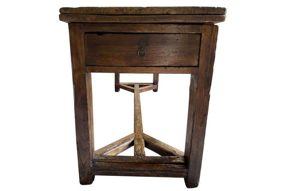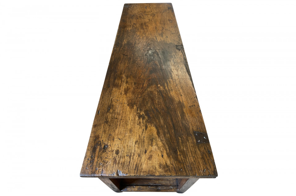 An exceptional and intriguing Reflectoire Table from the Ardeche region of France. Beautifully constructed from handsome chestnut. This very interesting table converts from a narrow console table with 2 drawers to a larger work table. Terrific as a serving piece - or opened when additional dining seating is needed. Super patina. The table measures when closed 32 3/4" H X 81 5/8" L X 24 7/8" D. When opened, the table measures 31 5/8" H X 81 5/8" L X 49 7/8" D.