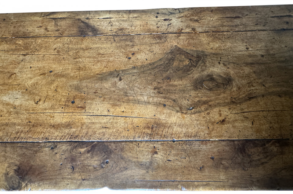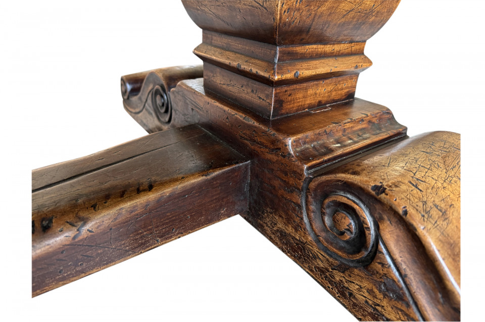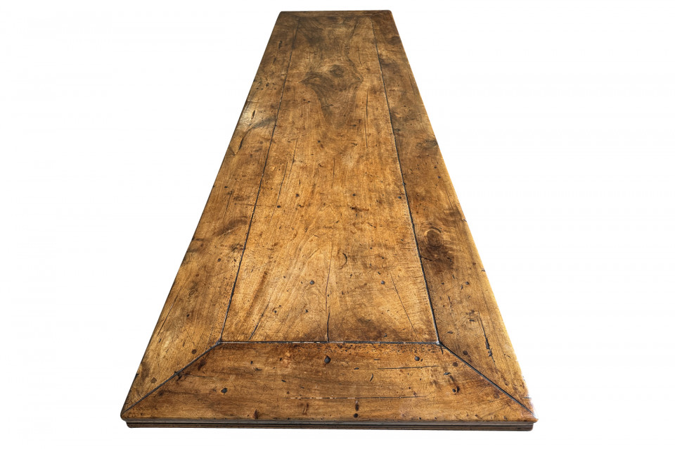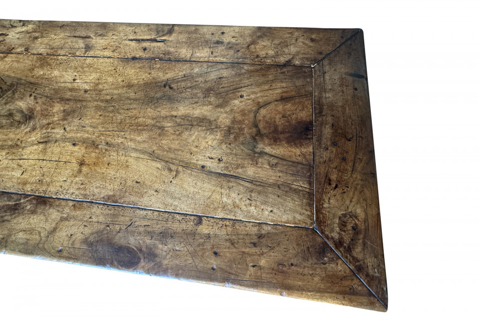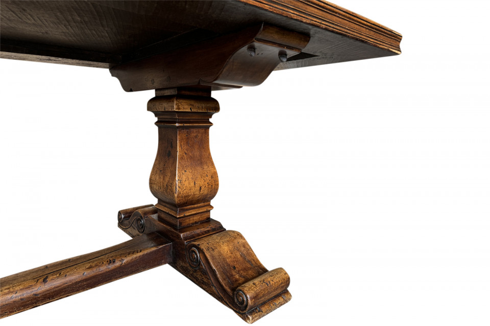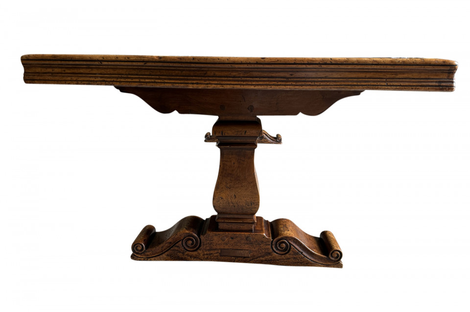 A very handsome and very sound mid-19th century Louis XIV style Monastery Table - Trestle Table from a chateau in the South of France. Wonderfully constructed in walnut with a terrific edge finish to the top surface, pedestal legs and nicely shaped feet. A grand scale table perfect for large family gatherings.