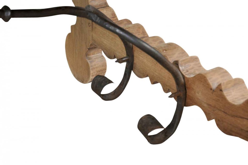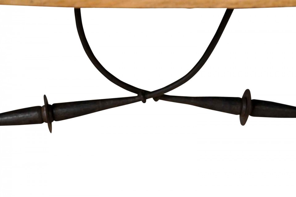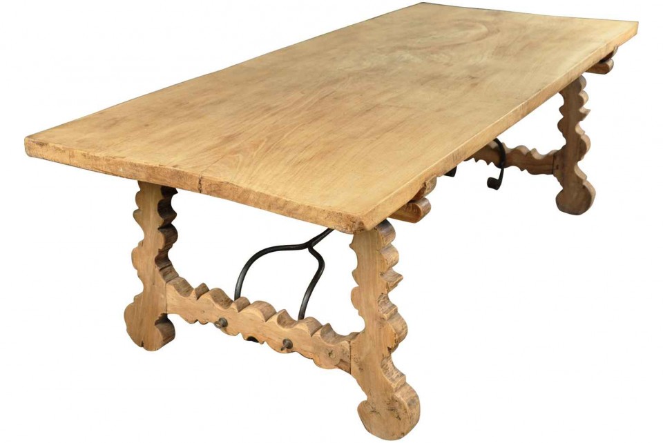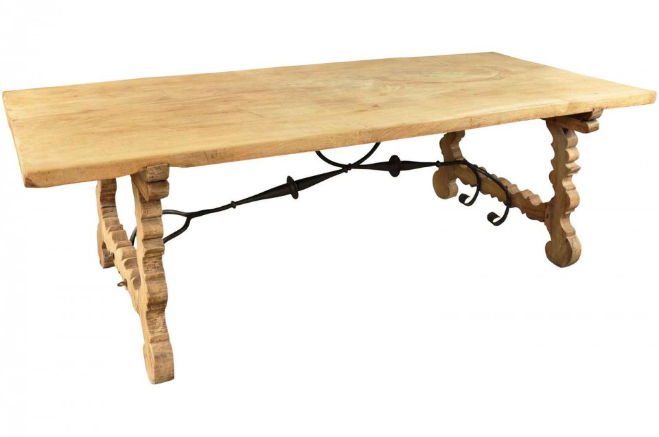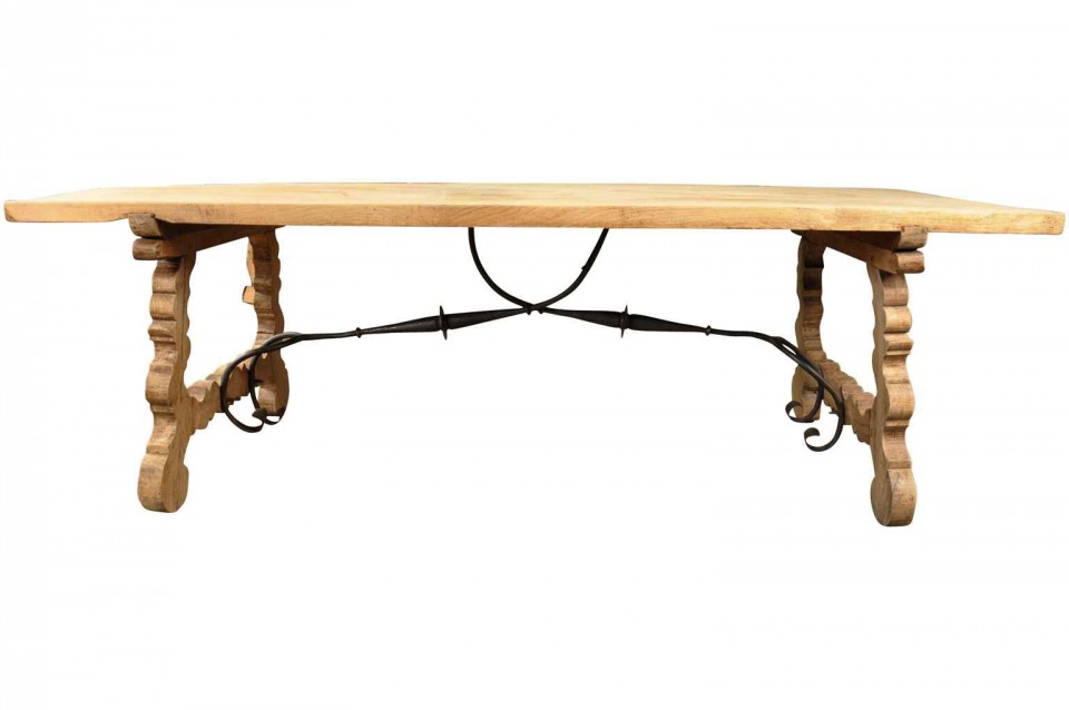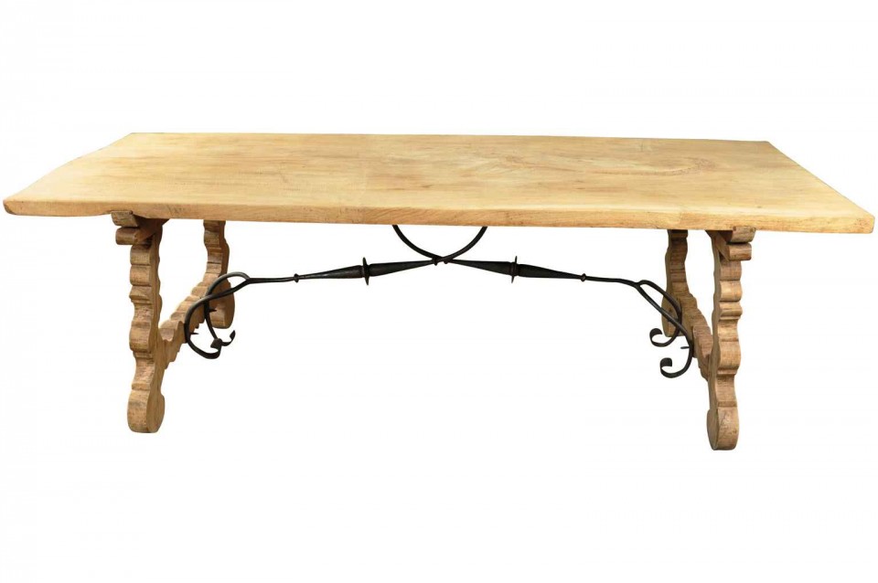 A very striking 19th century Spanish farm table constructed from bleached or washed chestnut and hand-forged iron stretchers. Wonderful not only as a dining table, but as a large console or writing table as well.