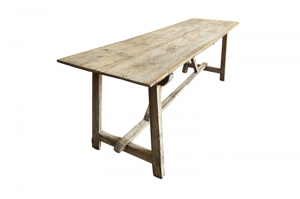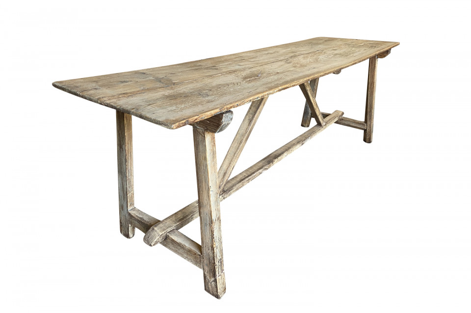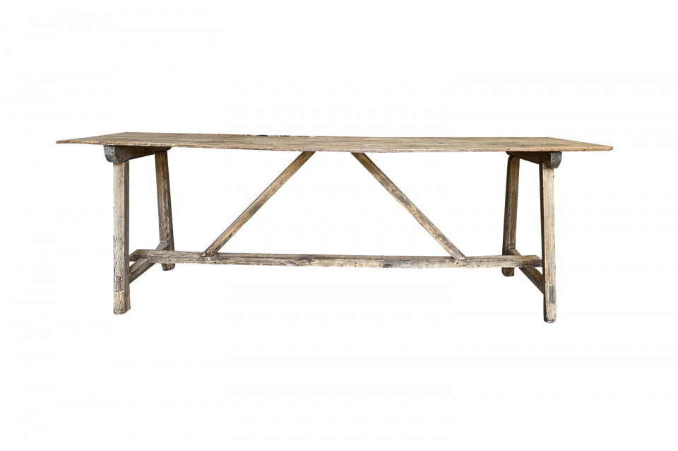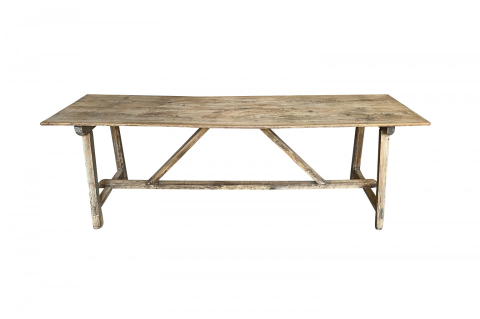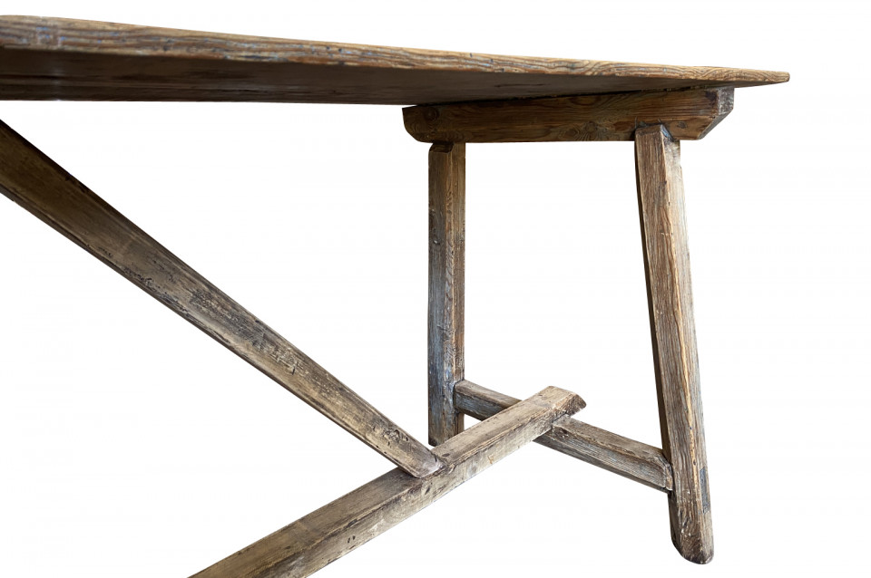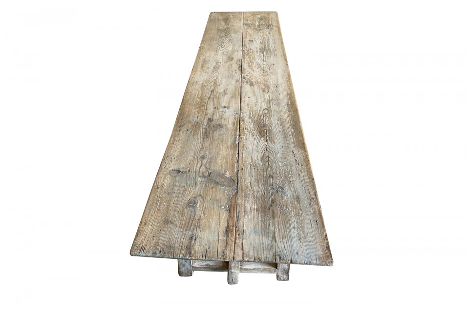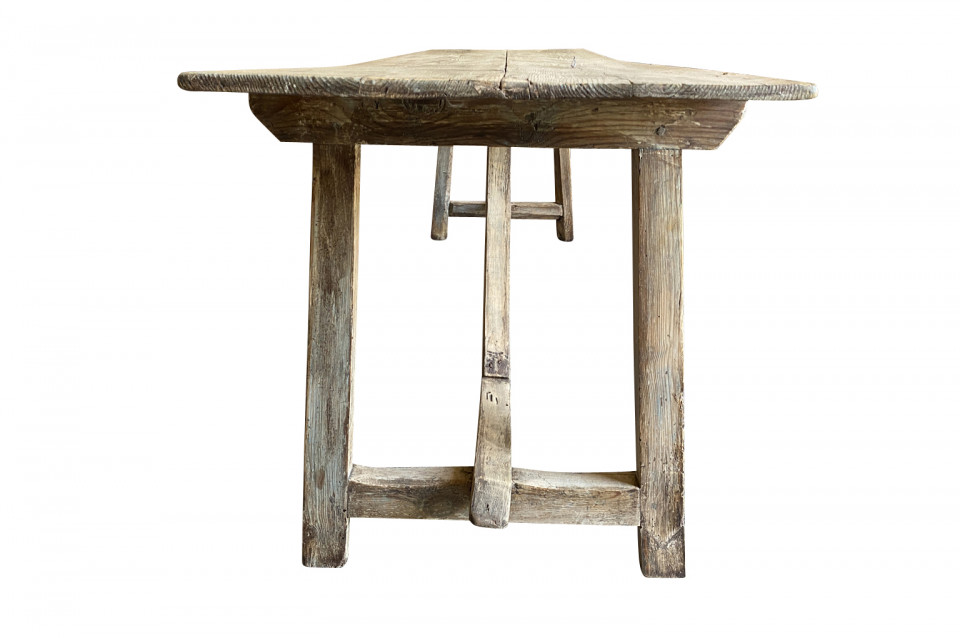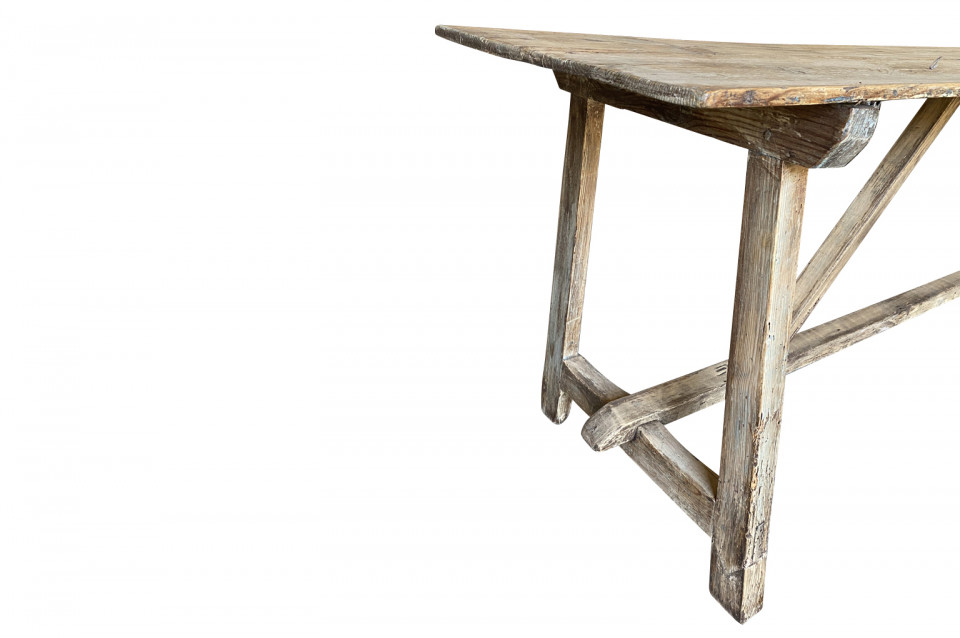 A very charming primitive table from the Catalan region of Spain. Soundly constructed from Meleze - a very hard pine. Terrific patina. Serves beautifully as a console table or intimate dining table.