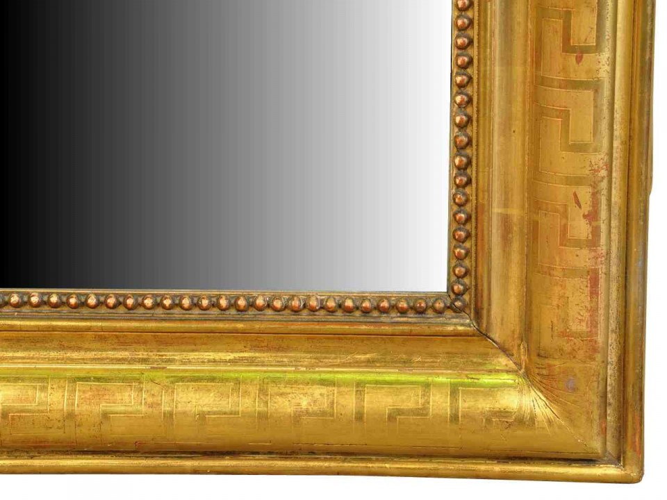French 19th century Louis Philippe period mirror in gilt wood with its original mercury glass, circa 1850.