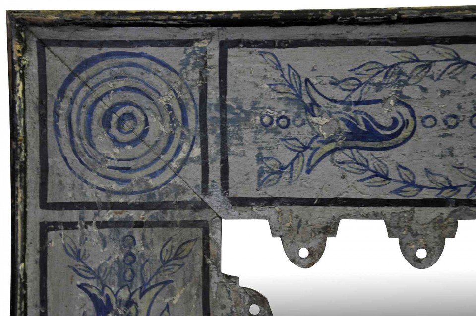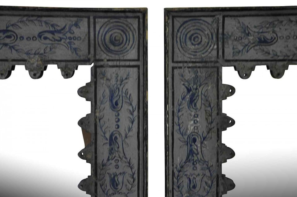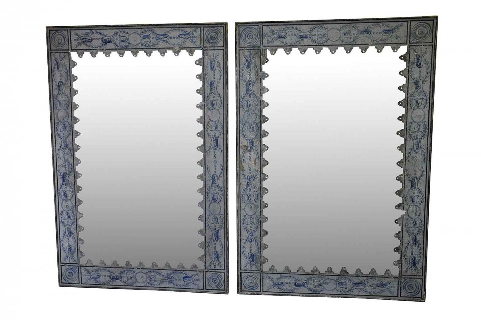 A terrific pair of Spanish mirrors in painted metal on wood back. These mirrors may be sold as a pair or individually. The price per piece is $3625.