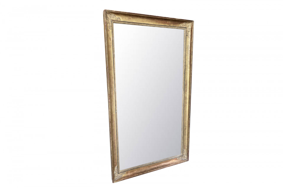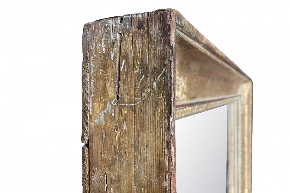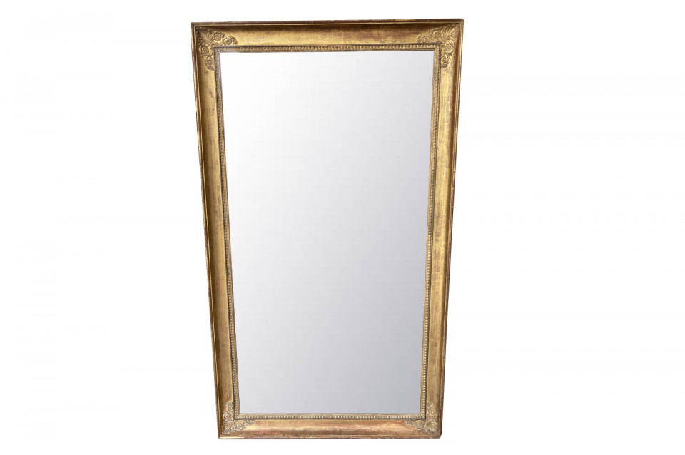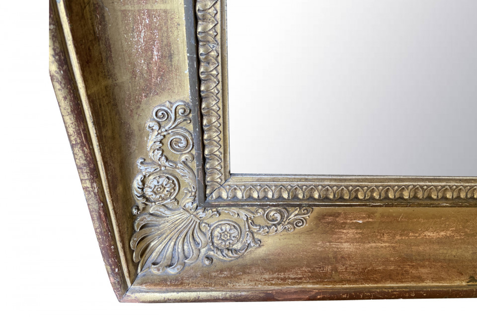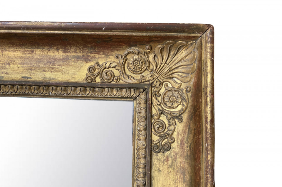 A very elegant early 19th century French Empire Mirror. Beautifully constructed from giltwood with neoclassical carvings. Original mercury glass mirror with wonderful crazing. Sensational patina.