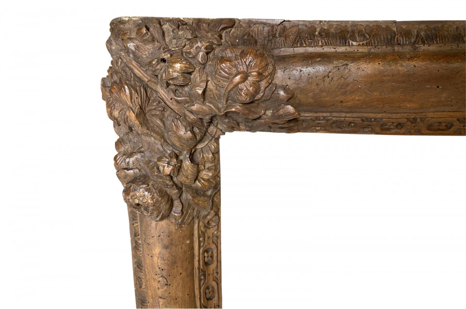 A very striking period Louis XIII frame from the Provence region of France. Beautifully crafted from carved walnut. Lovely patina. Perfect to house a piece of art or to convert into a mirror.