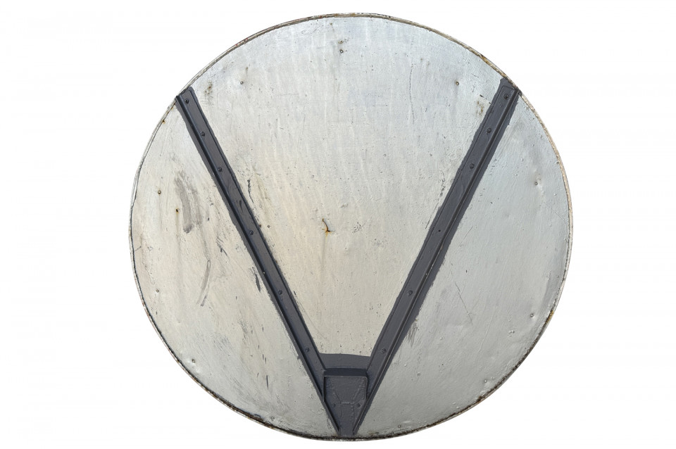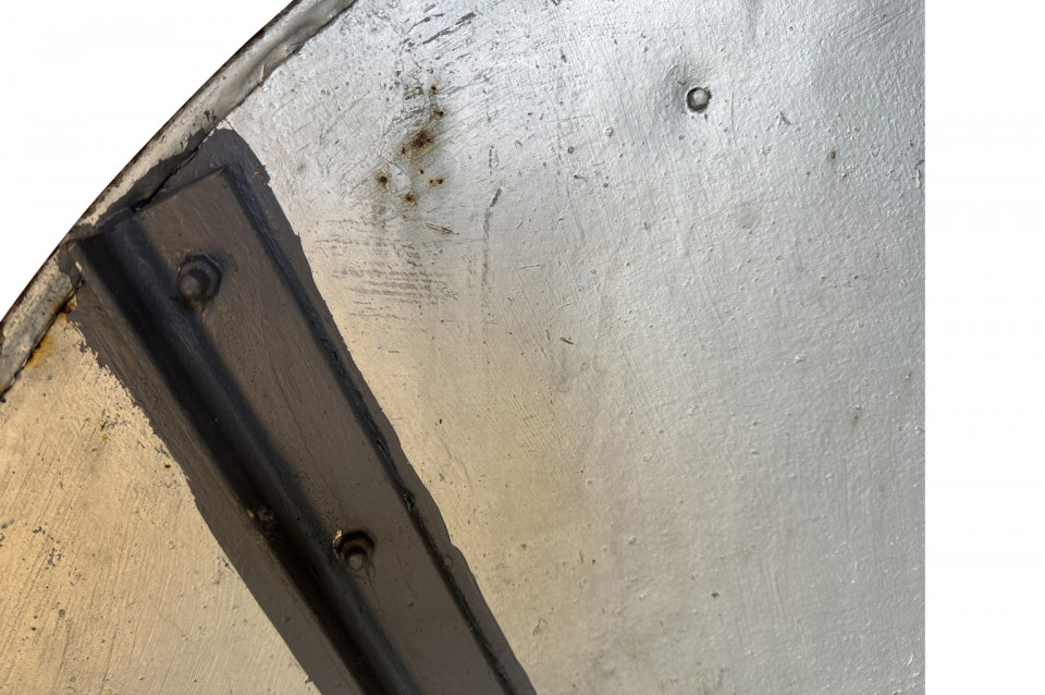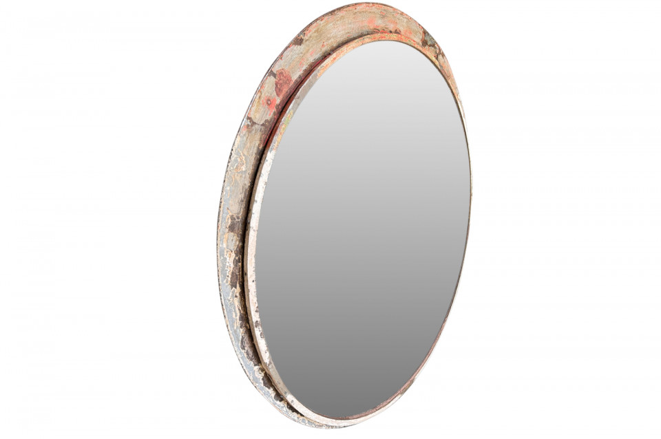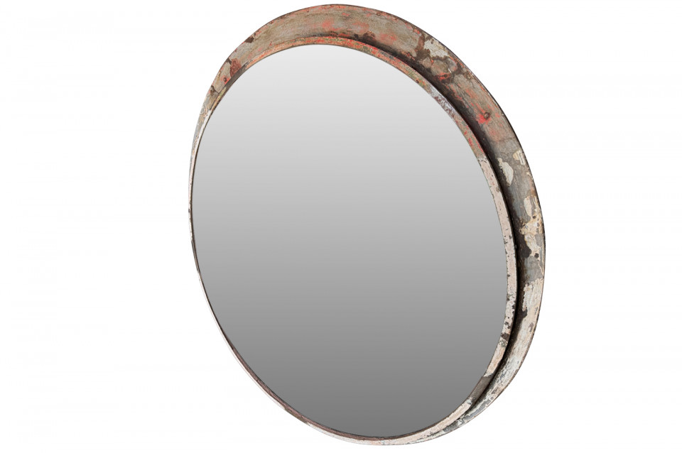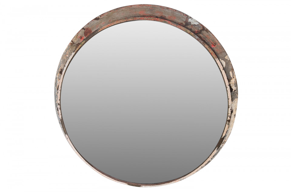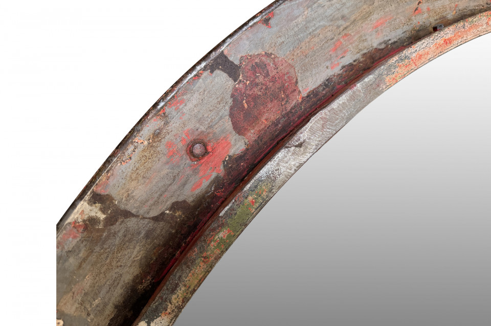 A terrific grand scale Industrial Convex Mirror in its painted iron frame. Mirrors such as this were used in parking garages and on the railways. A fabulous accent piece.
