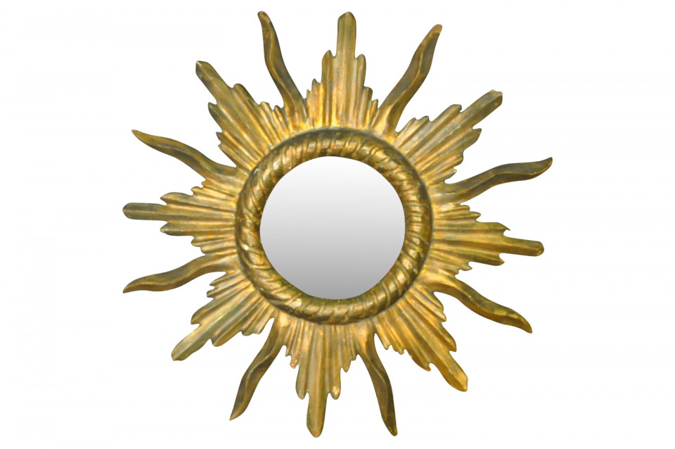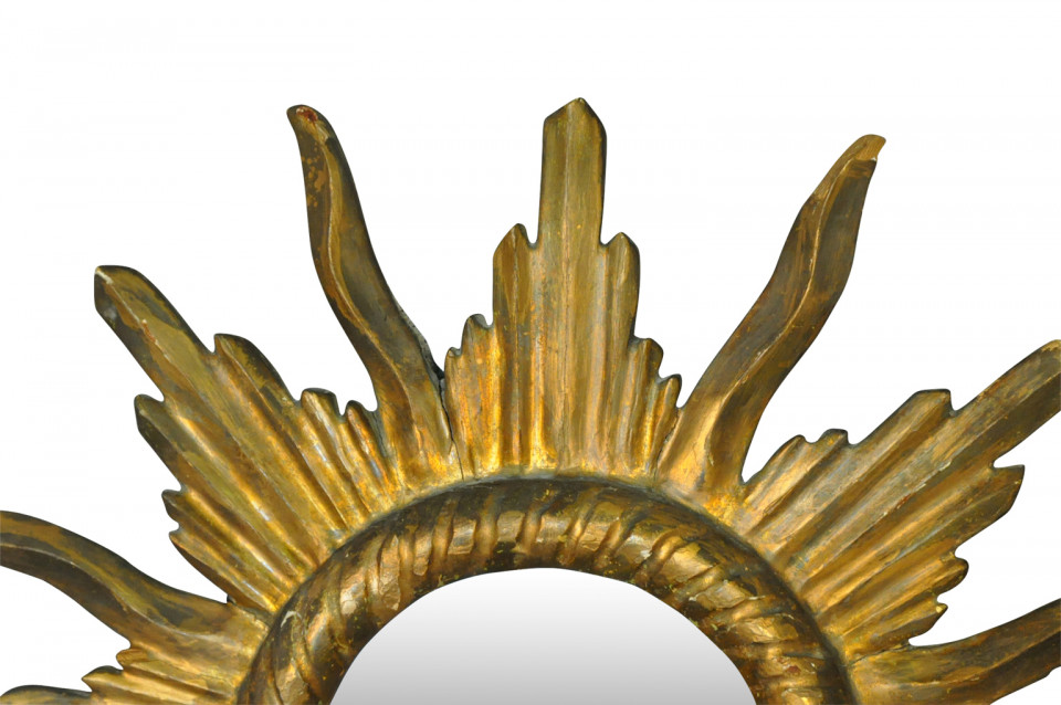 A very beautiful turn of the 20th century Sunburst mirror from the Catalan region of Spain. Beautifully hand carved from giltwood. High gold content and super patina. ARRIVING MARCH 2019!!!