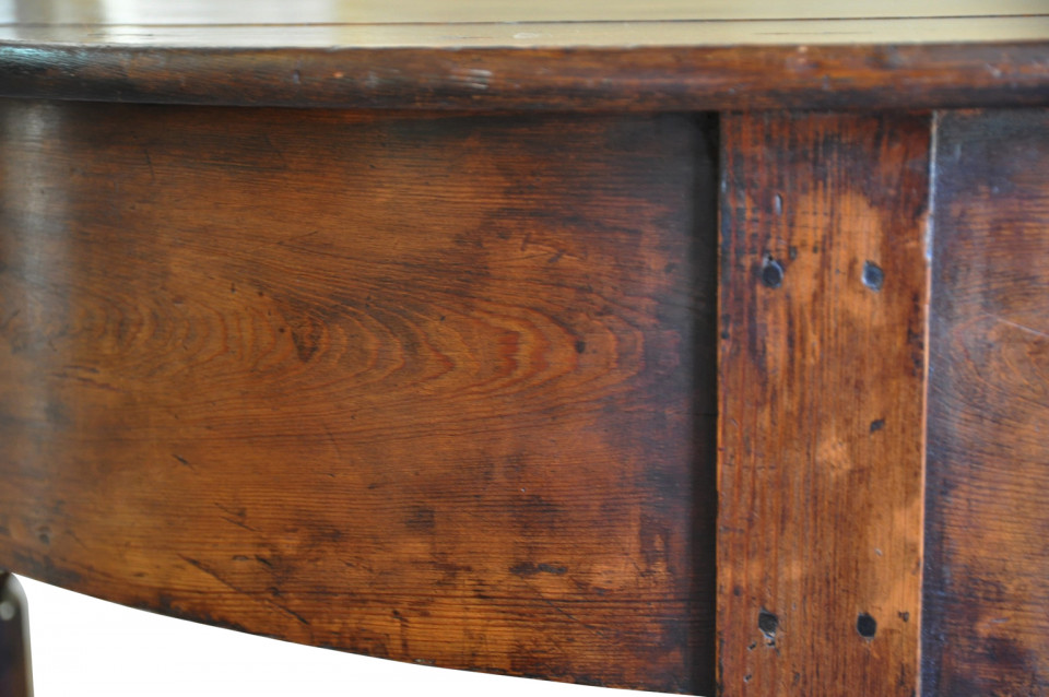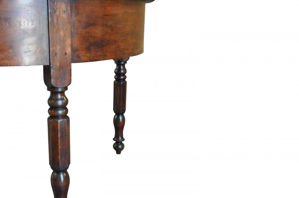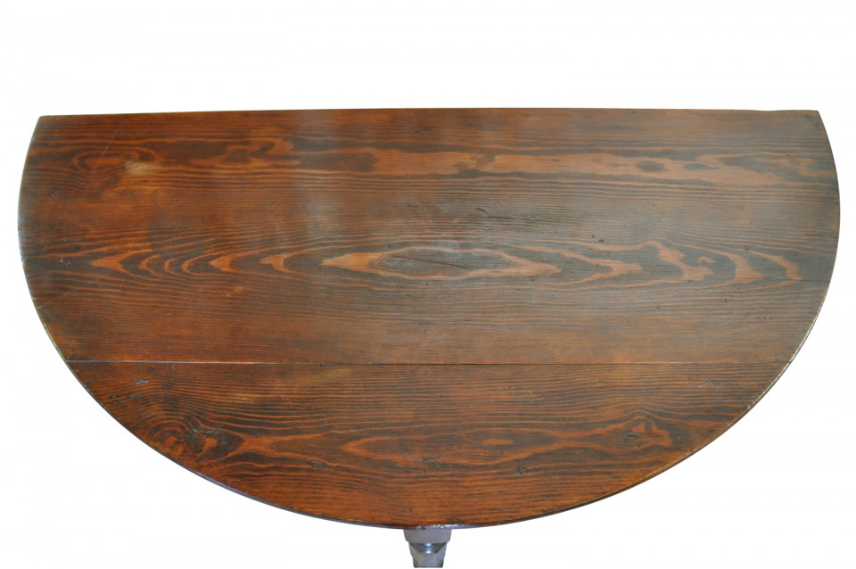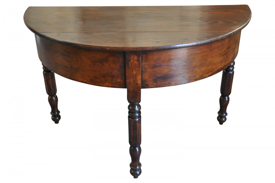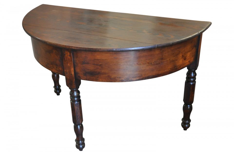 A very handsome early 19th century Demi Lune console table from the Catalan region of Spain. Beautifully constructed in richly stained pine with a deep apron and nicely turned legs.