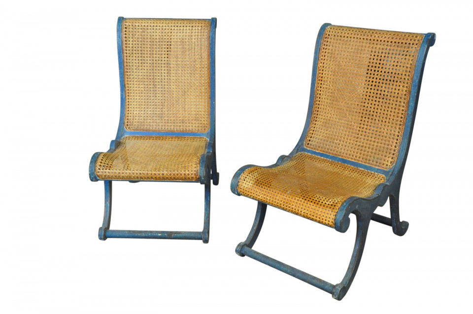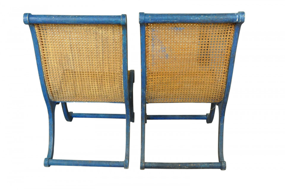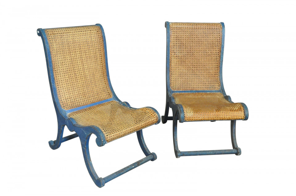 A very charming pair of later 19th century chairs in painted wood from the Catalan region of Spain. These delightful chairs have double caned seats and backs. Wonderful and very comfortable accent chair.