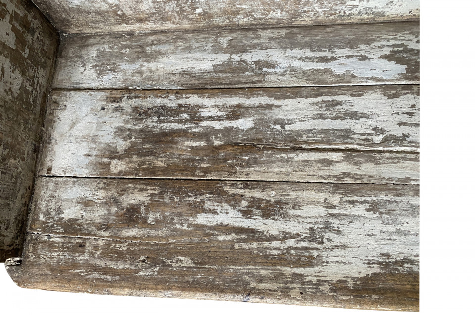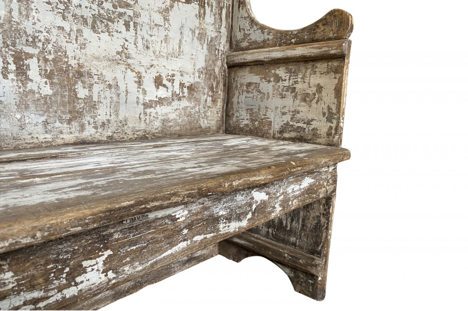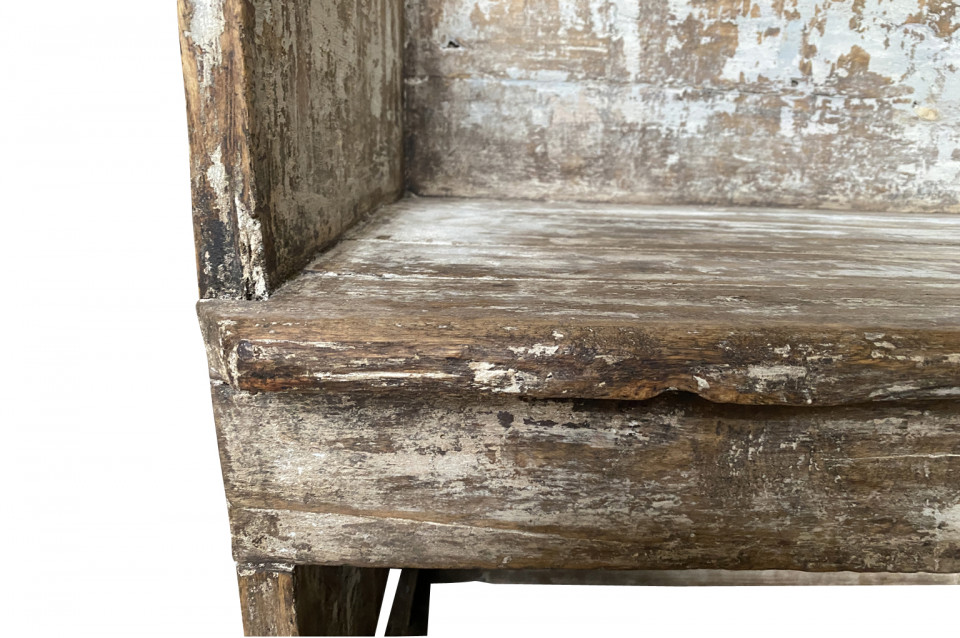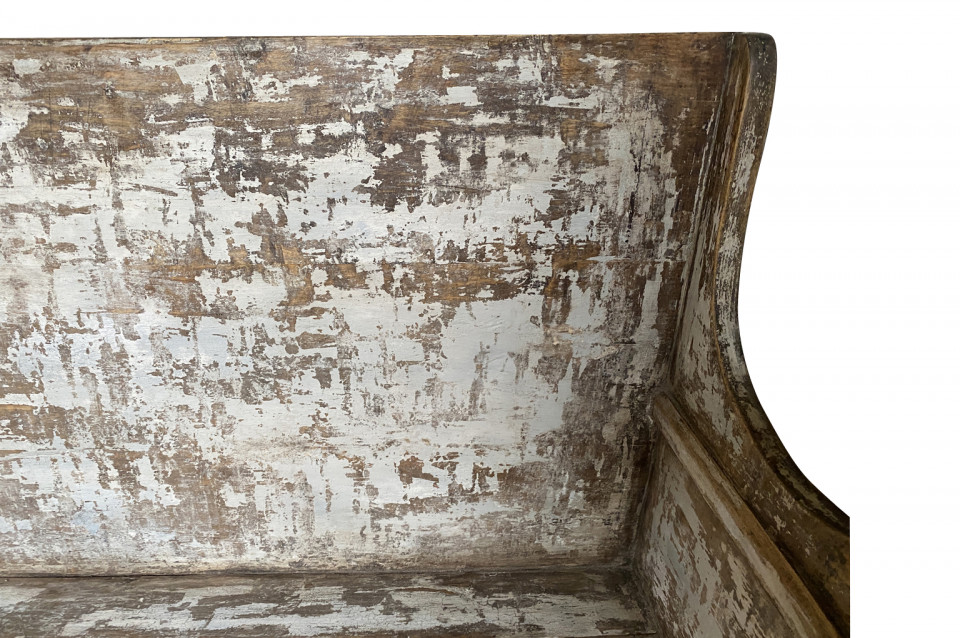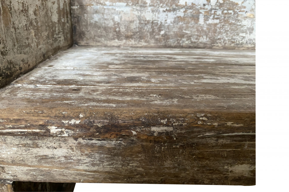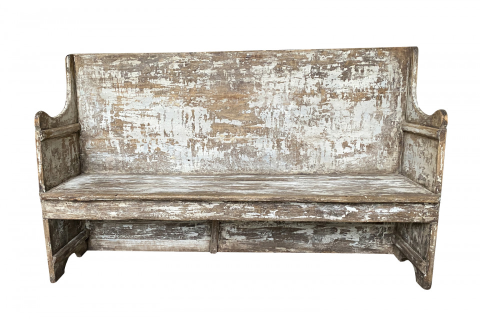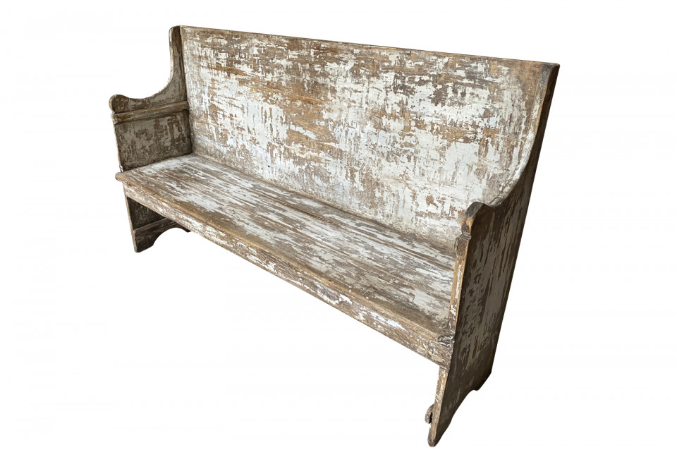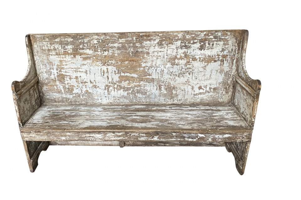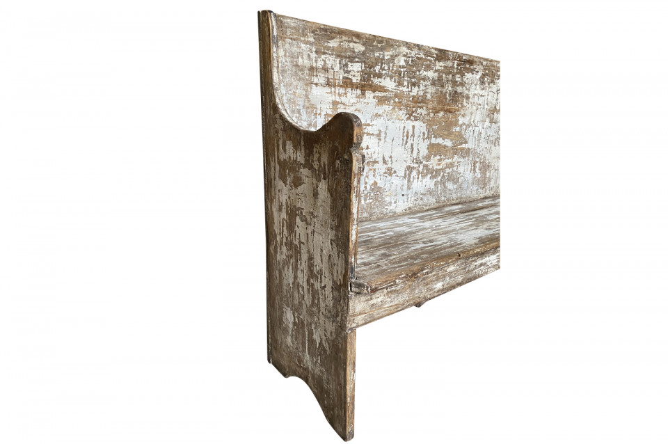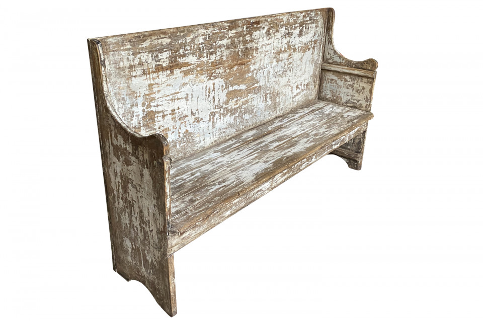A rustic mid-19th century Banquette - Bench from the Catalan region of Spain. Soundly constructed from sturdy painted wood. Terrific patina and finish. Seat height is 18".
