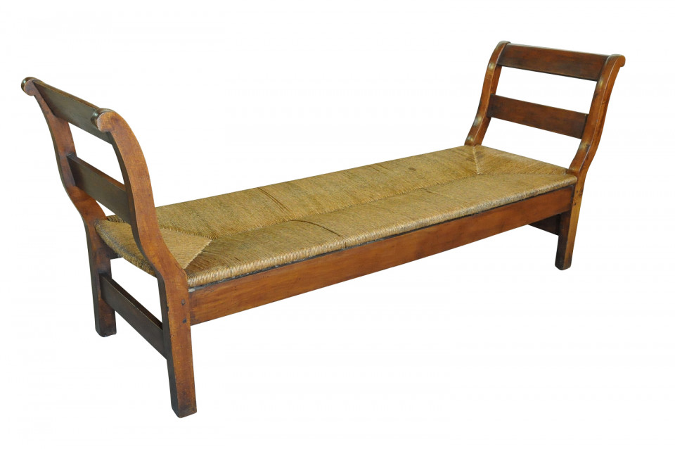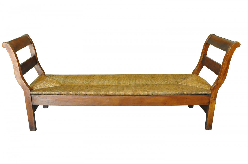 A delightful mid-19th century Lit De Repos - Banquette from the Provence region of France. Sturdily constructed from walnut with wonderful rush seating. A wonderful accent piece for any casually elegant surrounding.