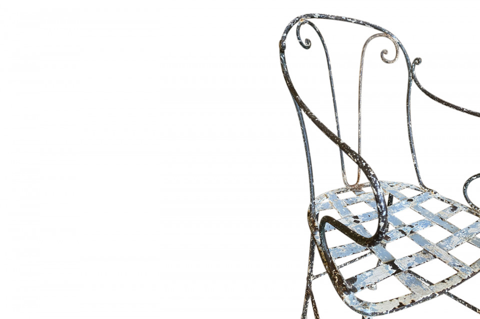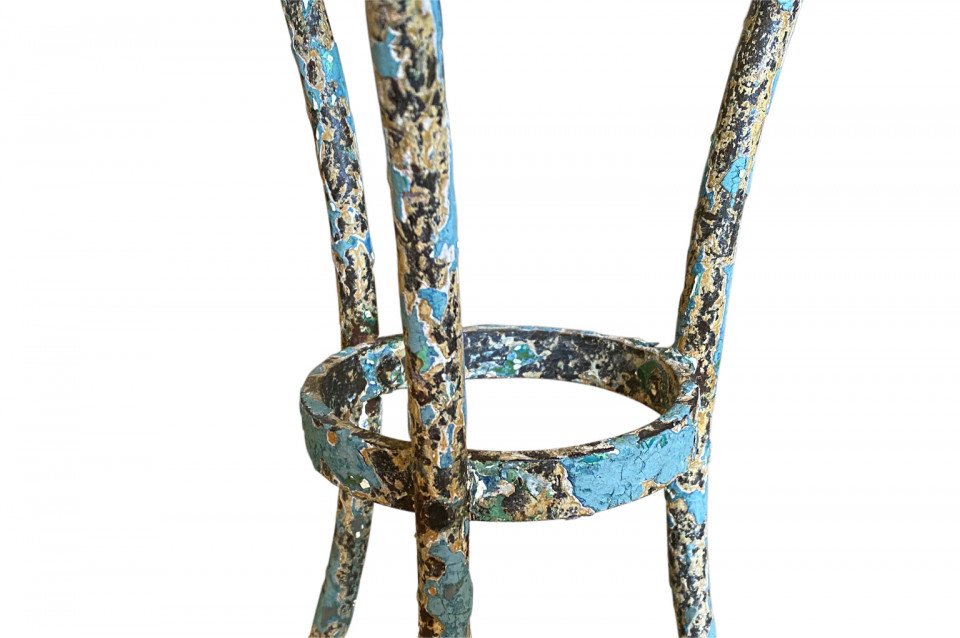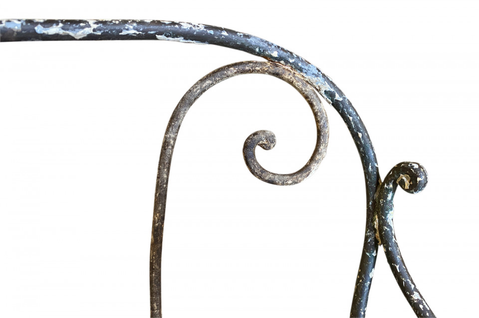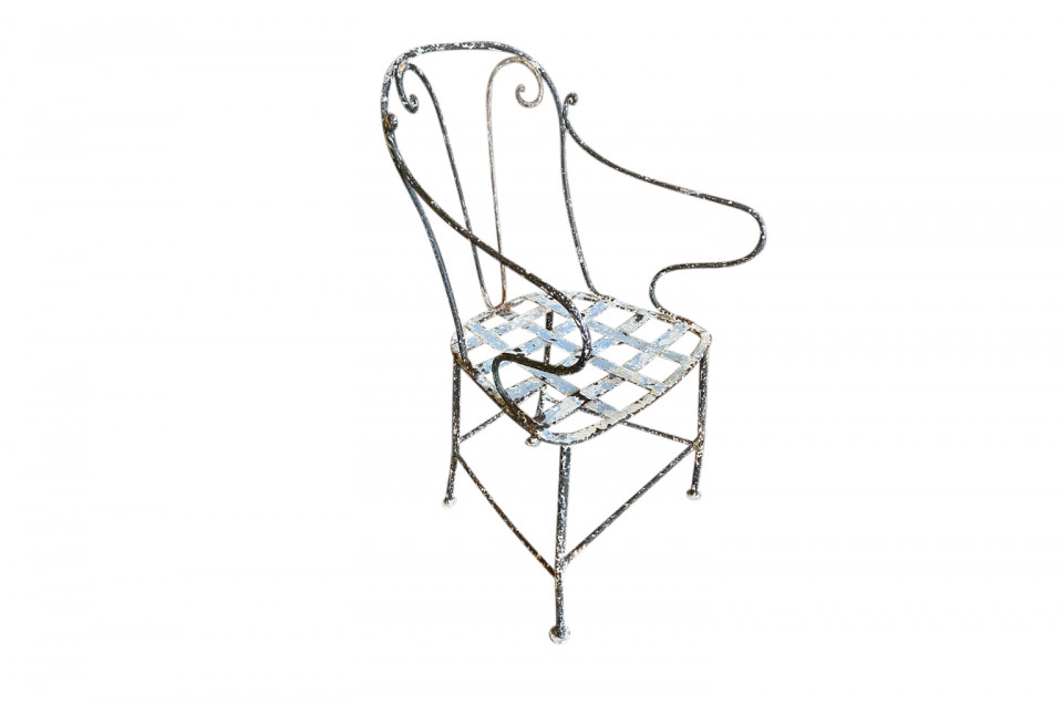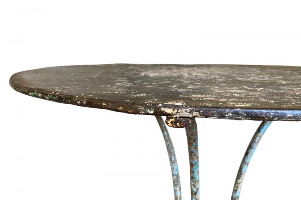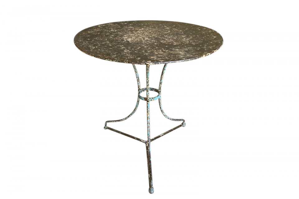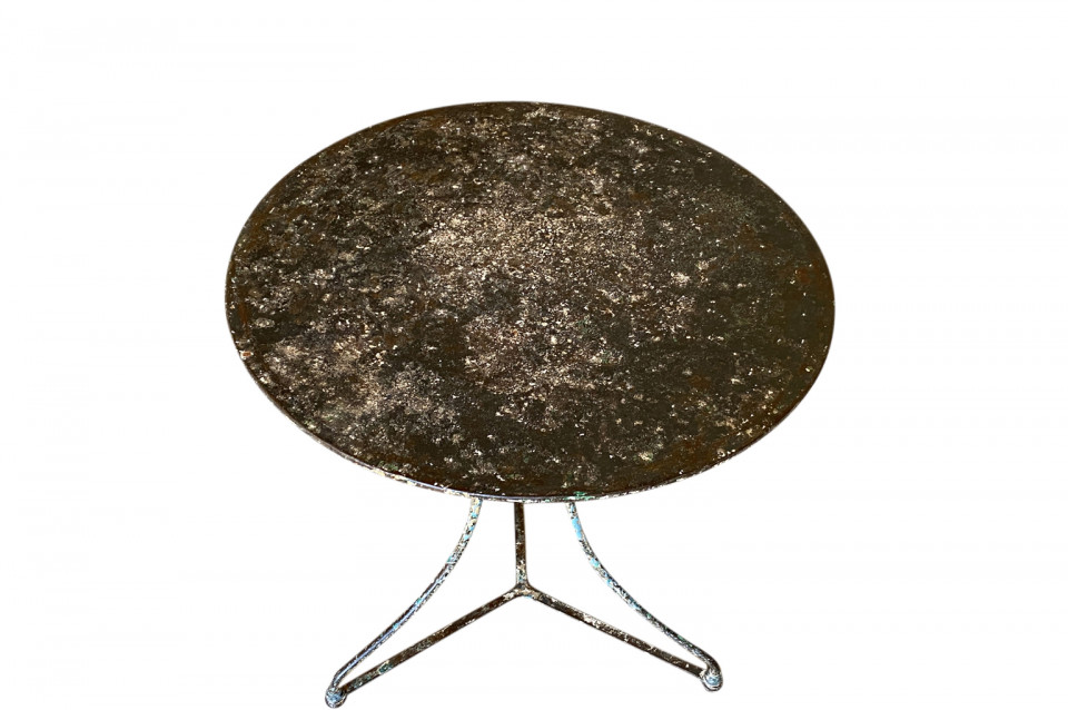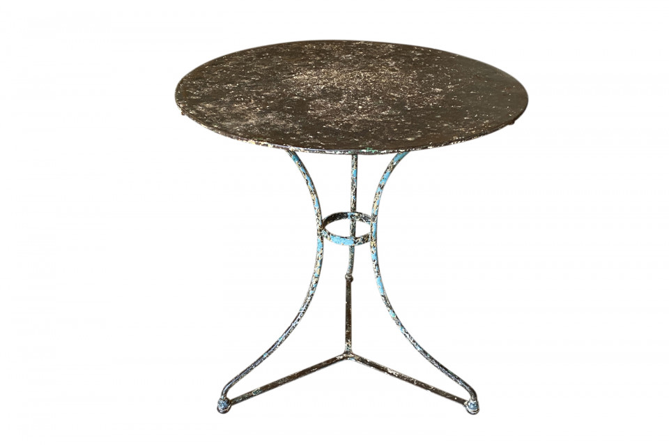 A very charming set of 19th century Garden Table & Armchairs from the Provence region of France. Wonderfully made from painted iron. Super patina. Perfect for a casual interior or garden. The table measures 27 1/2" H X 25 1/4" diameter. The armchairs measure 34 1/8" H ( Seat 16 1/4") X 19 1/2" W X 17 1/4" D