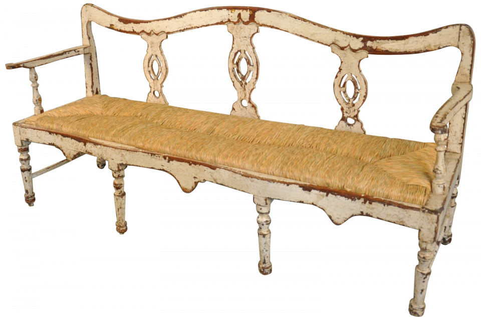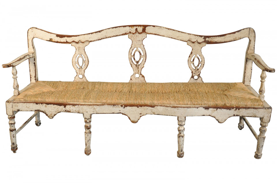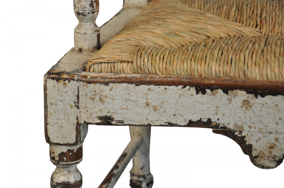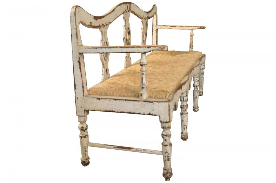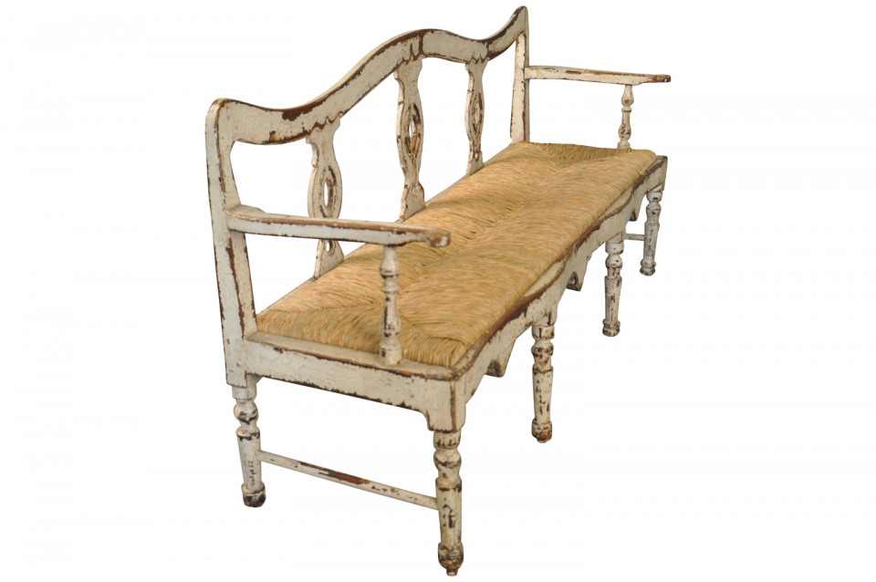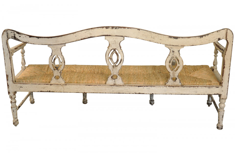 A charming 19th century Banquette - Bench from the Catalan region of Spain. Beautifully constructed in painted wood with rush seat.