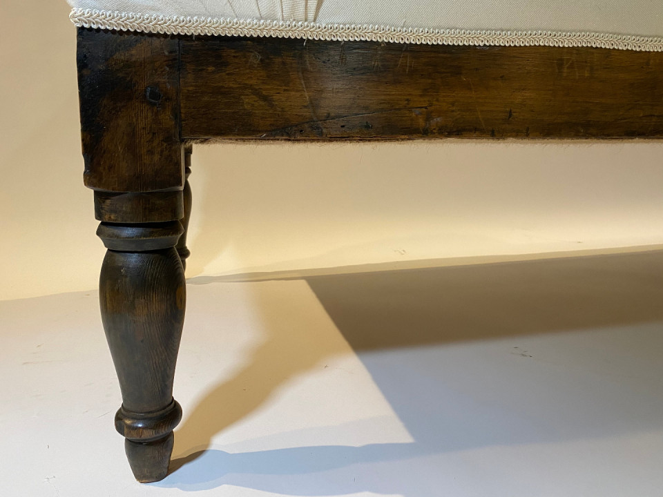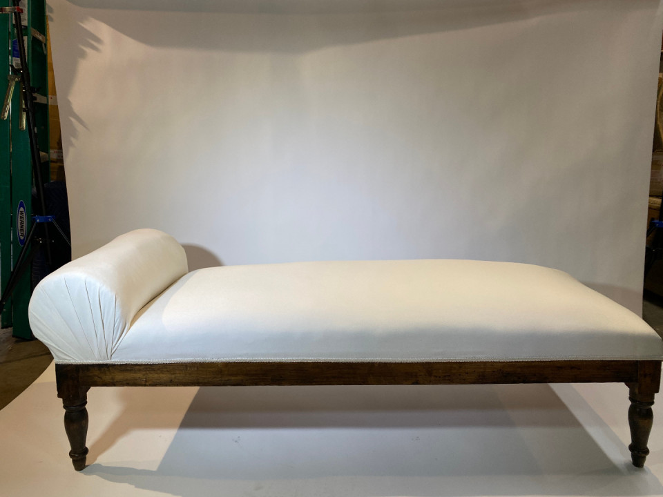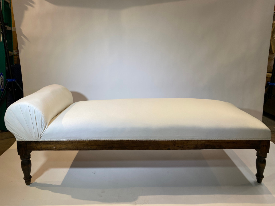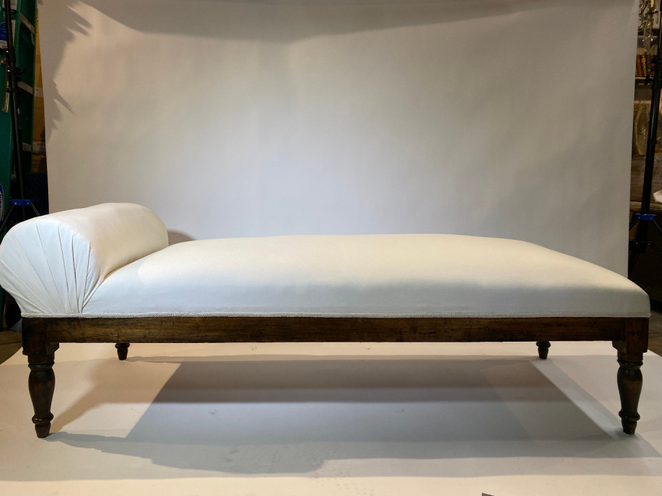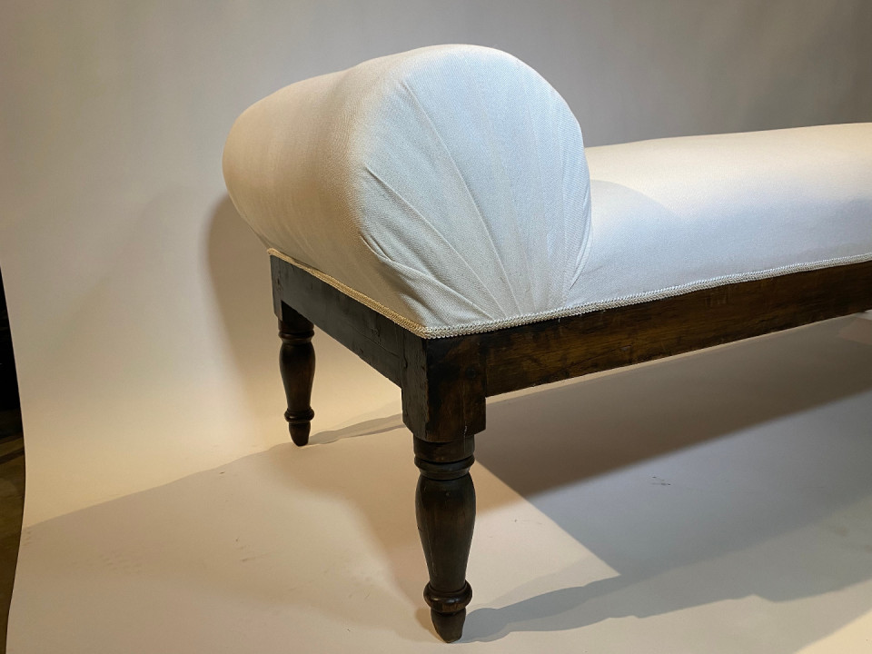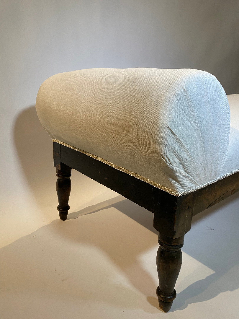 A very charming later 19th century Napoleon III Daybed from the Provence region of France. Soundly constructed from painted pine and recently reupholstered. A wonderful accent piece for any living or bedroom setting.