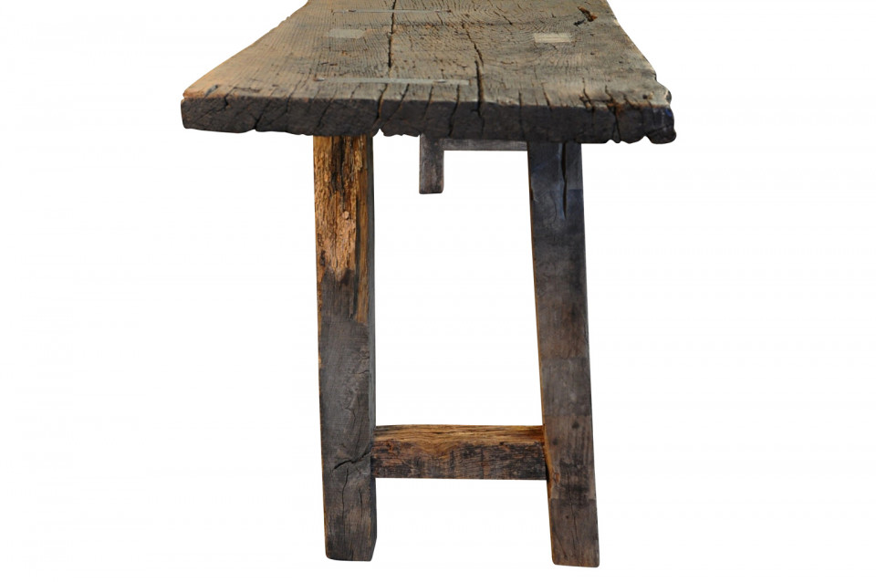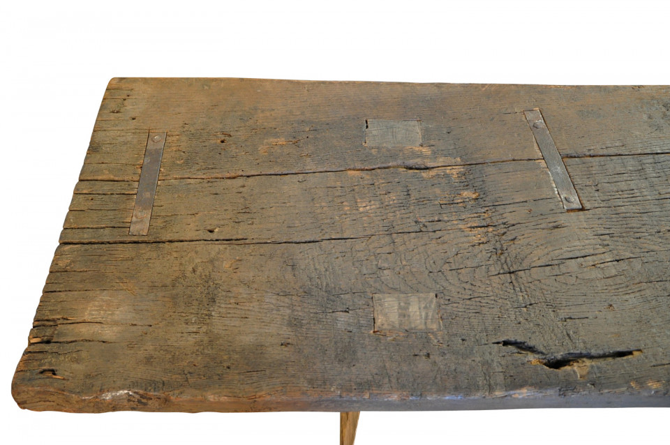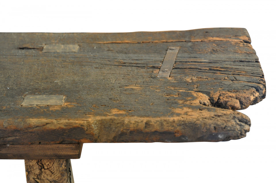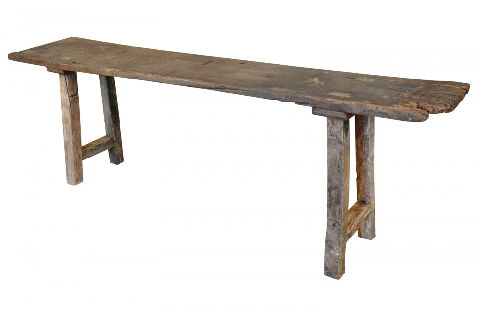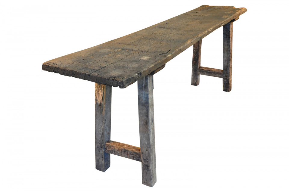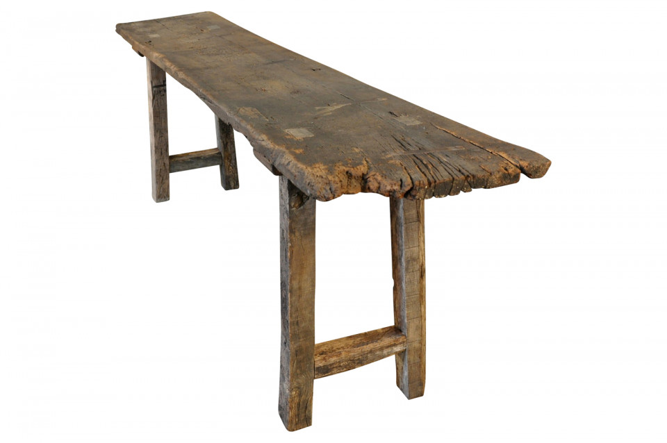 A very handsome and very primitive late 17th - early 18th century console table from the Catalan region of Spain. Soundly constructed from beautifully patina'd oak.