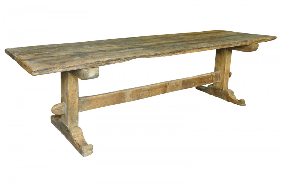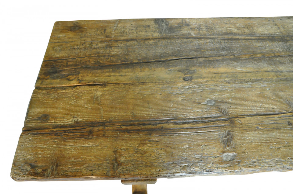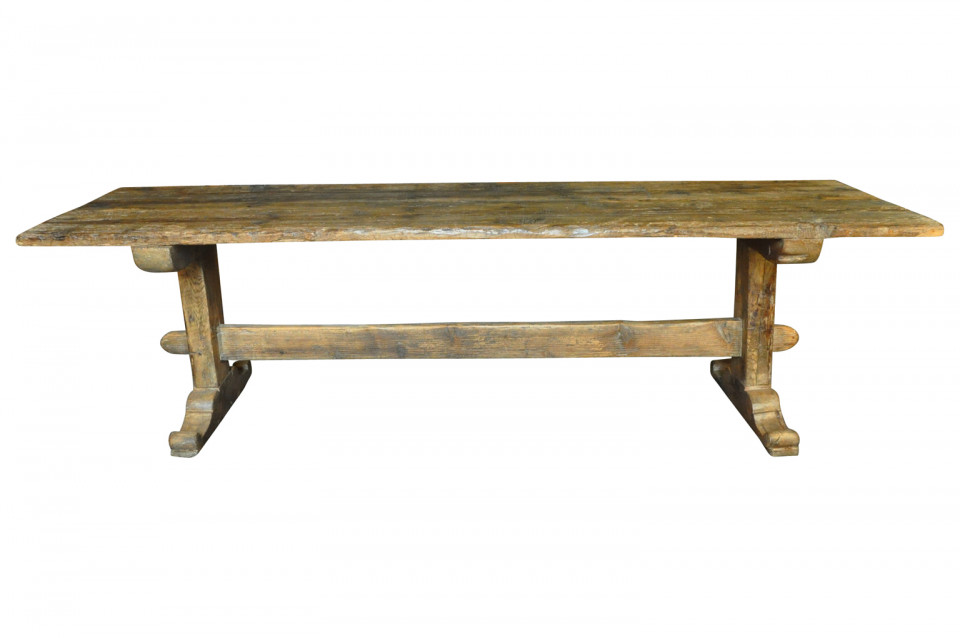 A very beautiful mid-18th century primitive farm table - trestle table from the Southwest of France. Soundly constructed from dense pine wood with a terrific patina. Perfect for large family gatherings.