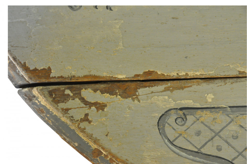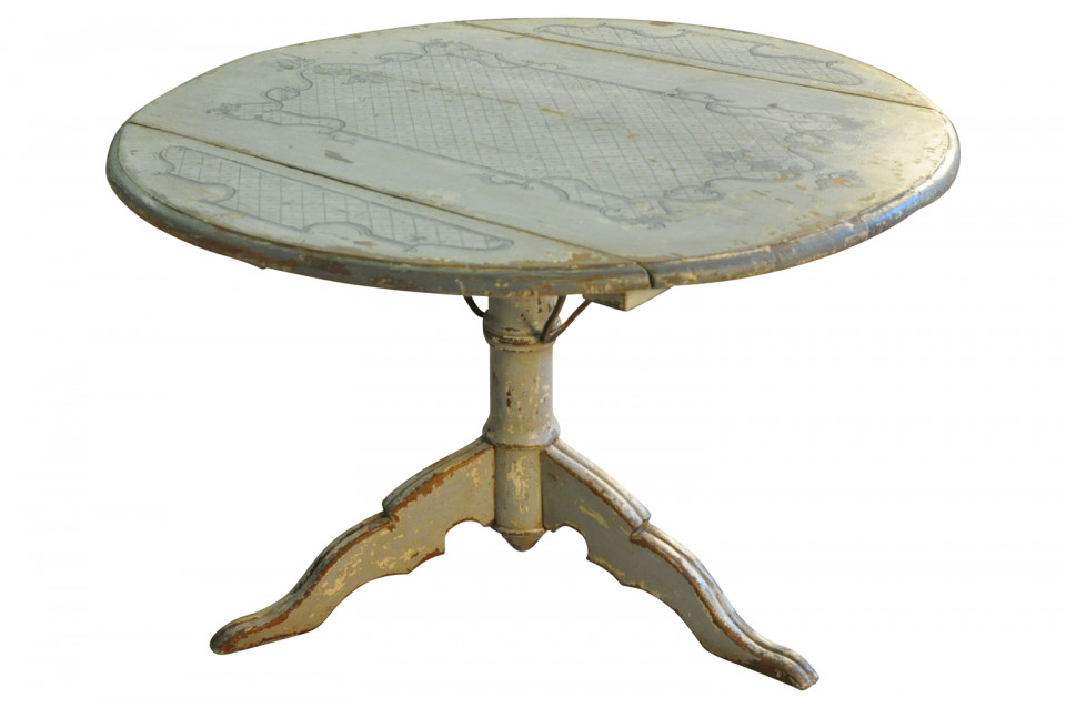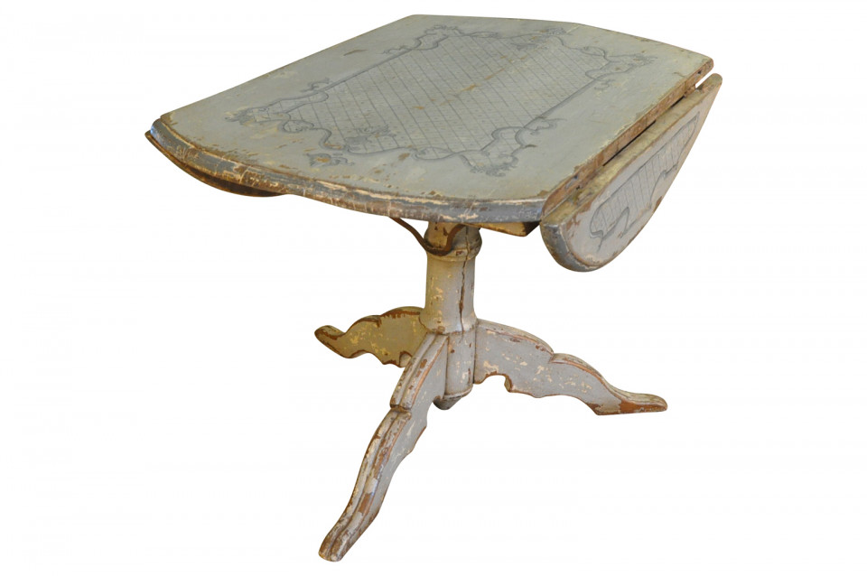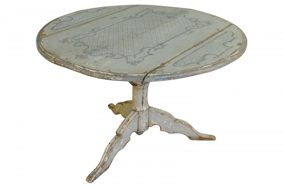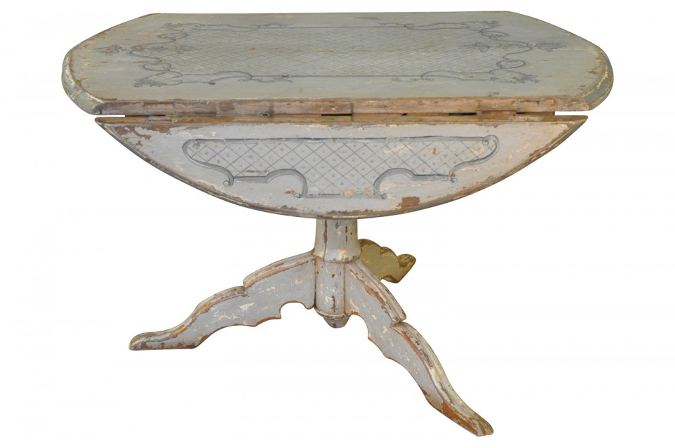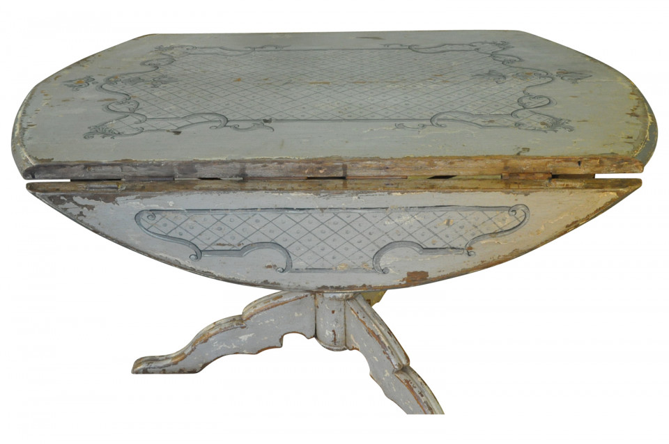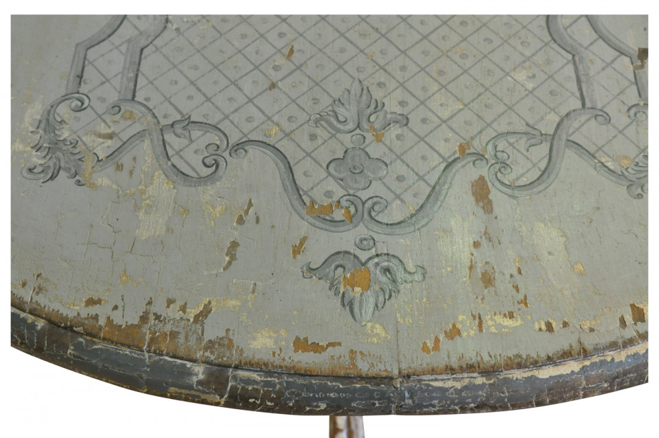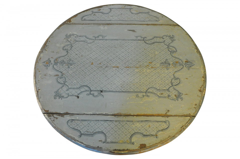 A very charming mid-19th century French drop leaf gueridon. Beautifully constructed from painted wood with a wonderful motif. A terrific accent piece to add charm to its surrounding. ARRIVING MARCH 2019!!!