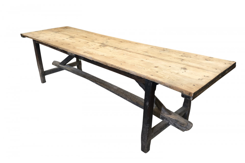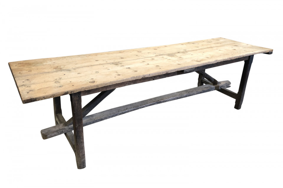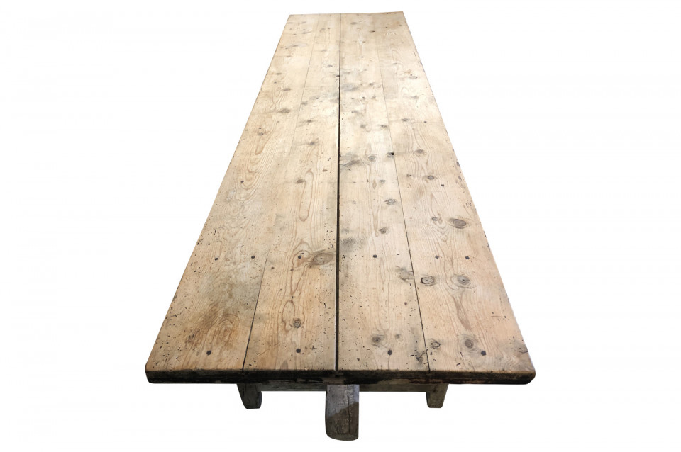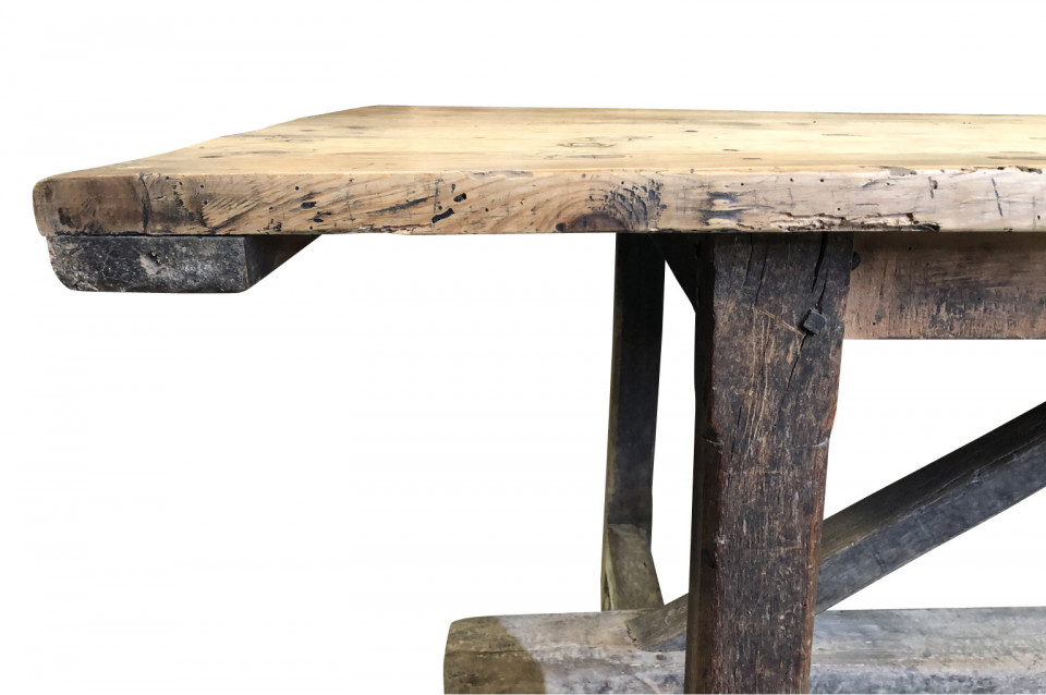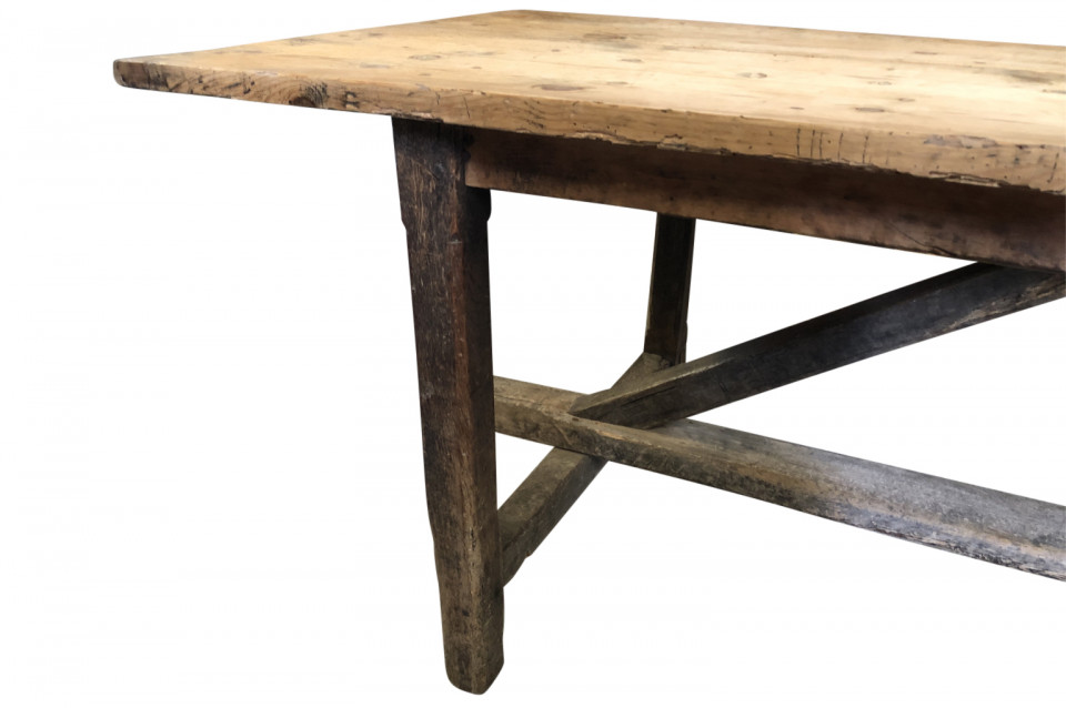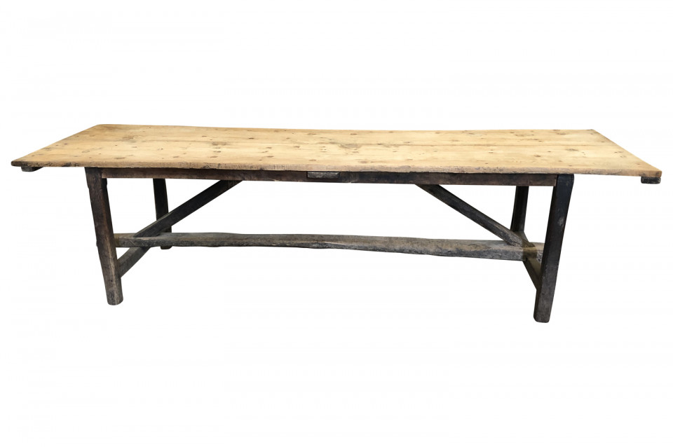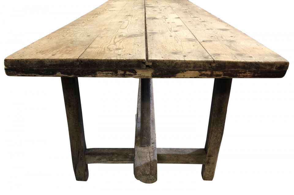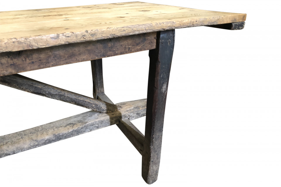 A wonderful French 18th century primitive farm table from a vineyard in the Provence region of France. Beautifully constructed from naturally washed oak and pine. Fantastic patina.