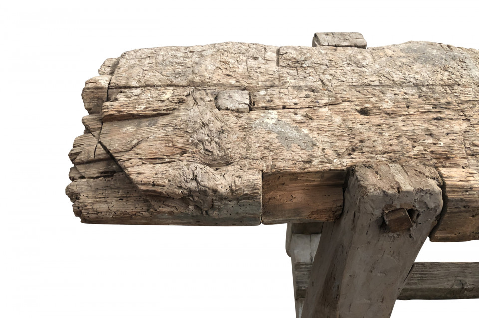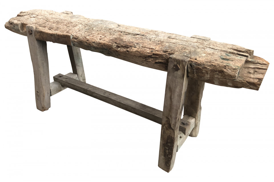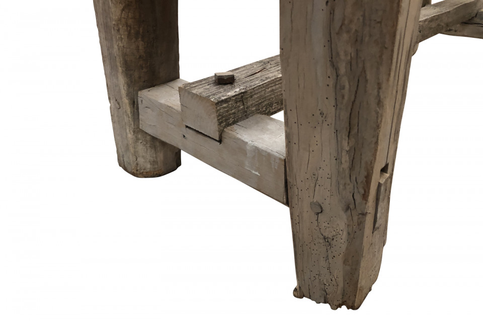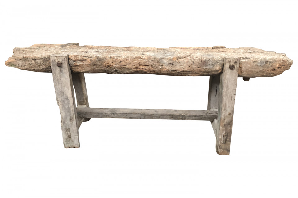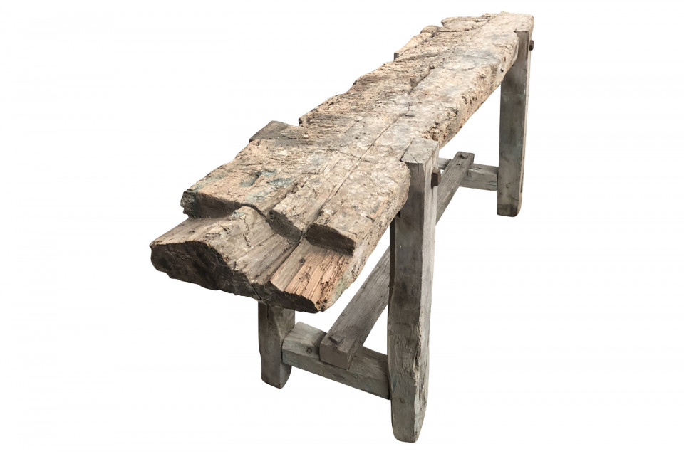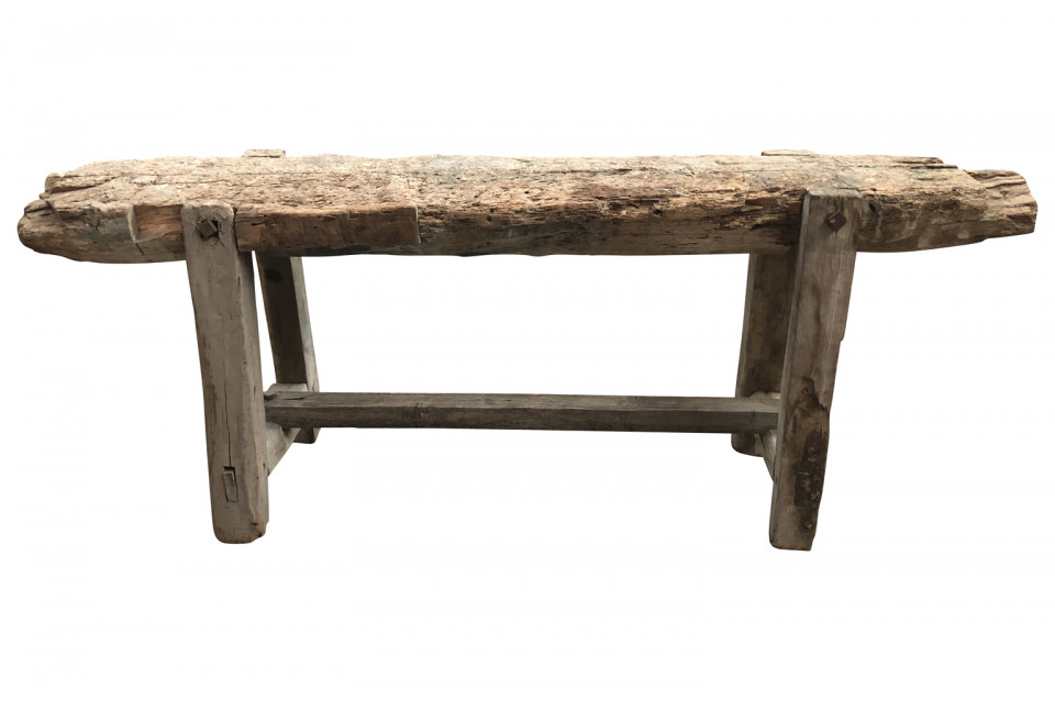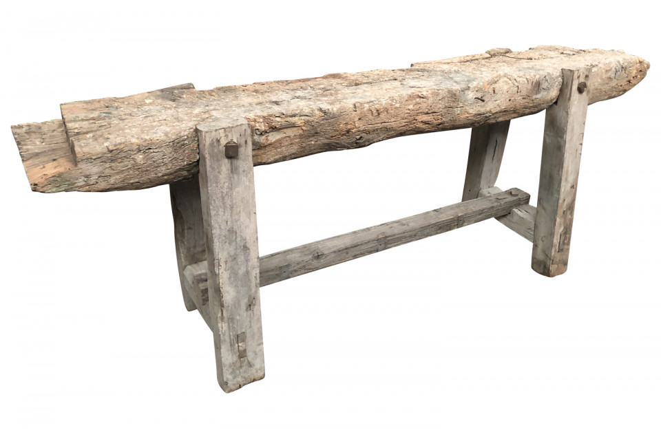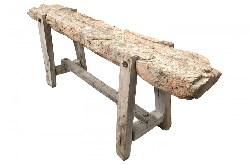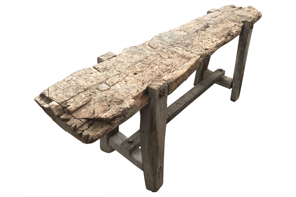 A very charming and primitive French 18th century Etabli - Work Bench in naturally washed wood. Perfect as a narrow console or sofa table.