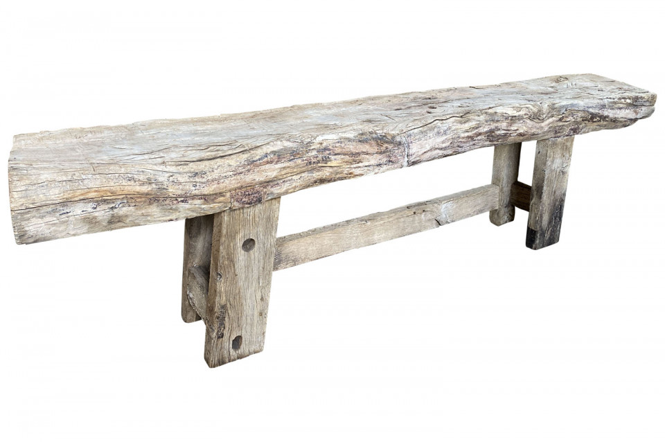 A fabulous 18th century grand scale Etabli - Work Table Console from the Provence region of France. Soundly constructed from naturally washed oak with an incredibly thick top board. A perfect console for any modern or rustic environment. Arriving September 2021.