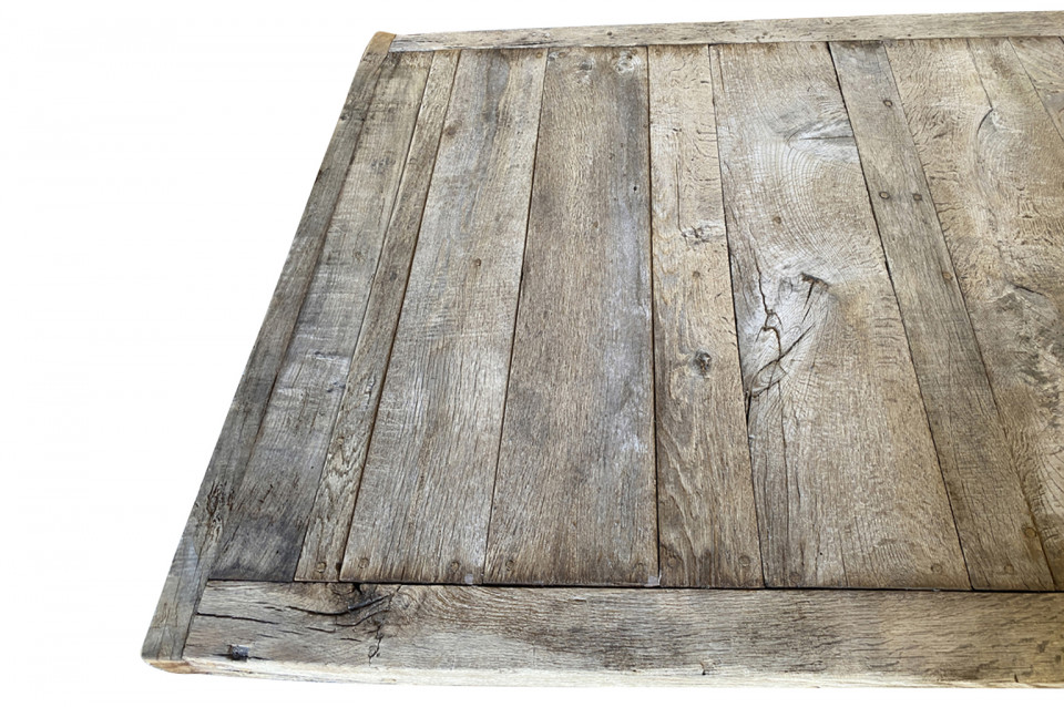 A terrific rustic - Arte Populaire - mid-18th century dining table from the Ardeche region of France. Beautifully constructed from very sound and sturdy oak. Terrific for a large gathering - indoors or out. Arriving September 2021.
