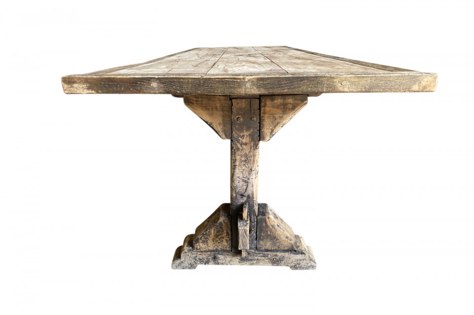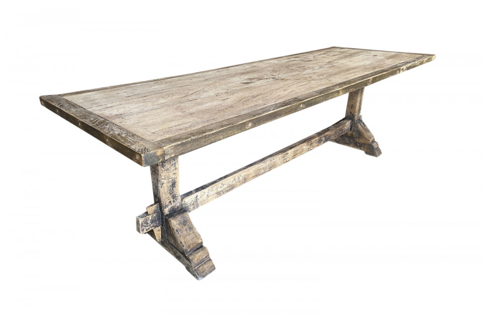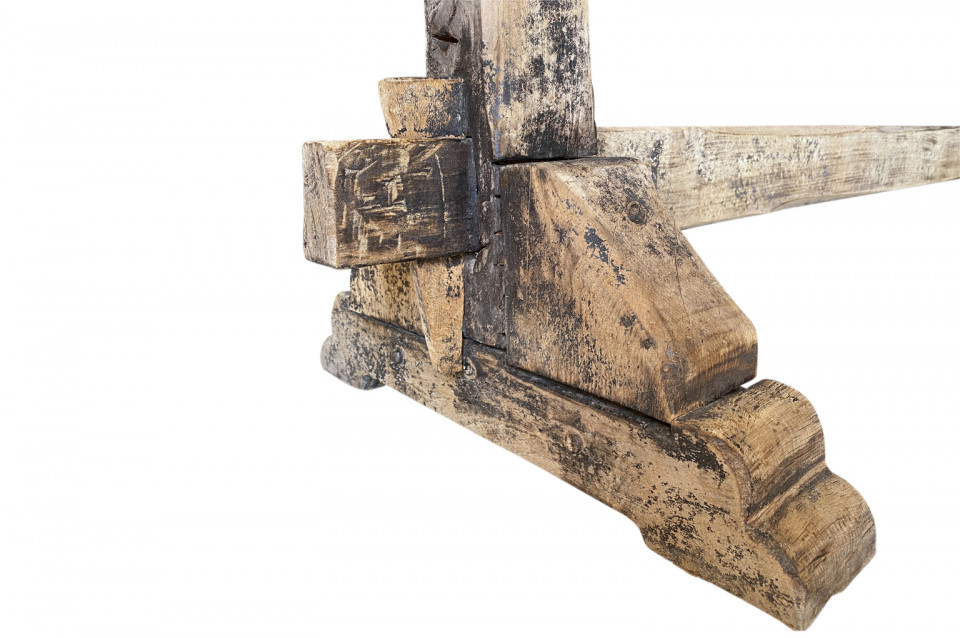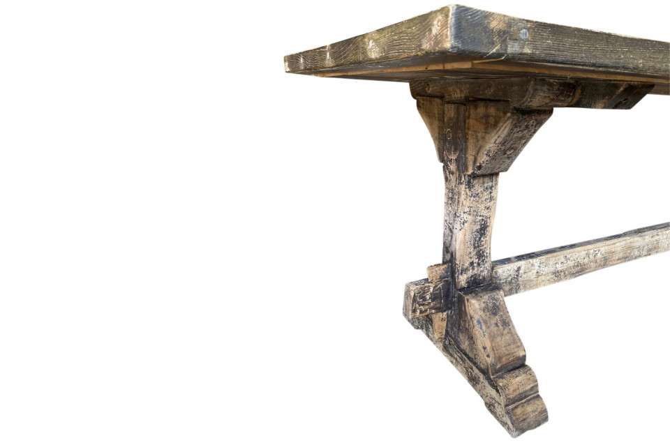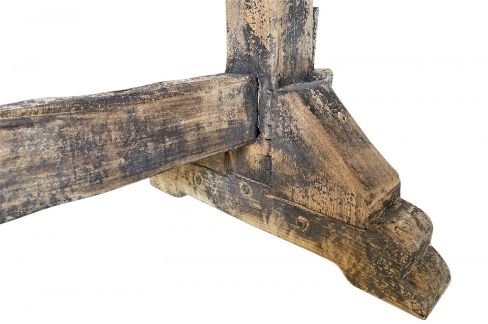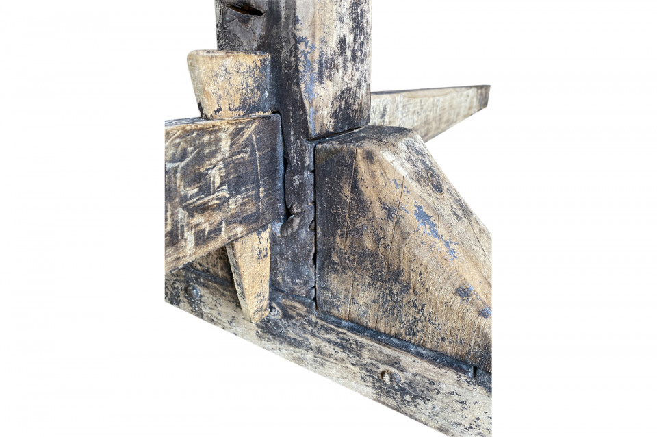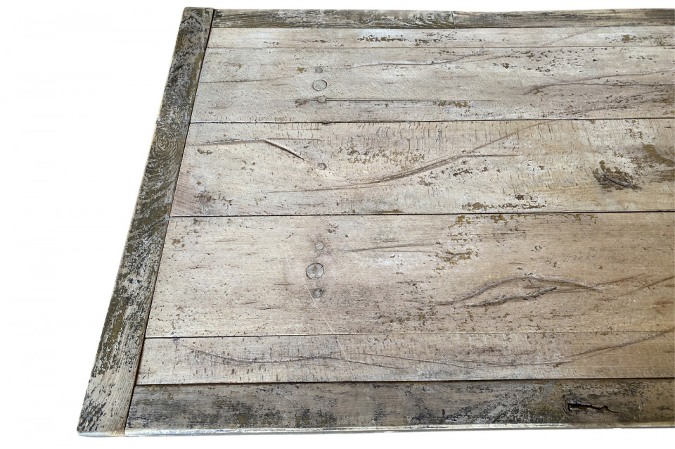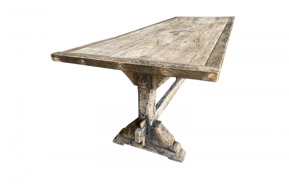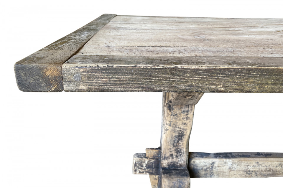 French 19th Century Primitive Farm Table - Trestle Table from the South of France. Soundly constructed from painted and washed beech. A charming table that will add warmth to its environment.