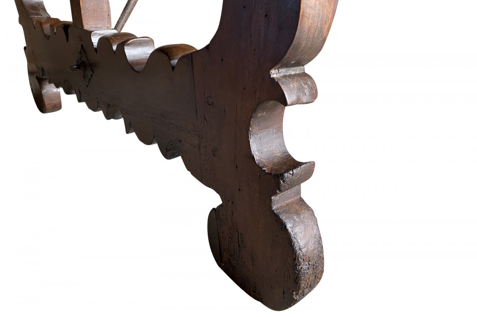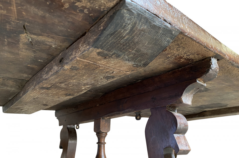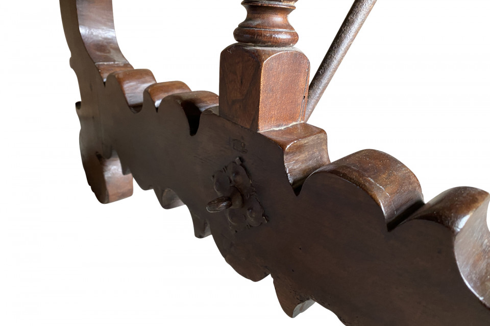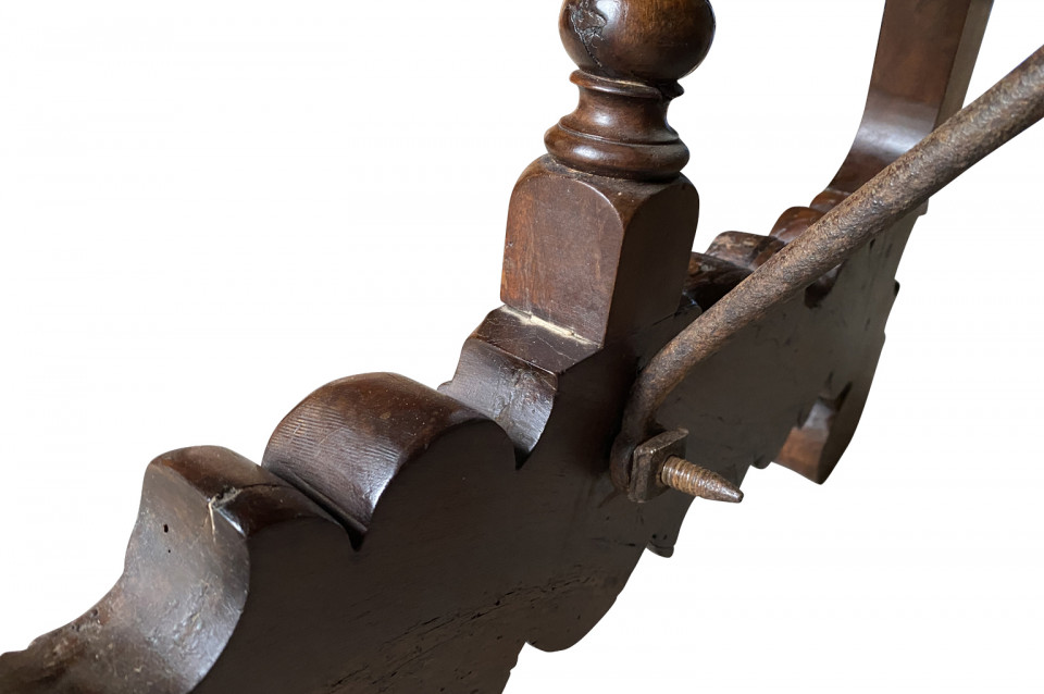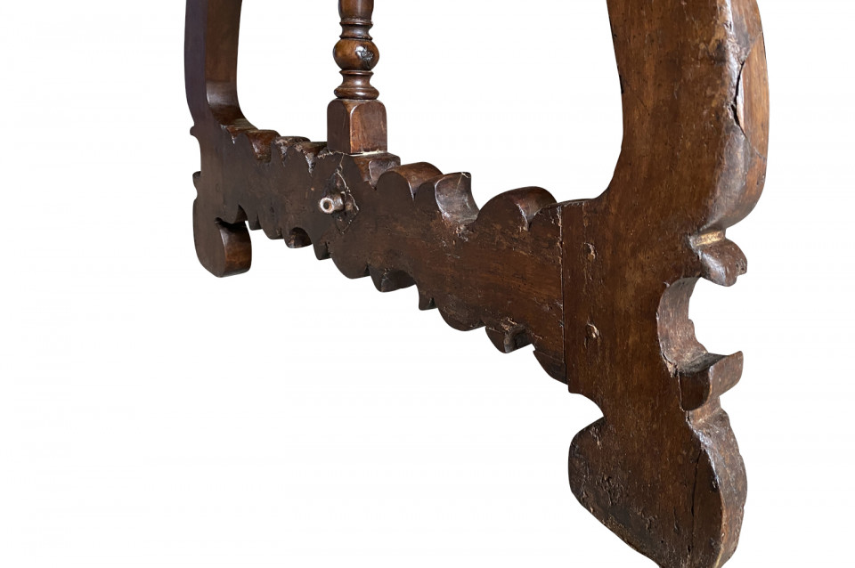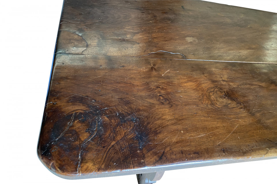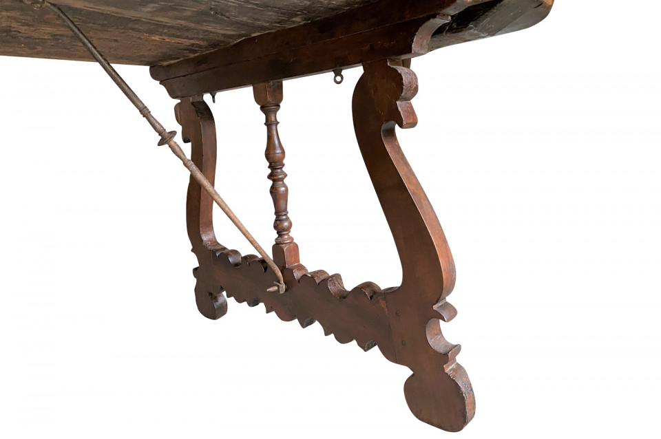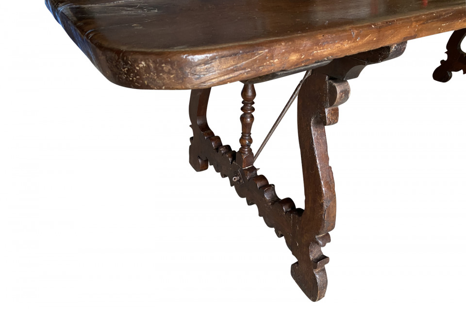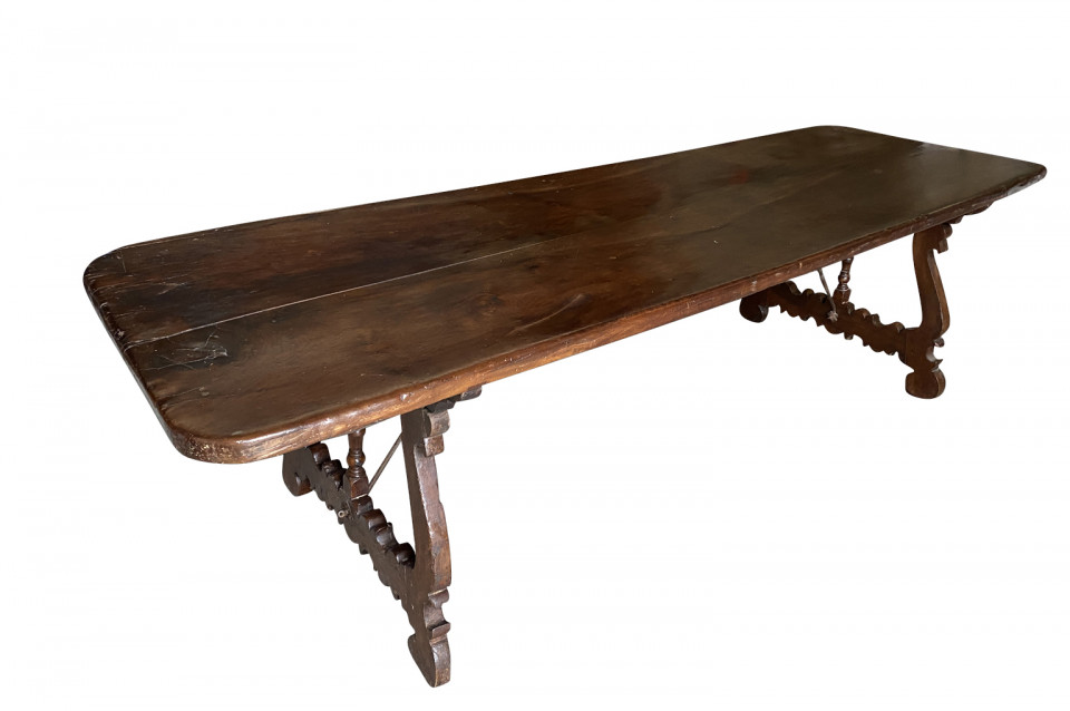 An outstanding 18th century Dining Table - Farm Table from the Lombardy region of Italy. Beautifully constructed from stunning walnut with lyre shaped legs and hand forged iron stretchers. Wonderful patina - very warm and luminous. A wonderful table for large family gatherings.