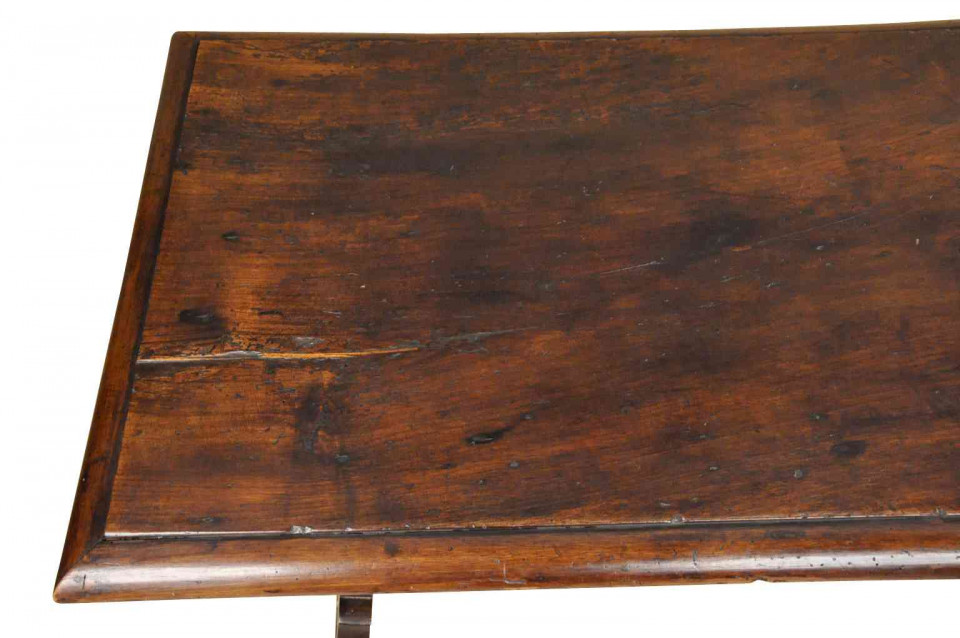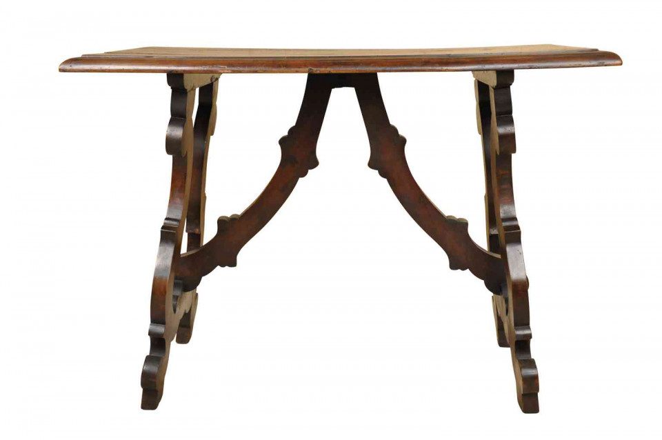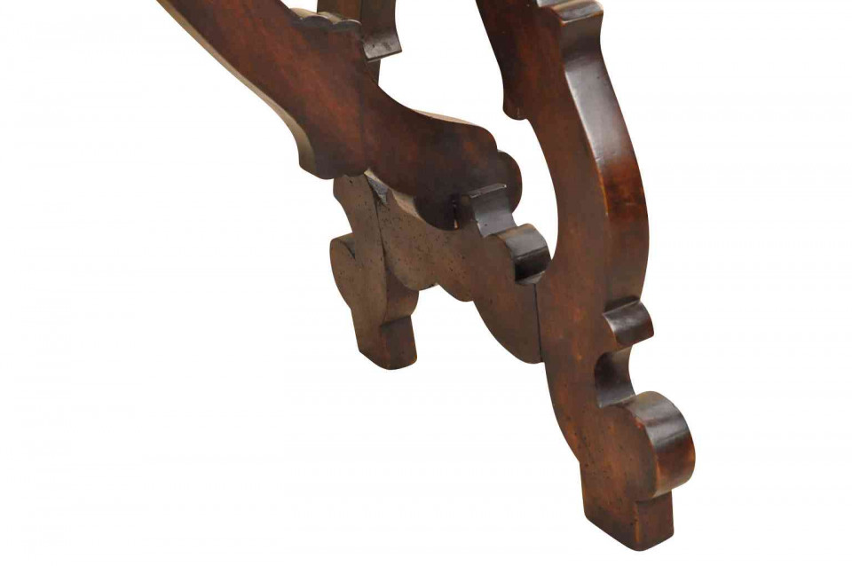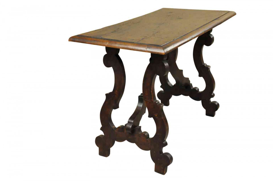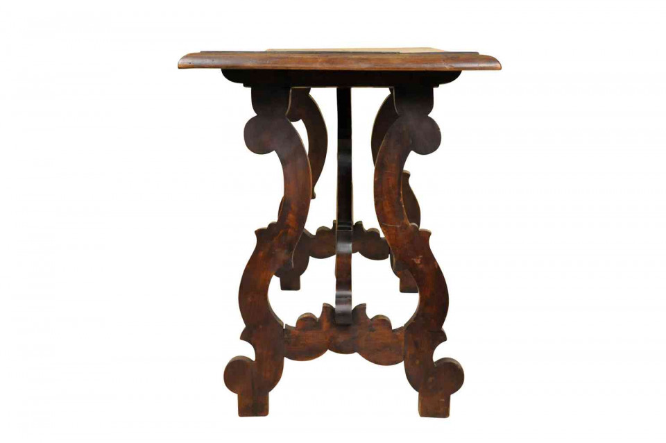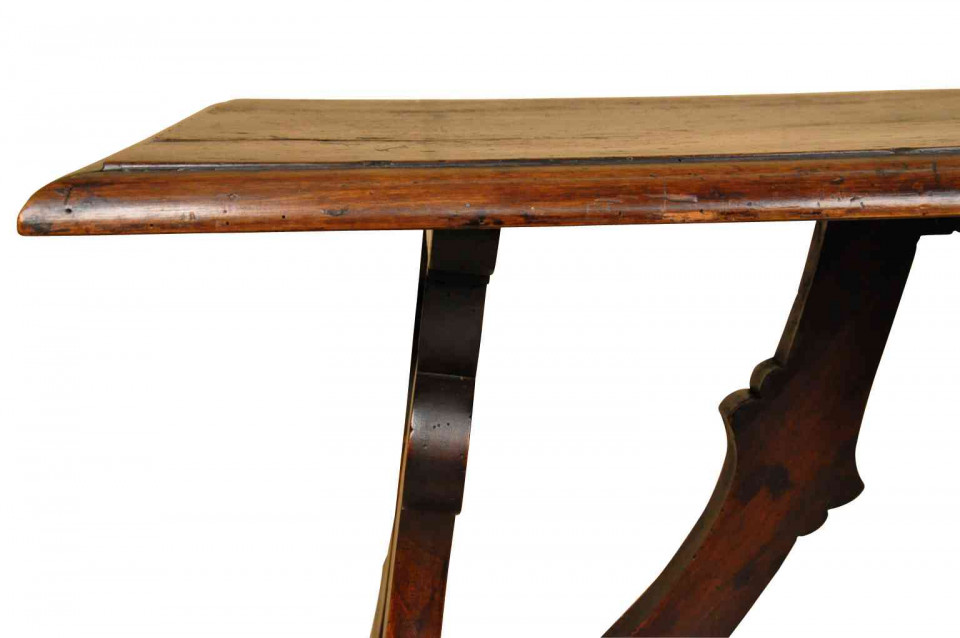 A very lovely mid-19th century console table from northern Italy. Beautifully constructed from walnut with a solid board top, classical lyre shaped legs and carved wooden stretchers.